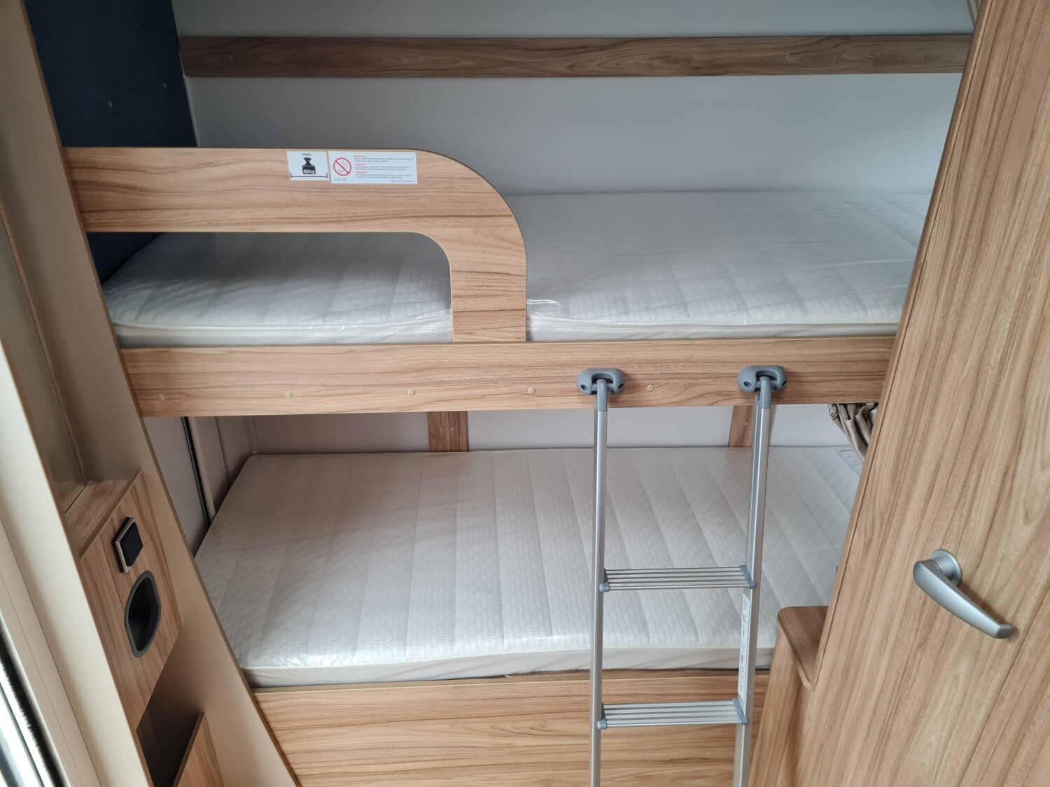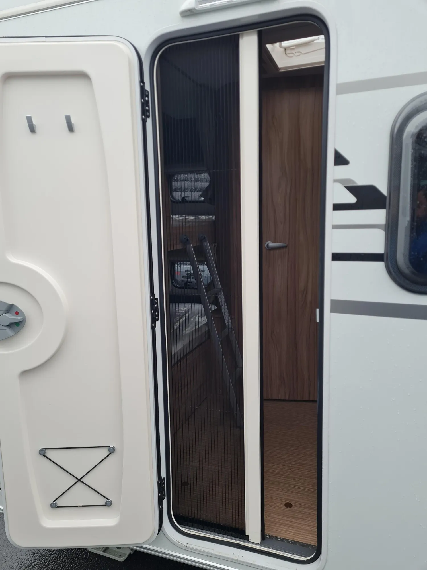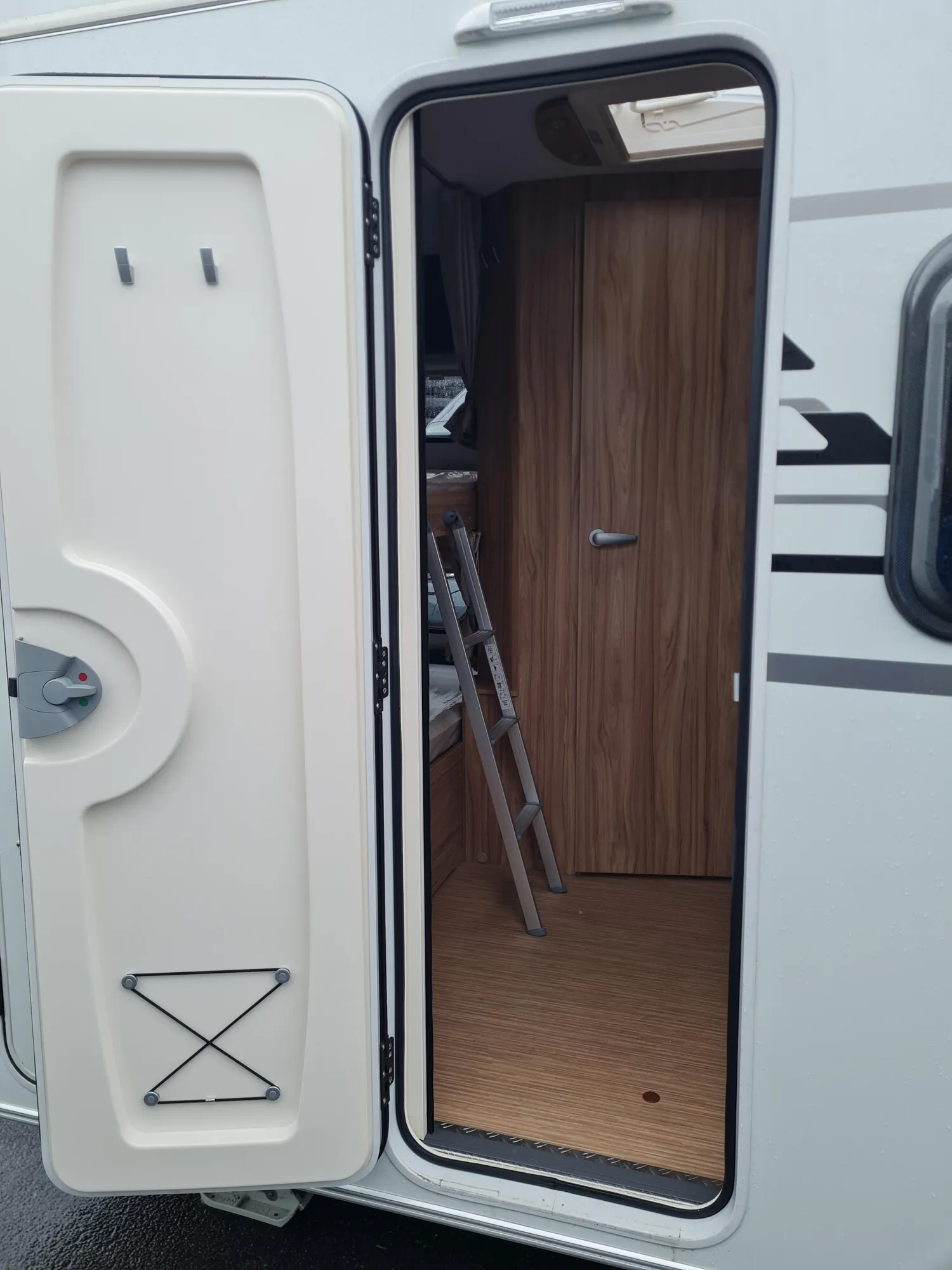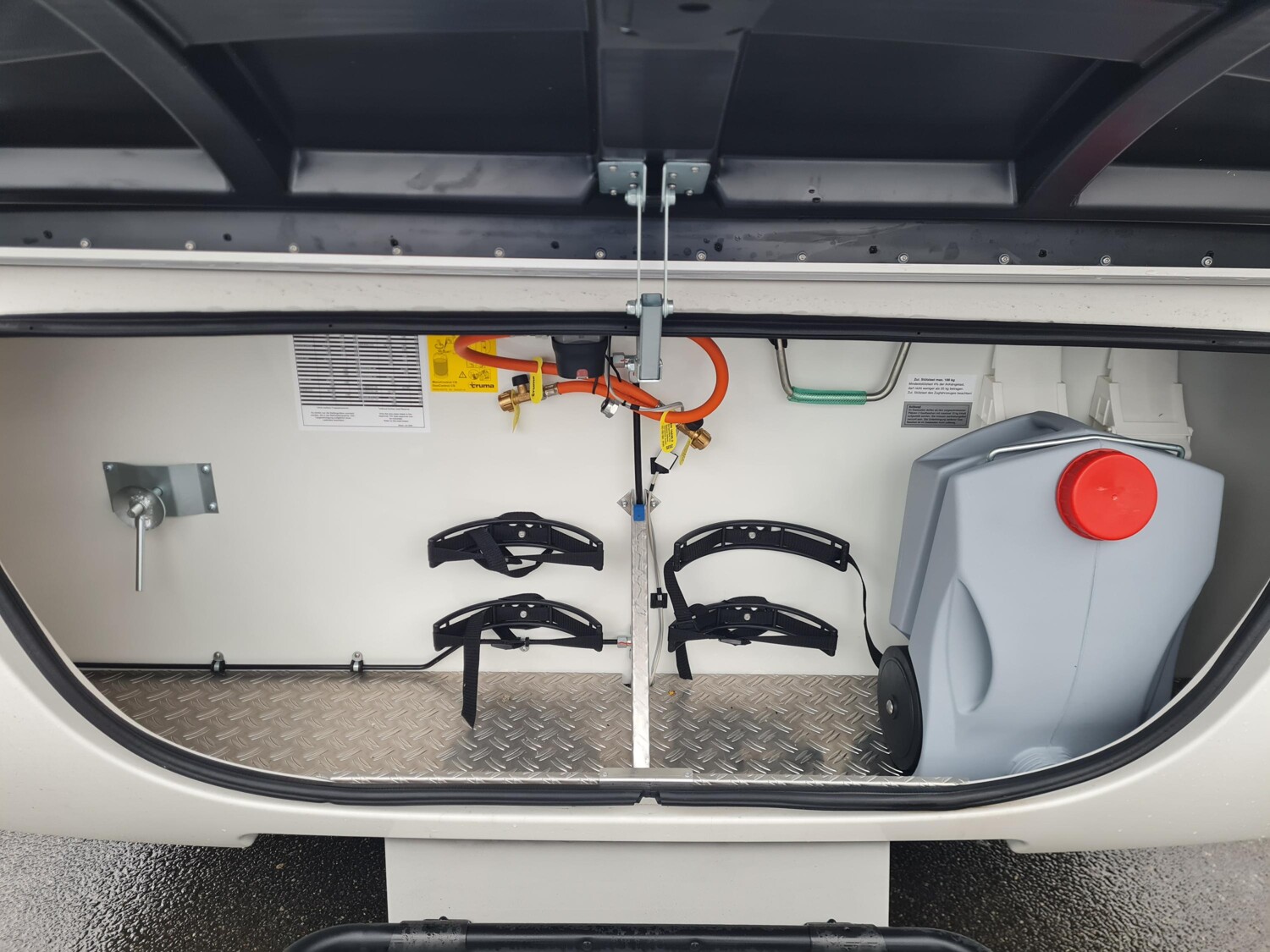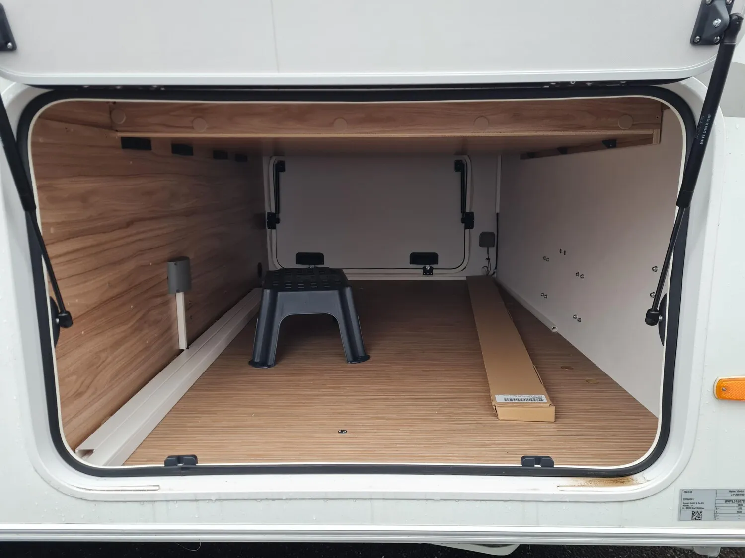 - Moving-Paket (Autarkpaket (95 Ah AGM-Aufbaubatterie, Ladegerät mit integriertem Booster), Fliegenschutz-Rolltür (gesamte Türhöhe), bedienfreundlich durch seitliche Führung, Deichsel-Fahrradträger Thule Caravan Superb Short für zwei Fahrräder, max. Traglast 60 kg (für E-Bikes geeignet), Abstützfuß (4 Stk.) für Caravanstützen: Verhindert Einsinken oder Wegrutschen der Stützen, Deichselstützrad mit integrierter Stützlastanzeige, 22 l Abwassertank, rollbar (Unterbringung im Gaskasten), Steckdosenpaket (2 x 230 V Zusatzsteckdosen in Wohnraum und Küche und 1x USB-Doppelsteckdose in Wohnraum))
