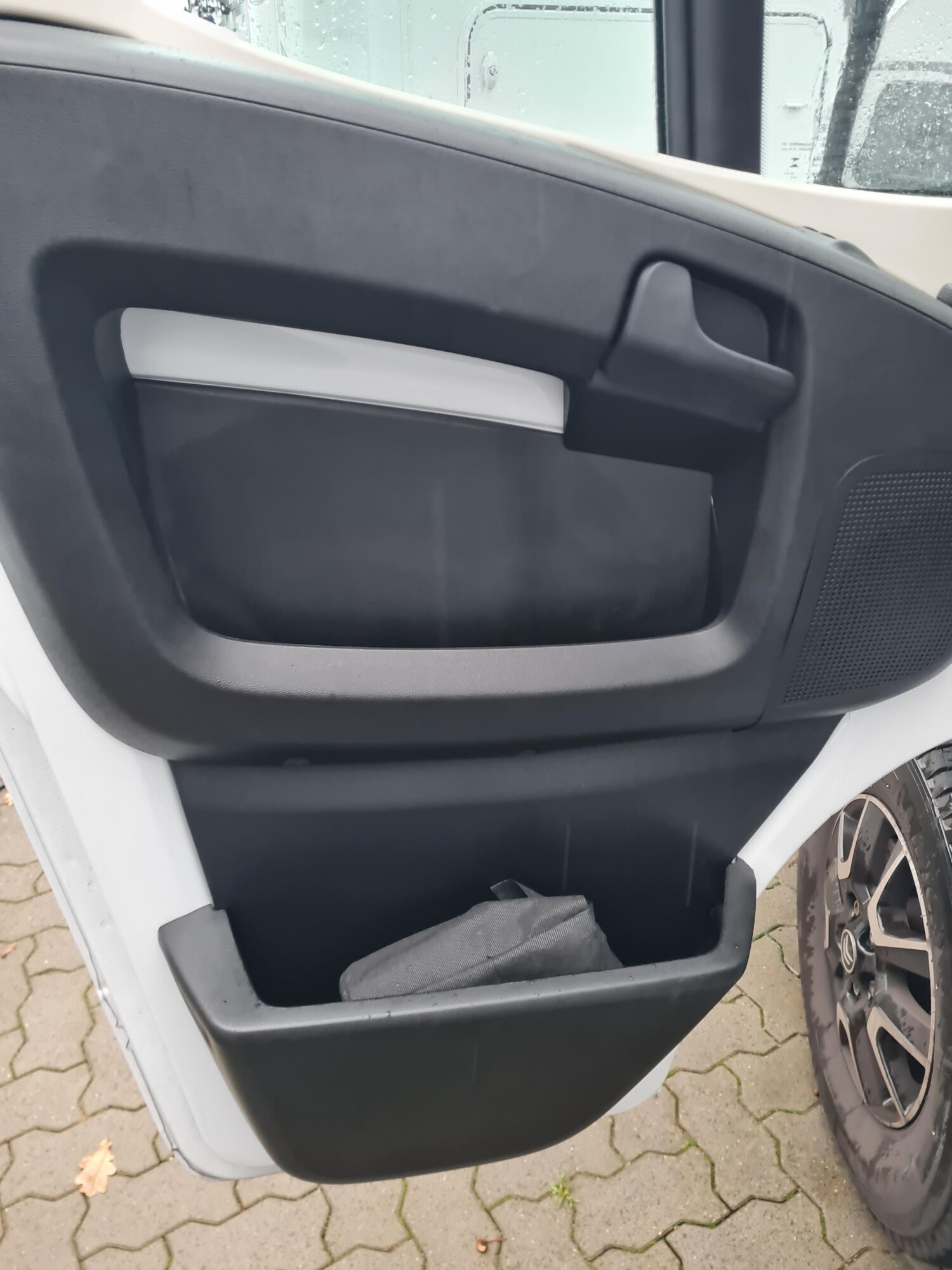 - Eingangstür, extrabreit mit Doppelverriegelung, Fenster, Abfalleimer und Staufächern, lichtes Maß: 605 x 1.740 mm