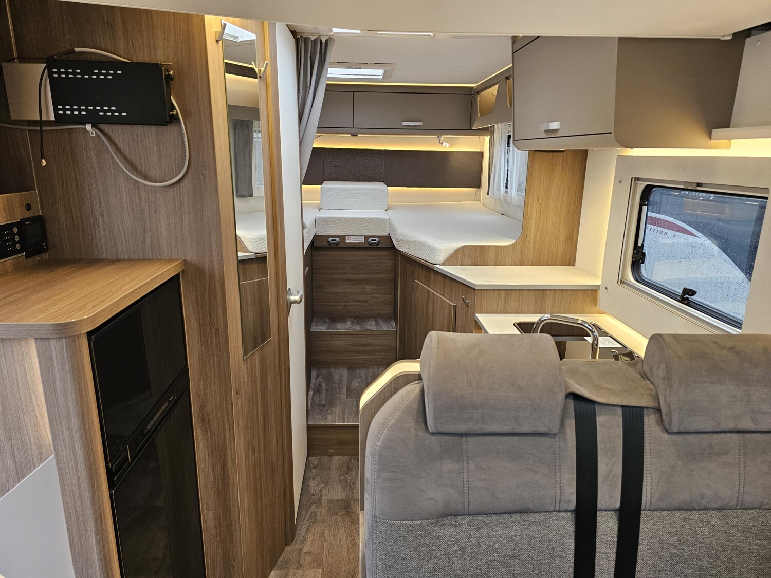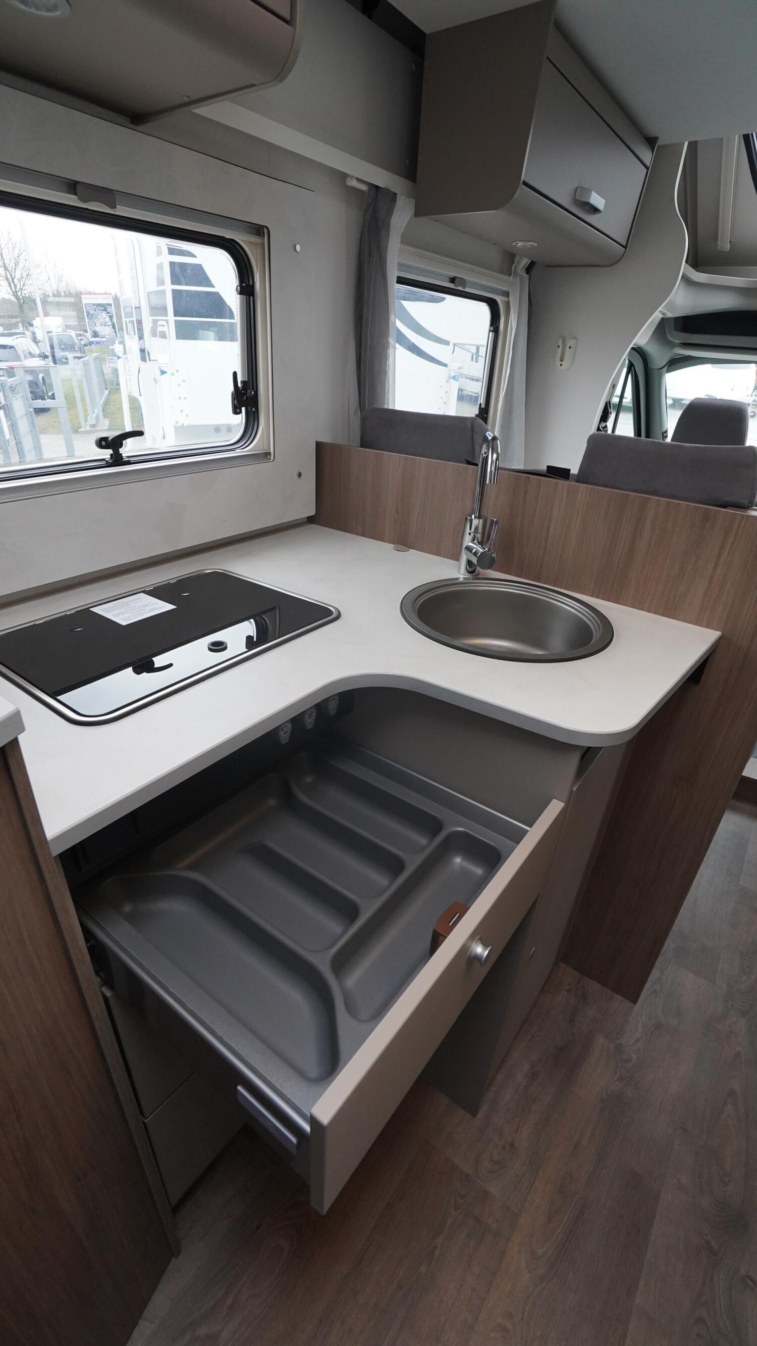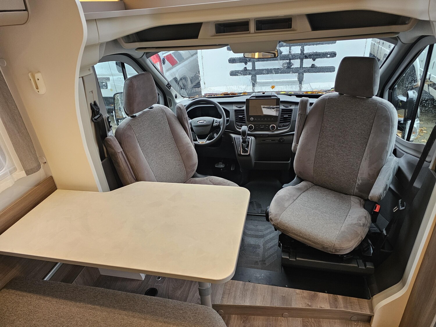 - Serienhighlights Edition24 Ford (Ford Transit 3.500 kg - 2,0l TDCi - 96 kW (130 PS) - Euro VI E - 6-Gang-Schaltgetriebe, Chassisfarbe Frost-Weiß, Stoßfänger lackiert, 16" Alufelgen, Faltverdunkelung Fahrerhaus, Fenster in T-Haube, Großer Kühlschrank 156 l mit separatem Frosterfach 29 l, Abwassertank isoliert, Markise (Länge grundrissabhängig), 12 V TV-Vorverkabelung inkl. Flachbildschirmhalter, TV Paket (22" Flachbildschirm + Halter, Satantenne Flatsat Classic 65), Rahmenfenster, Design Applikation Heck, 2. Außenstauraumklappe (Größe modellabhängig), Editionsabklebung, Wohnwelt Grau, Basic Paket (Panoramadachhaube über Sitzgruppe, Klarglasdachhaube 40 x 40 cm, Fliegengittertür (einteilig), Kabelvorbereitung für Rückfahrkamera, Komfort-Eingangstür mit Fenster und Verdunkelung, Bridge Light), Chassis Paket (Klimaanlage Fahrerhaus Automatik, Handschuhfach mit Deckel, zusätzlich abschließbar, Stoßfänger lackiert, Scheinwerfer mit statischem Abbiegelicht, Nebelscheinwerfer))