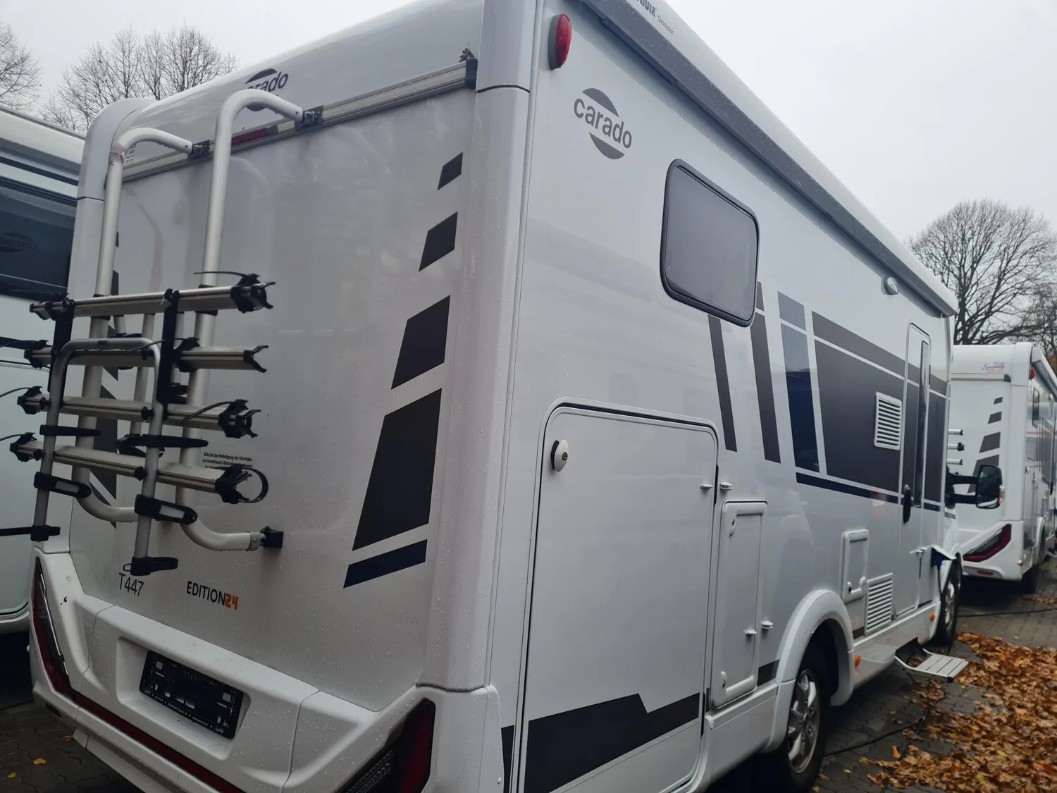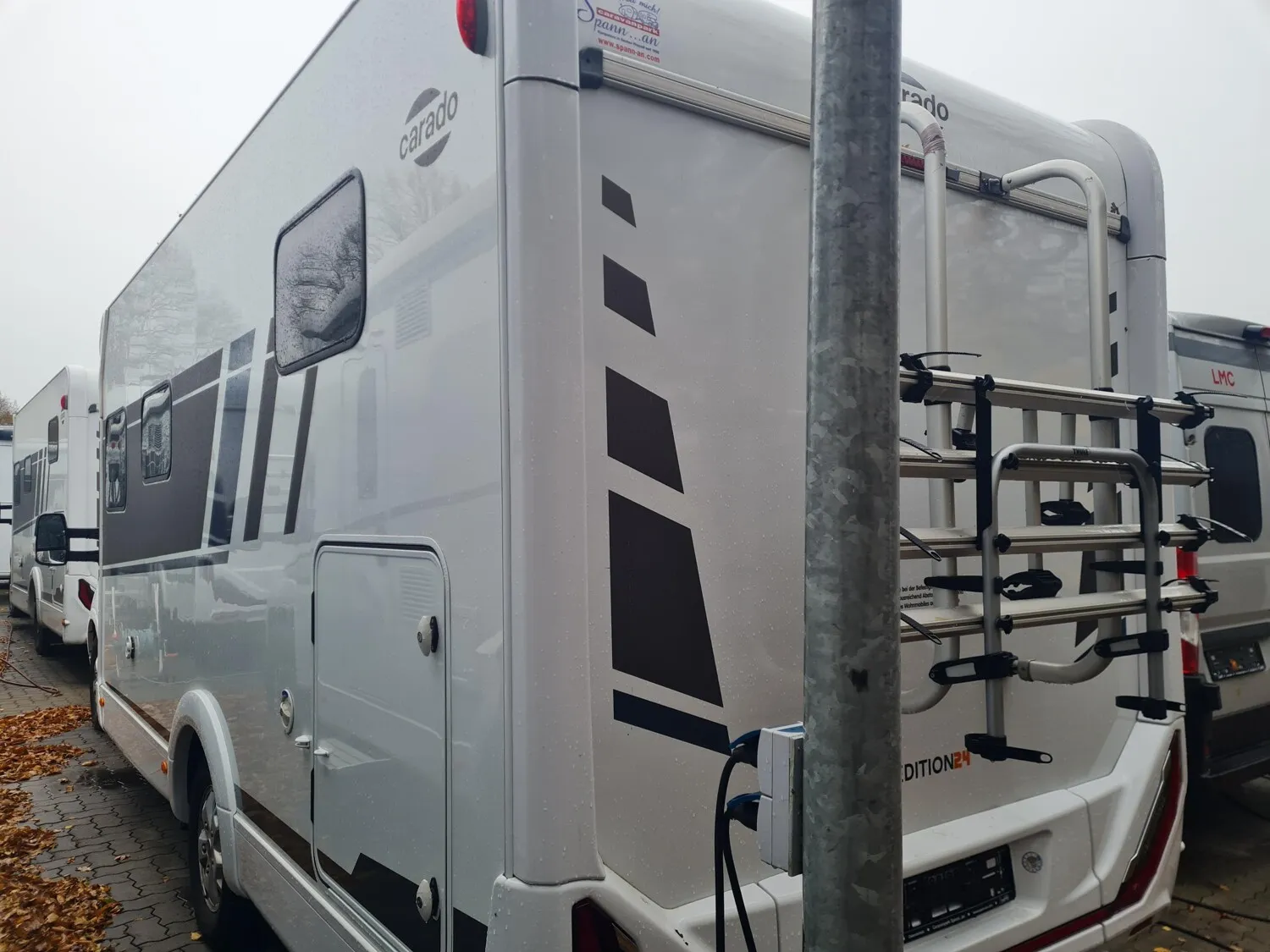 - Highlights Carado EDITION24 T-Modelle (Ford Transit 3.500 kg - 2,0l TDCi - 96 kW (130 PS) - Euro VI E - 6-Gang-Schaltgetriebe, Chassisfarbe Weiß, Stoßfänger lackiert, 16" Alufelgen, Faltverdunkelung Fahrerhaus, Fenster in T-Haube, Großer Kühlschrank 156 l mit separatem Frosterfach 29 l, Abwassertank isoliert, Markise, 12 V TV-Vorverkabelung inkl. Flachbildschirmhalter, TV Paket (22" Flachbildschirm + Halter, Satantenne Flatsat Classic 65), Rahmenfenster, Design Applikation Heck, 2. Außenstauraumklappe (Größe modellabhängig), Editionsabklebung, Wohnwelt Grau, Basic Paket (Panoramadachhaube über Sitzgruppe, Klarglasdachhaube 40 x 40 cm, Fliegengittertür (einteilig), Kabelvorbereitung für Rückfahrkamera, Komfort-Eingangstür mit Fenster und Verdunkelung, Bridge Light), Chassis Paket (Klimaanlage Fahrerhaus Automatik, Handschuhfach mit Deckel, zusätzlich abschließbar, Stoßfänger lackiert, Scheinwerfer mit statischem Abbiegelicht, Nebelscheinwerfer))