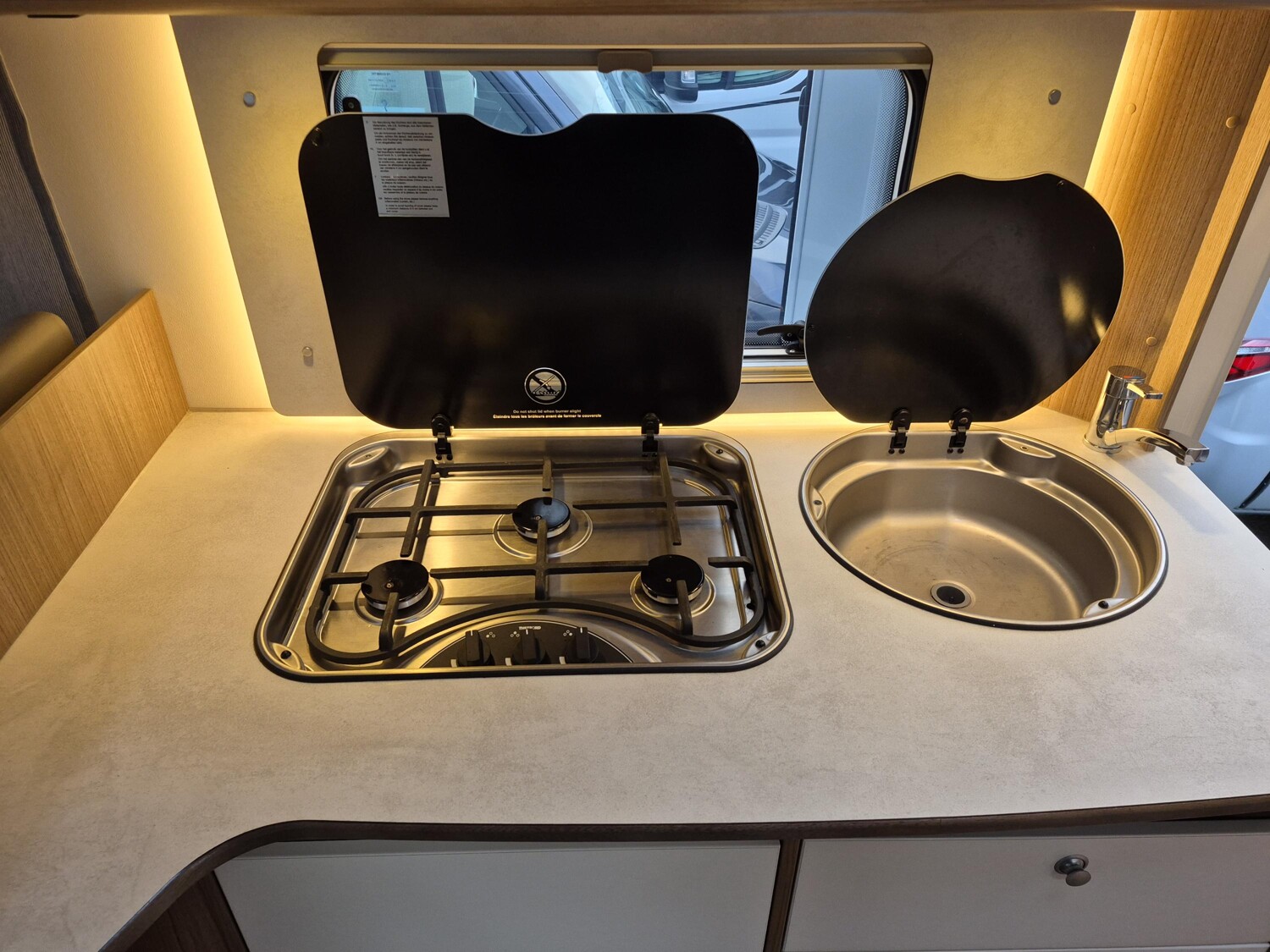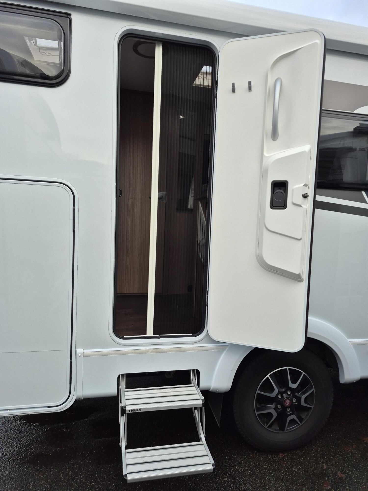 - Basic Paket (Außenspiegel elektrisch und beheizt, Radiovorbereitung mit Lautsprechern, DAB Antenne integriert im Außenspiegel, Beifahrersitz höhenverstellbar, Panormadachhaube über Sitzgruppe, Klarglasdachhaube 40 x 40 cm, Duschraumverkleidung, Spiegel mit indirekter Beleuchtung und Garderobenhaken, Captain Chair mit Bezügen, Zusätzliche Steckdose im Dachschrank über dem Küchenblock, Steckdose in der Garage)