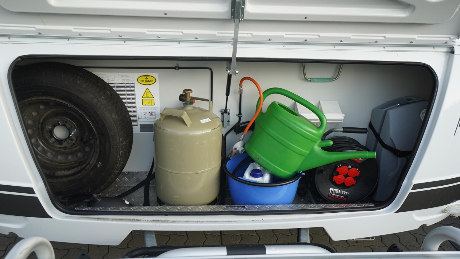 - Touring-Paket (Warmwasserversorgung, Warmluftanlage, Dachhaube Heki II inkl. Baldachin beleuchtet, Fliegengittertüre)