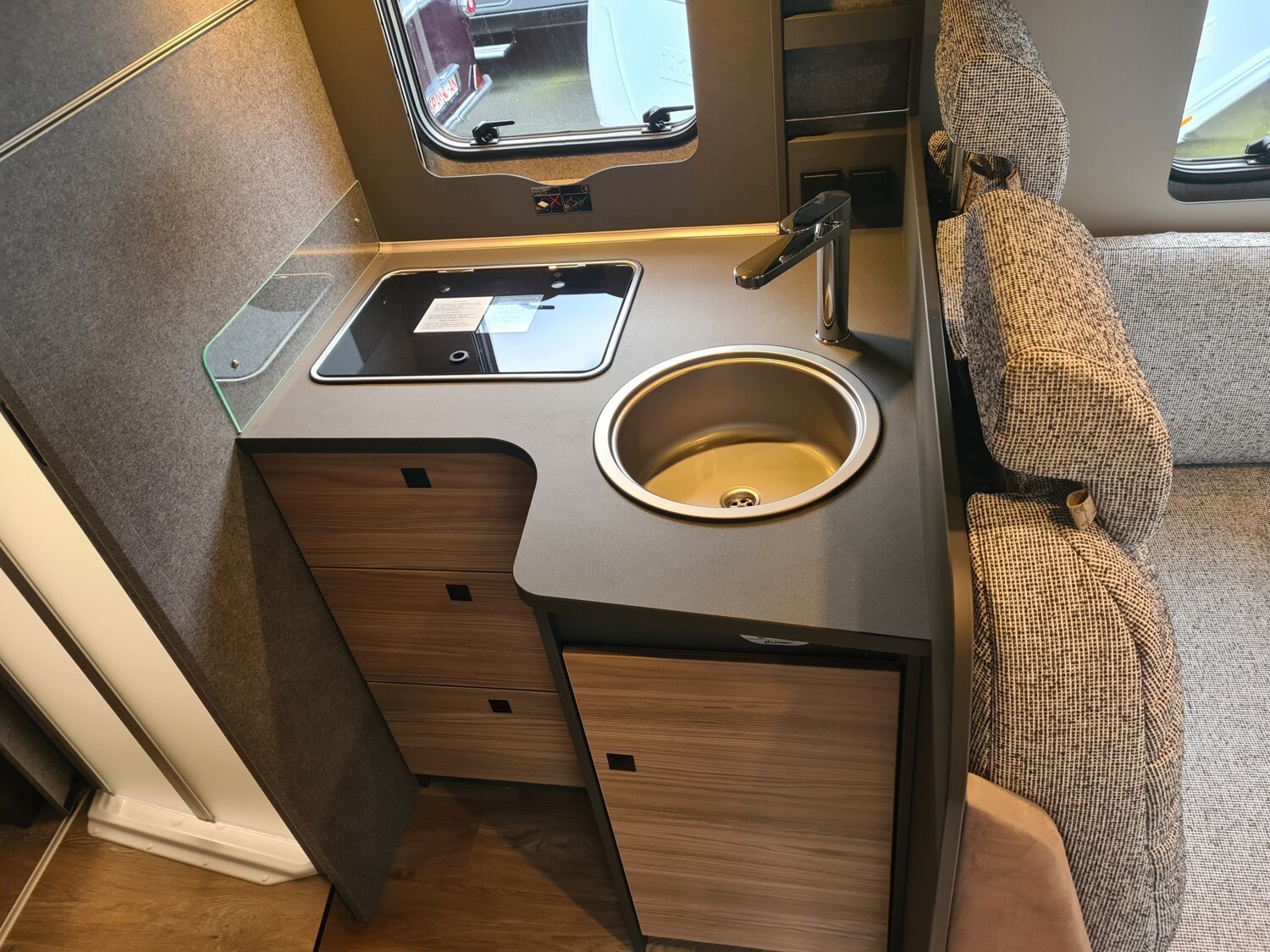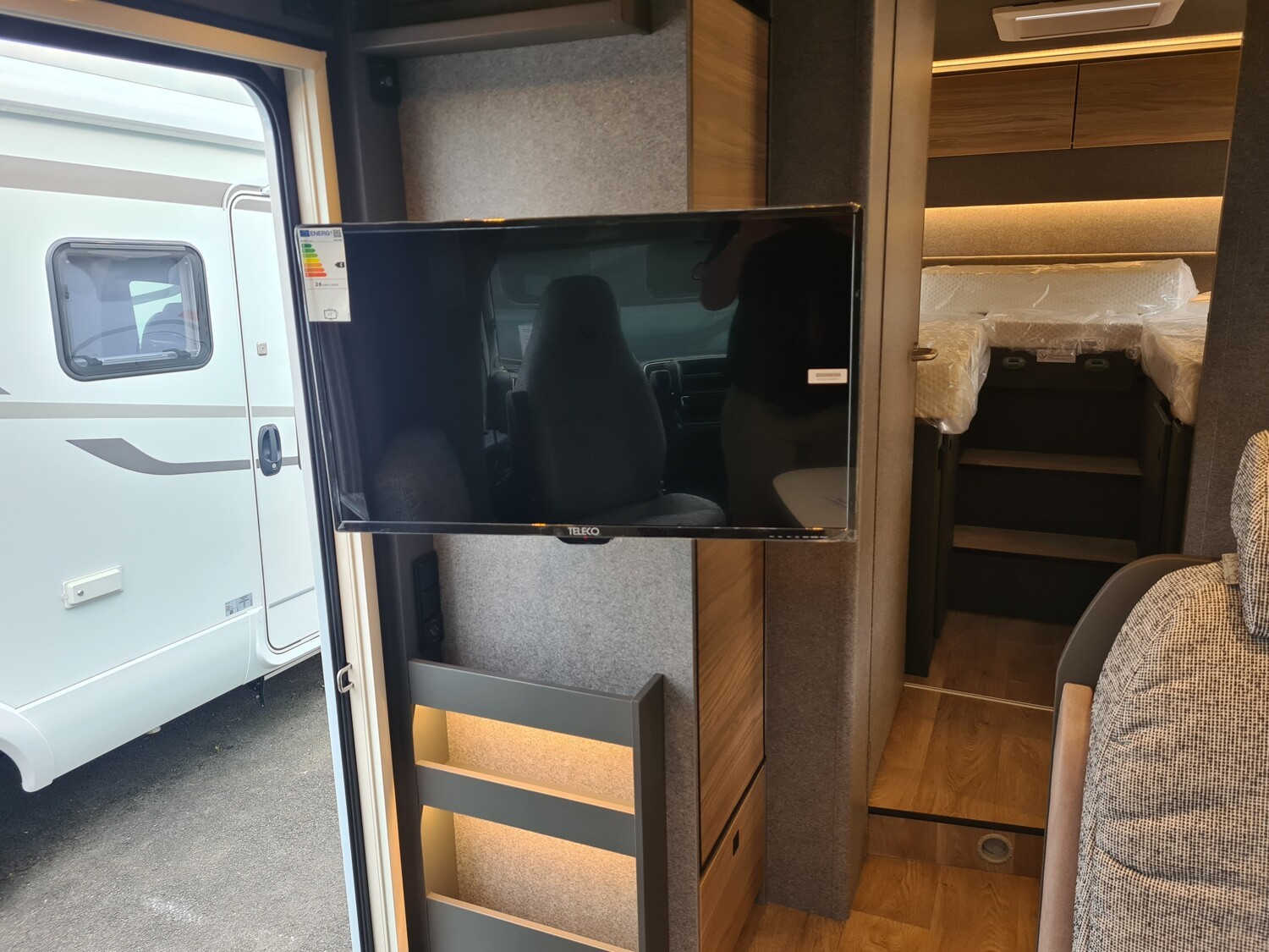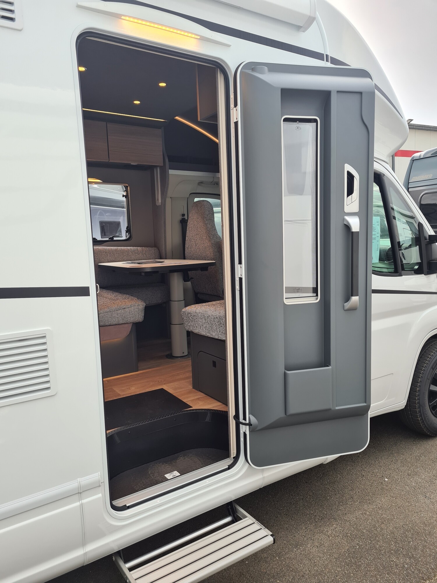 - Family-Paket T 6817, 7057 EB (Wohnraumtür mit Fenster inkl. Verdunkelung und Zentralverriegelung (inkl. Fahrerhaustüre), Verdunklungsjalousien im Fahrerhaus, Vorbereitung für Radiosystem inkl. Soundpaket im Fahrerhaus, Light Moments: Indirekte Ambientebeleuchtung über den Dachstauschränken, Light Moments: Indirekte Wandflächen-Ambientebeleuchtung, Light Moments: Küchenrückwand beleuchtet, Light Moments: Indirekte Beleuchtung im Badezimmer mit beleuchteter Duschkonsole, Light Moments: Eingangsmodul mit indirekter Beleuchtung, Light Moments: Verkleidete Sitztruhenwange mit indirekter Beleuchtung, Gemütliche L-Sitzgruppe mit freistehendem, absenkbarem Tischfuß und 2 integrierte 3-Punkt-Gurte, Bettumbau Einzelbetten zu Doppelbett)