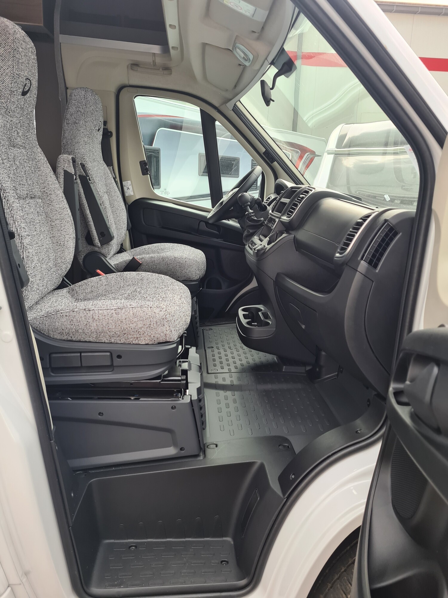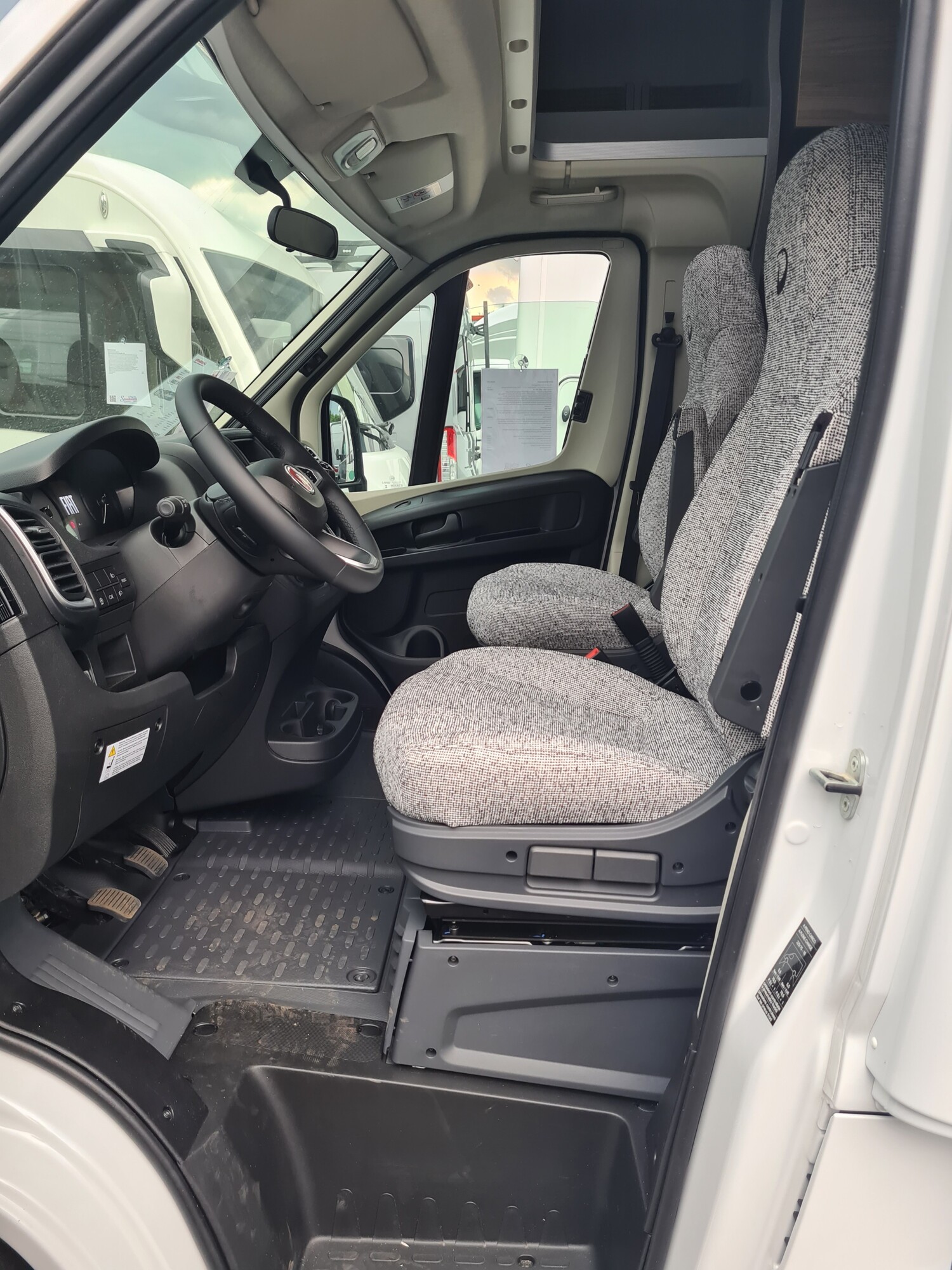 - Chassis-Paket (Elektrische Feststellbremse, Armaturenbrett mit Aluminium Applikation, Fahrerhaus Klimaanlage automatisch, LED Tagfahrlicht, Lenkrad mit Bedienelementen, Dieseltank 90 Liter inkl. 19L AdBlue Tank, Scheinwerfer mit schwarzem Rahmen, Frontgrill schwarz glänzend mit Chromzierleisten, Skidplate schwarz glänzend, Alufelge Fiat 16 Zoll)