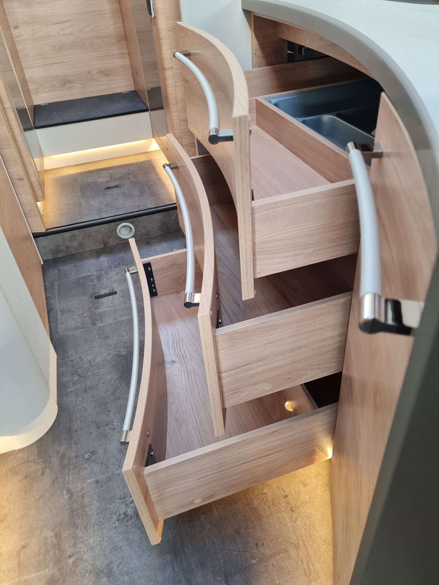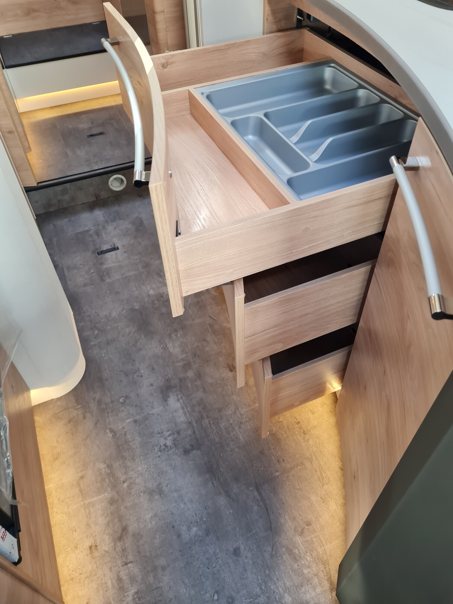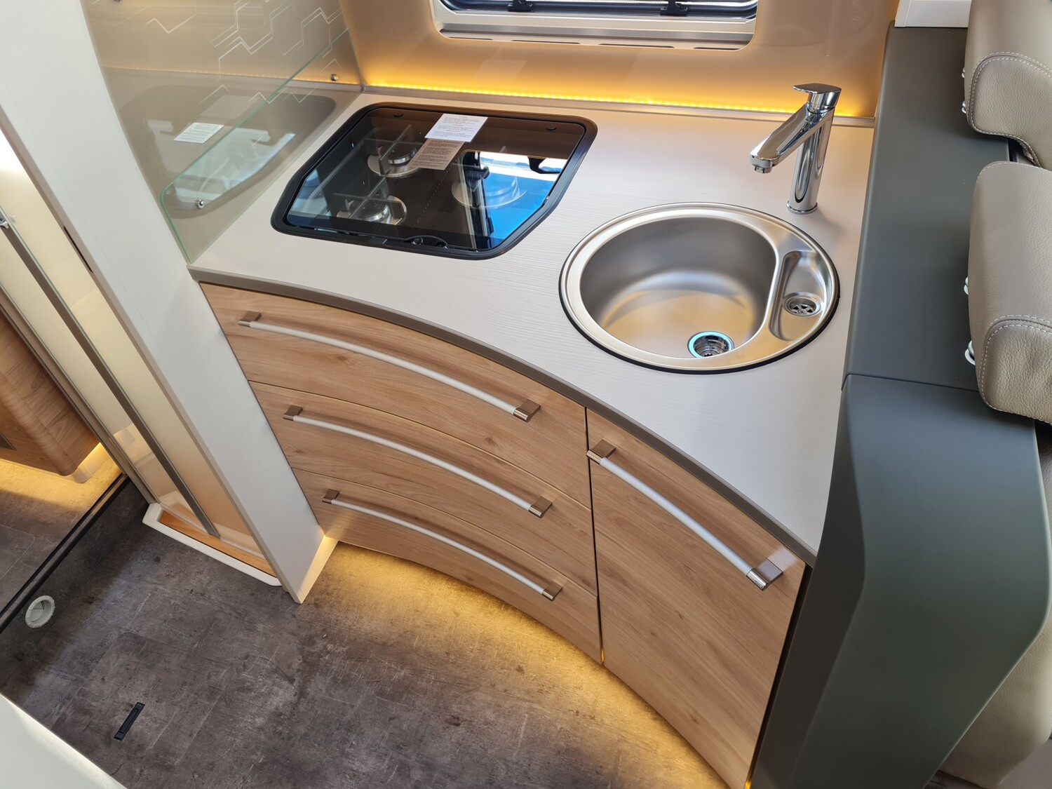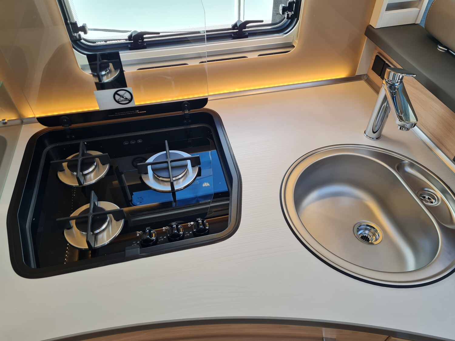 - Light Moments (Light Moments: Beleuchteter Einstiegsgriff, Light Moments: Indirekte Beleuchtung im Badezimmer mit beleuchteter Duschkonsole, Light Moments: Sockelbeleuchtung im gesamten Fahrzeug, Light Moments: Durchgehender Baldachin mit indirekter Beleuchtung, Light Moments: Küchenrückwand beleuchtet, Light Moments: Indirekte dimmbare Wandflächen-Ambientebeleuchtung)