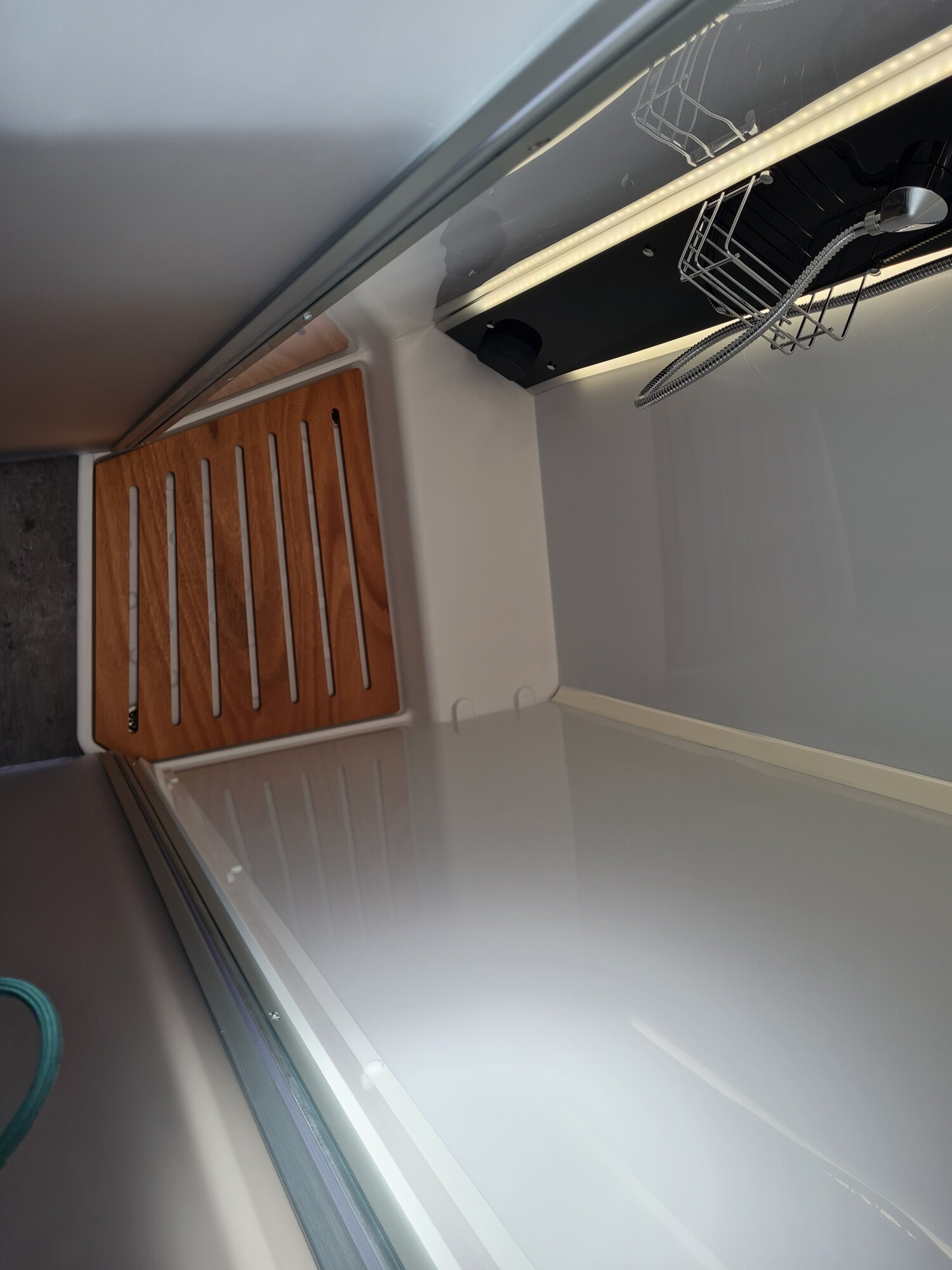 - Außendusche in Heckgarage installiert (Warm-/ Kaltwasser)