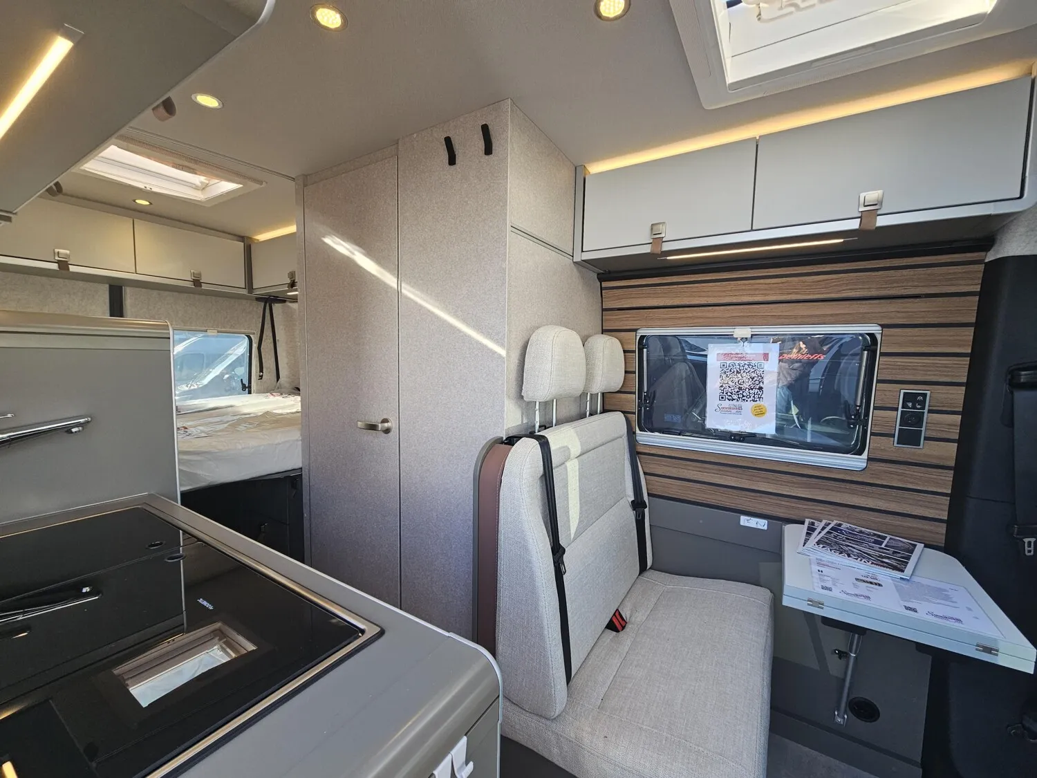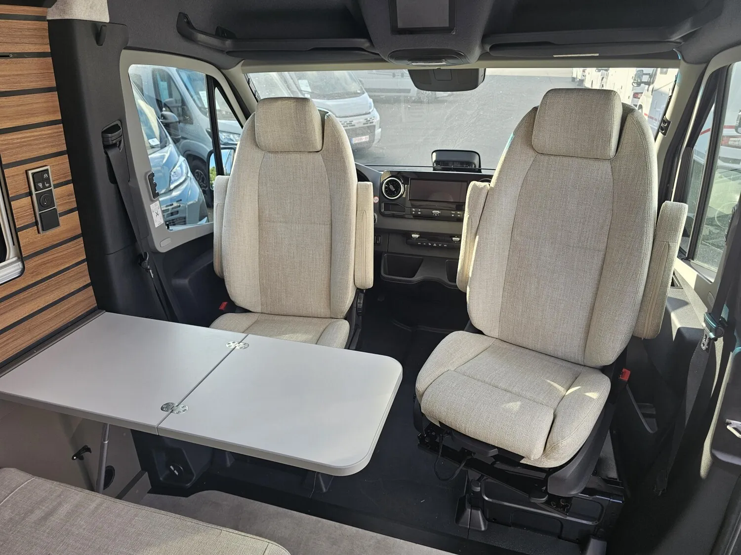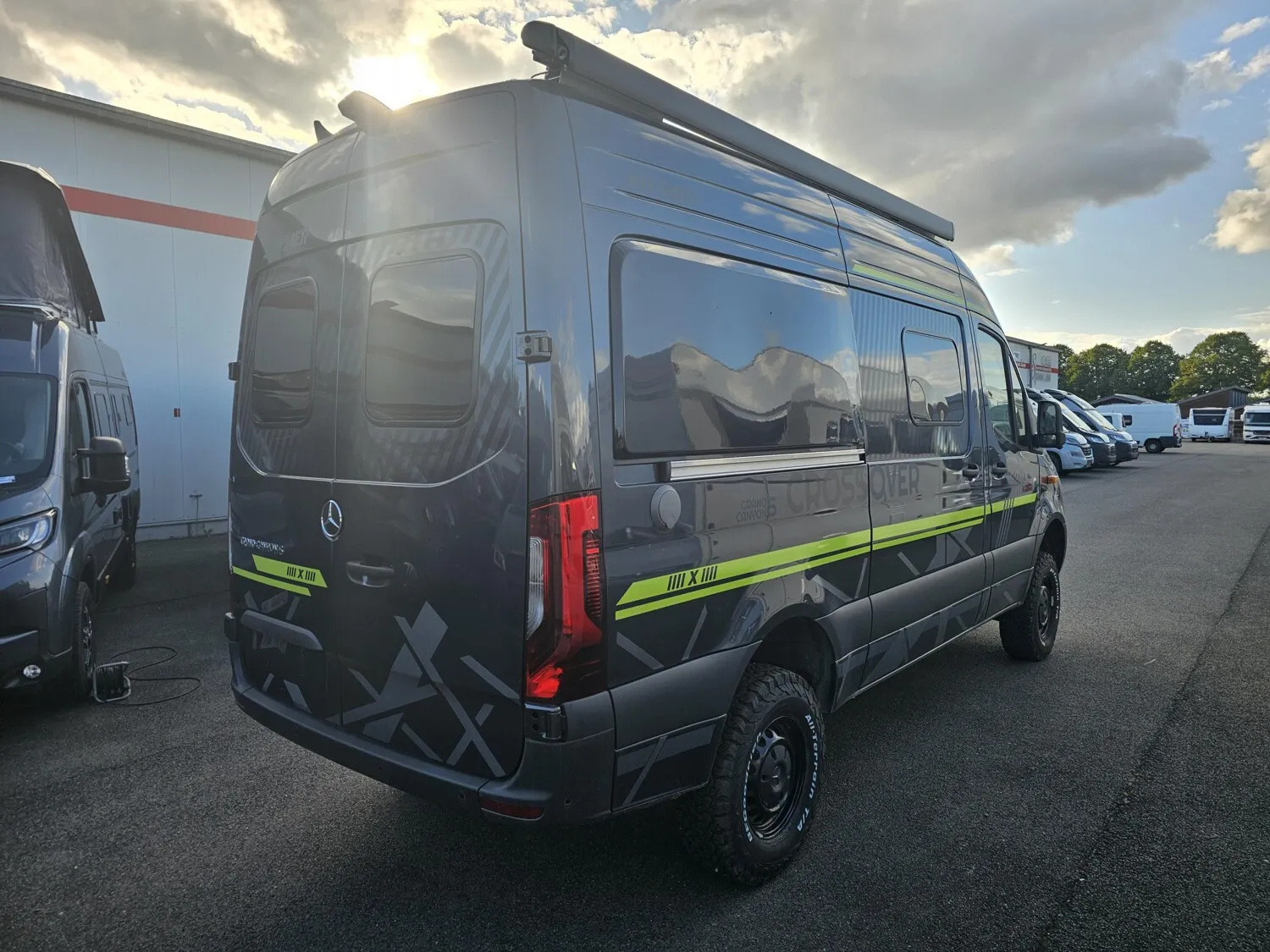 - Serienhighlights CrossOver Grand Canyon S 2025 (Mercedes-Benz Sprinter 3,88 t - 419 CDI - 141 KW/190 PS - Euro VI-E // Metallic Tenoritgrau // Allradantrieb permanent inkl. Heckleuchten in LED-Technik // Automatikgetriebe 9G-TRONIC inkl. Hold-Funktion (x19 CDI) // Kühlergrill Chrom // LED-High-Performance-Scheinwerfer // Motor-/Unterfahrschutz // Nebelscheinwerfer mit Abbiegelicht // Stoßfänger und Kühlergrillrahmen in Wagenfarbe lackiert // Elektrische Schließhilfe Schiebetür rechts // Ablage für Smartphones inkl. wireless charging Funktion und Ladestandsanzeige // Ladepaket Instrumententafel mit 2 x USB-C Stecker 5V / 1x 12V-Steckdose // Vollautomatische Klimaanlage THERMOTRONIC // Lederlenkrad (bei Automatikgetriebe) // Parametrierbares Sondermodul // Windschutzscheibe beheizbar // MBUX 10,25" Multimediasystem mit Rückfahrkamera, Sprachsteuerung und Touchscreen inkl. Navigation & Smartphone-Integration // Park-Paket mit 360° Kamera // Aktiver Abstands-Assistent DISTRONIC PLUS inkl. Lenkrad-Multifunktionstasten // Aktiver Spurhalte-Assistent // Fernlicht-Assistent // Totwinkel-Assistent // Verkehrszeichen-Assistent // Elektrische Offroad-Trittstufe (einklappbar) für mehr Bodenfreiheit // 44" LED-Lightbar über dem Fahrerhaus // Designbeklebung Crossover // 6 kW Diesel-Warmluftheizung mit 10l Warmwasserboiler, Lutdrucksensor (Höhenkit) und 1.800 Watt Elektroheizstab // HYMER-Smart-Battery-System 2.0 (4x80 Ah LFP) inkl. Zusatzlader // Wasserfilter für Frischwassersystem // Ambient-Light-System: Mehr-Ebenen Lichtsystem mit dynamischer und individueller Steuerung der Beleuchtung (inkl. Lichttemperatur) sowie stimmungsvoller Sockelbeleuchtung // Spannbettlaken nach Maß für Heckbetten individuell an Matratzen angepasst // Wohnwelt "HOME" (2 Kissen und Stofftasche) // Einlegeboden mit Korkoberfläche // Zweite Toilettenkassette inkl. Halterung // 2 Klappstühle und Tisch inkl. Befestigung // Werkzeug-Set (Klappspaten, Axt) im Heckstauraum)
