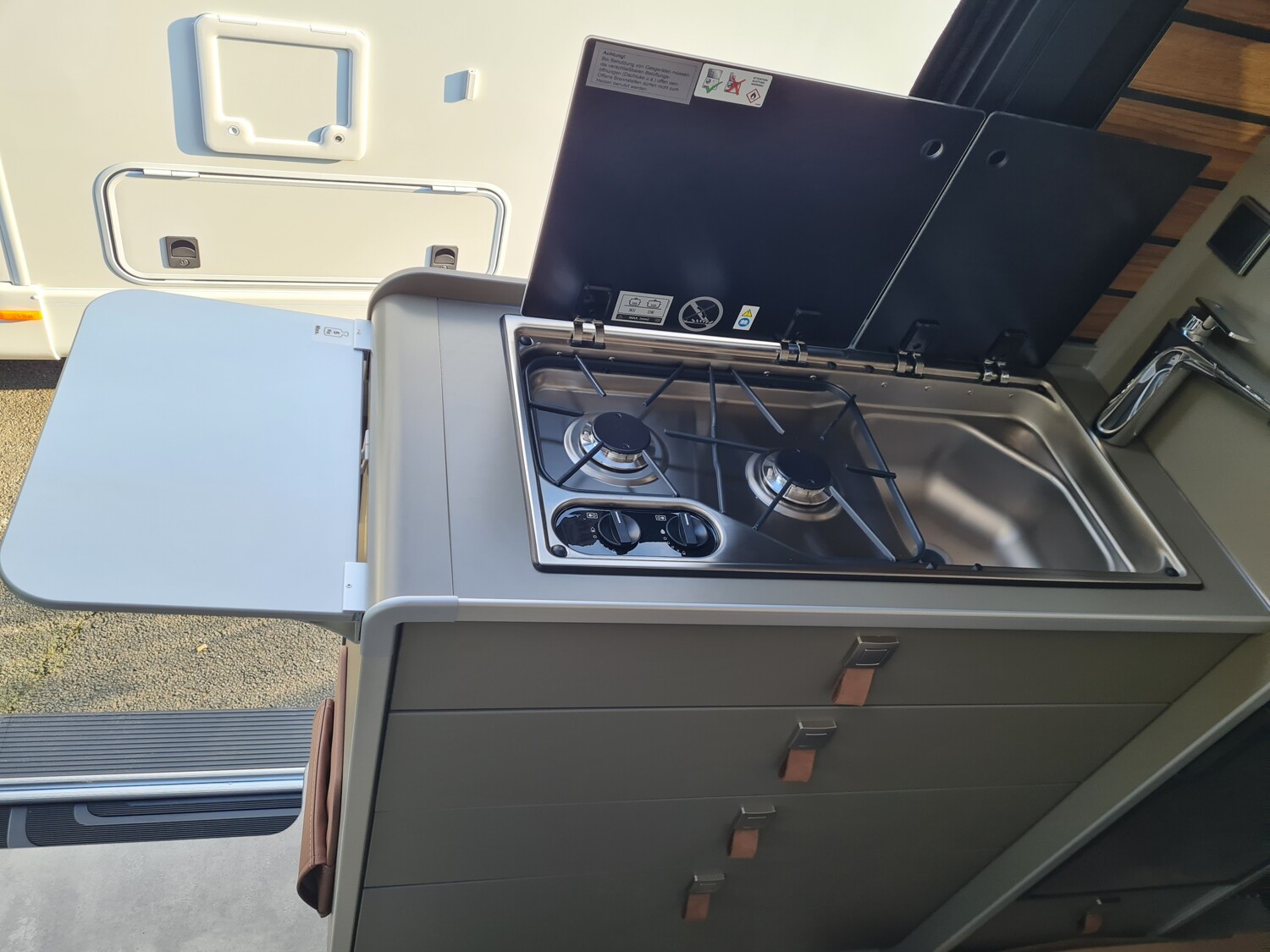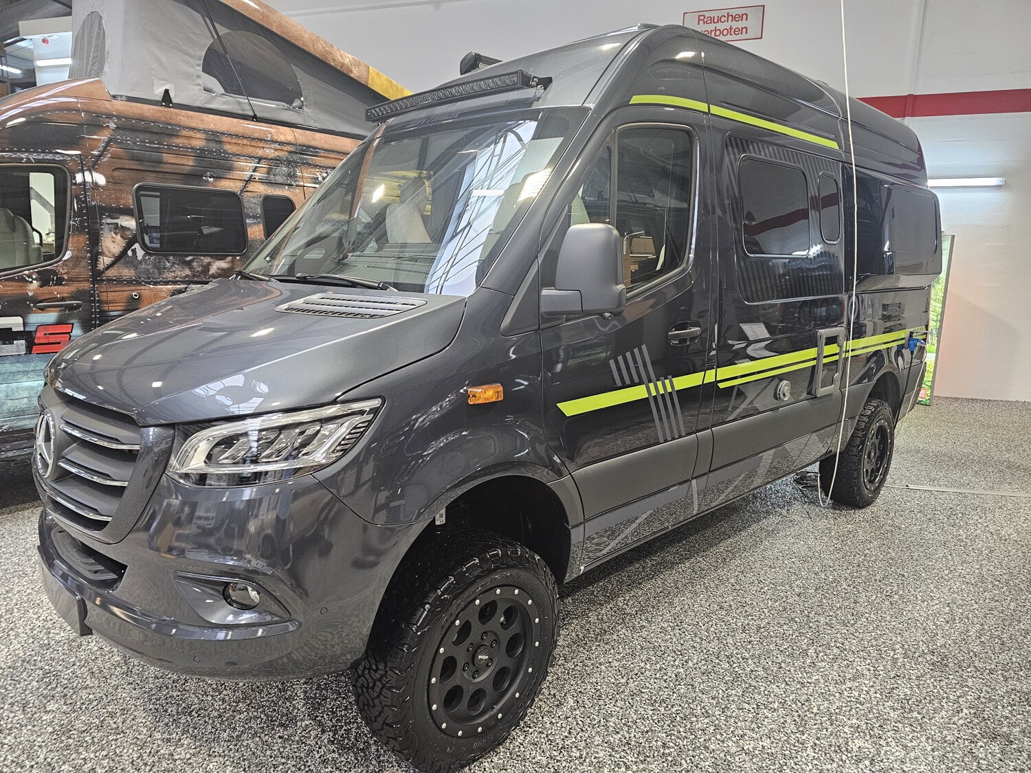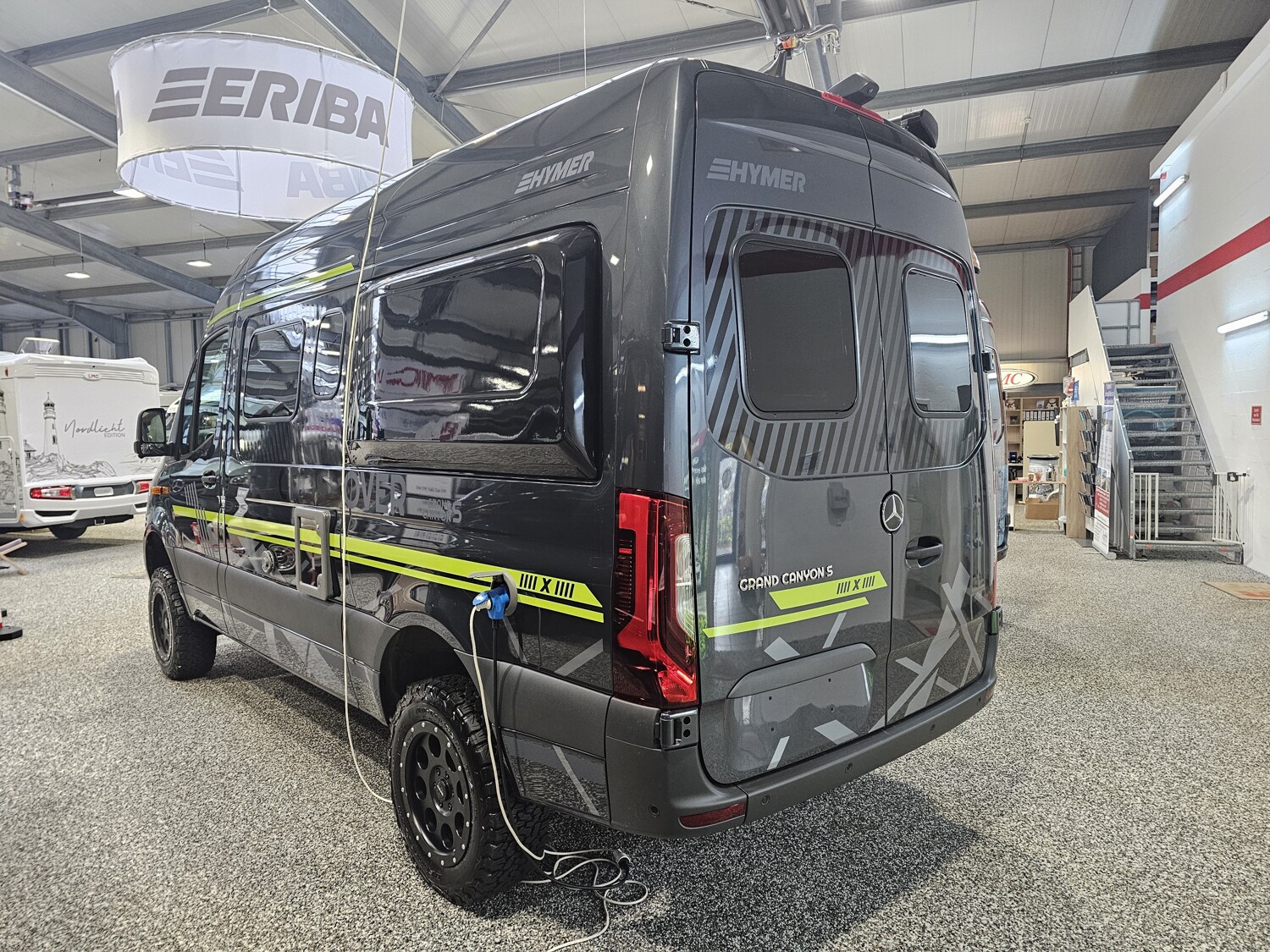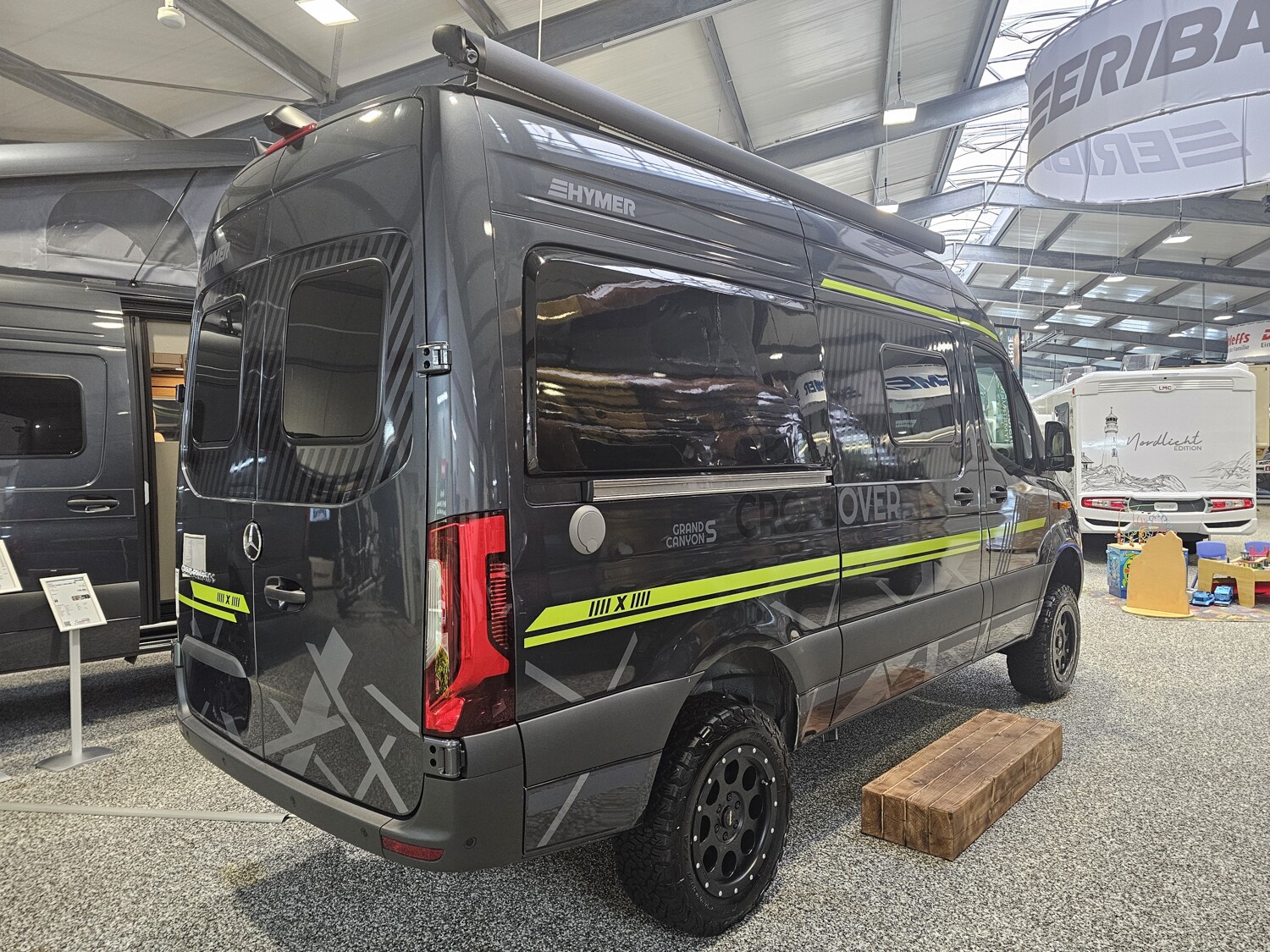 - Serienhighlights CrossOver Grand Canyon S 2025 (Mercedes-Benz Sprinter 3,88 t - 419 CDI - 141 KW/190 PS - Euro VI-E // Metallic Tenoritgrau // Allradantrieb permanent inkl. Heckleuchten in LED-Technik // Automatikgetriebe 9G-TRONIC inkl. Hold-Funktion (x19 CDI) // Kühlergrill Chrom // LED-High-Performance-Scheinwerfer // Motor-/Unterfahrschutz // Nebelscheinwerfer mit Abbiegelicht // Stoßfänger und Kühlergrillrahmen in Wagenfarbe lackiert // Elektrische Schließhilfe Schiebetür rechts // Ablage für Smartphones inkl. wireless charging Funktion und Ladestandsanzeige // Ladepaket Instrumententafel mit 2 x USB-C Stecker 5V / 1x 12V-Steckdose // Vollautomatische Klimaanlage THERMOTRONIC // Lederlenkrad (bei Automatikgetriebe) // Parametrierbares Sondermodul // Windschutzscheibe beheizbar // MBUX 10,25" Multimediasystem mit Rückfahrkamera, Sprachsteuerung und Touchscreen inkl. Navigation & Smartphone-Integration // Park-Paket mit 360° Kamera // Aktiver Abstands-Assistent DISTRONIC PLUS inkl. Lenkrad-Multifunktionstasten // Aktiver Spurhalte-Assistent // Fernlicht-Assistent // Totwinkel-Assistent // Verkehrszeichen-Assistent // Elektrische Offroad-Trittstufe (einklappbar) für mehr Bodenfreiheit // 44" LED-Lightbar über dem Fahrerhaus // Designbeklebung Crossover // 6 kW Diesel-Warmluftheizung mit 10l Warmwasserboiler, Lutdrucksensor (Höhenkit) und 1.800 Watt Elektroheizstab // HYMER-Smart-Battery-System 2.0 (4x80 Ah LFP) inkl. Zusatzlader // Wasserfilter für Frischwassersystem // Ambient-Light-System: Mehr-Ebenen Lichtsystem mit dynamischer und individueller Steuerung der Beleuchtung (inkl. Lichttemperatur) sowie stimmungsvoller Sockelbeleuchtung // Spannbettlaken nach Maß für Heckbetten individuell an Matratzen angepasst // Wohnwelt "HOME" (2 Kissen und Stofftasche) // Einlegeboden mit Korkoberfläche // Zweite Toilettenkassette inkl. Halterung // 2 Klappstühle und Tisch inkl. Befestigung // Werkzeug-Set (Klappspaten, Axt) im Heckstauraum)