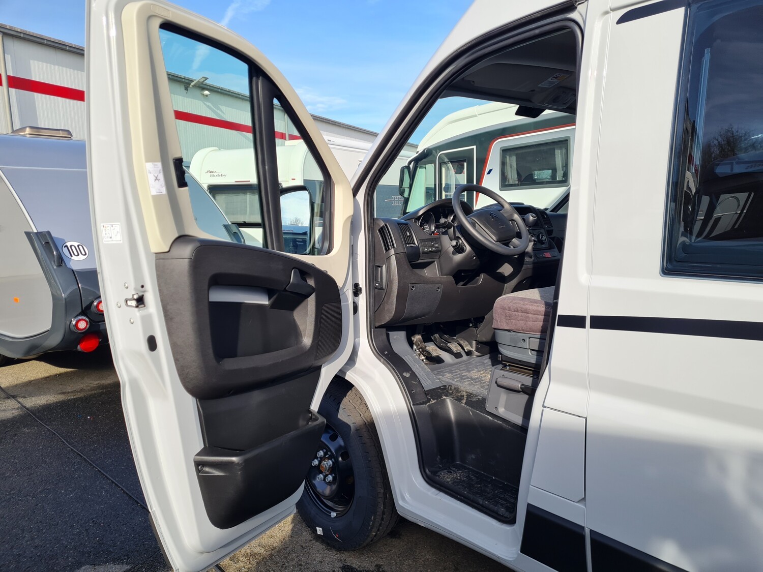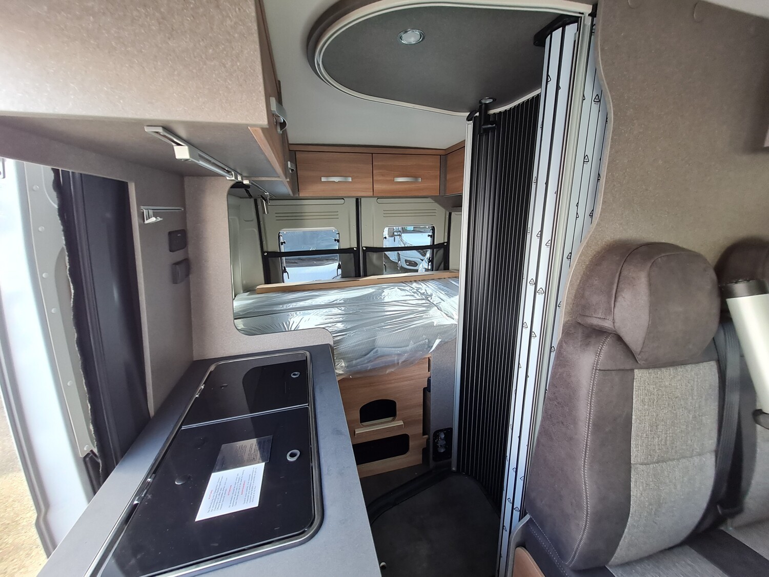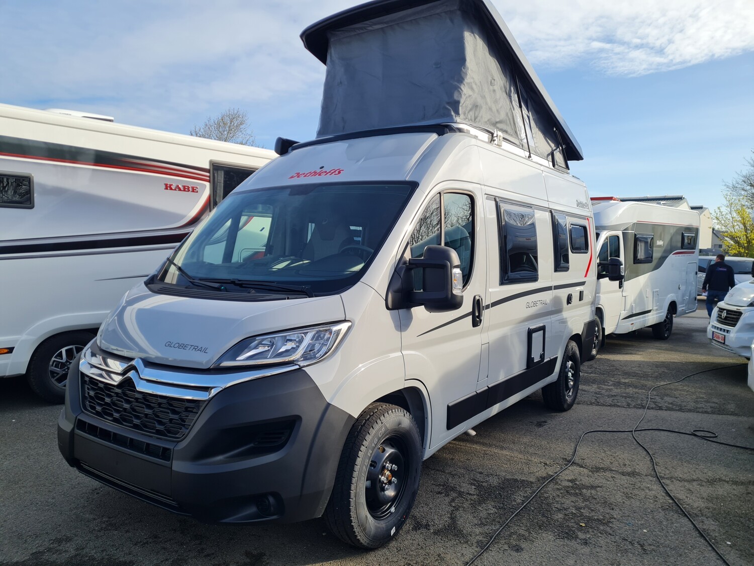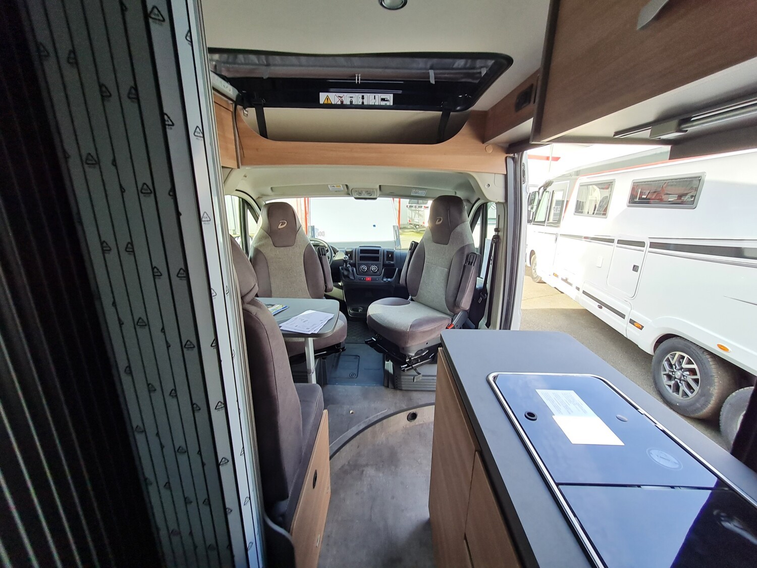 - Aufstelldach schwarz, vorne komplett zu öffnen inkl. elektrischem Schließassistenten, Fliegengitter, Schwanenhalsleuchte und USB-Steckdose, mit hochwertiger Matratze