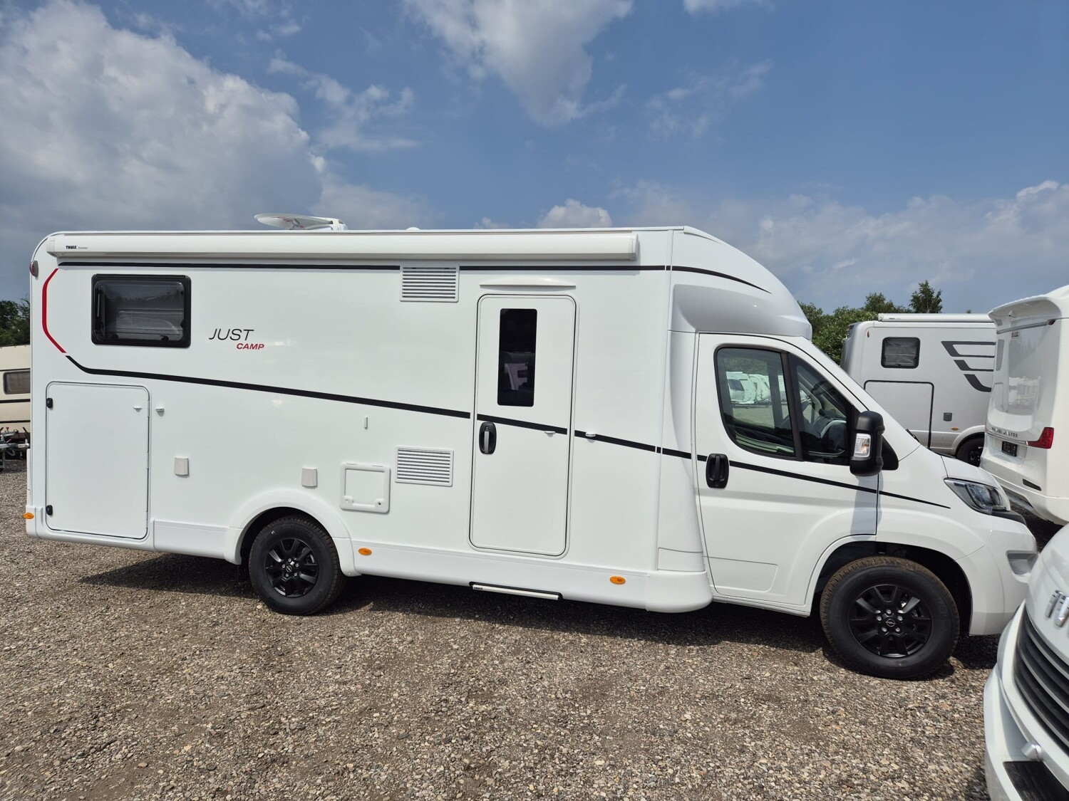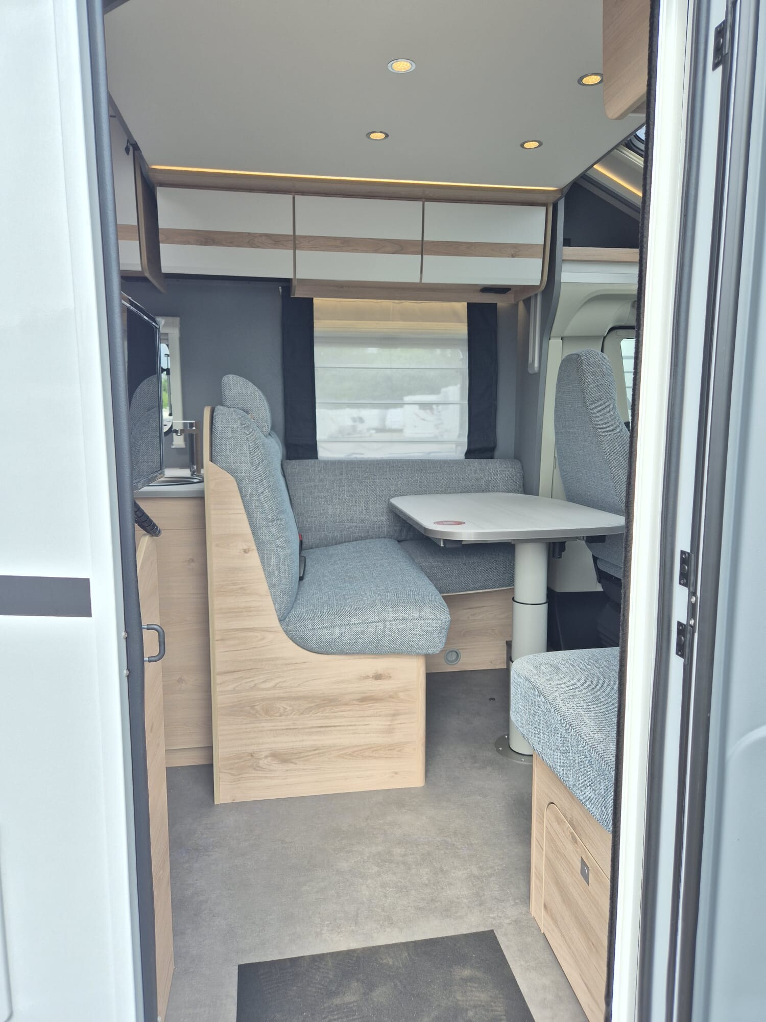 - Family-Paket T 6812, 7052 EB (Ausstellfenster in der T-Haube, Wohnraumtür mit Fenster inkl. Verdunkelung und Zentralverriegelung (inkl. Fahrerhaustüre), Verdunklungsjalousien im Fahrerhaus, Panorama-Dachhaube 70 x 50 cm im Wohnraum, Light Moments: Indirekte Ambientebeleuchtung über den Dachstauschränken, Light Moments: Indirekte Wandflächen-Ambientebeleuchtung, Bettumbau Einzelbetten zu Doppelbett, Gemütliche L-Sitzgruppe mit freistehendem, absenkbarem Tischfuß und 2 integrierte 3-Punkt-Gurte, Stauraum-Türe links)