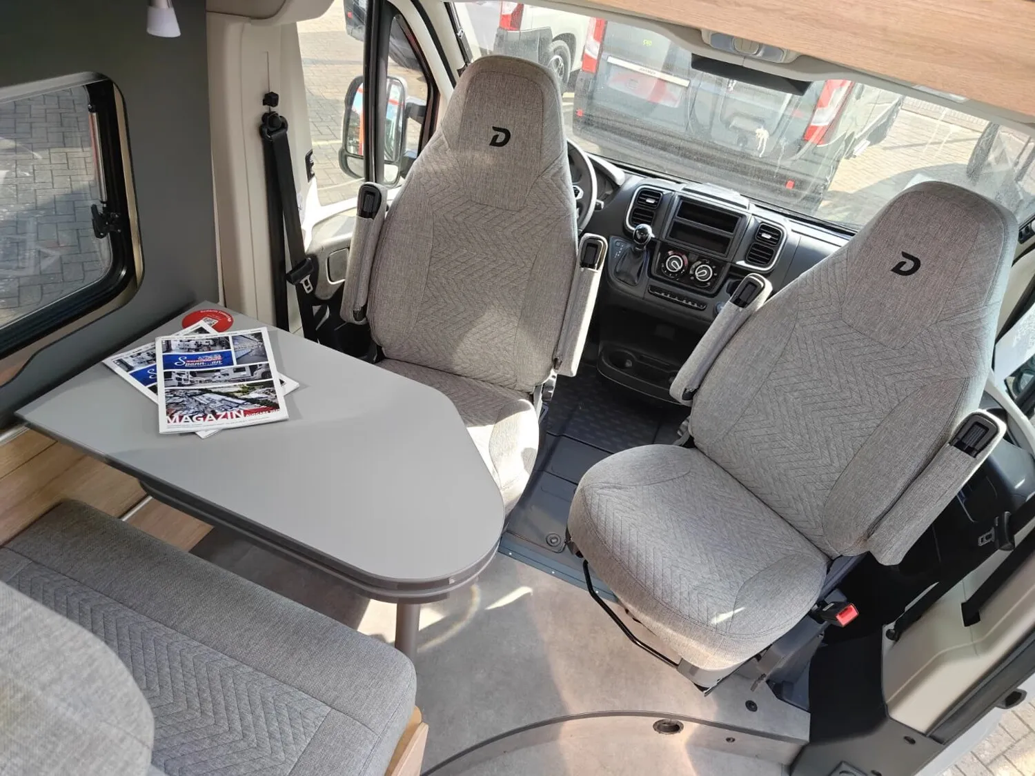 - Komfort Paket (540 DR) (Rahmenfenster, Schiebefenster mit Fliegenschutz und Verdunklungsrollo im Heck links, Markise 3,25 m(540), Innovativer Auszug unter dem Heckbett, Teppich auf Podest (gekettelt, lose verlegt), Vorzeltleuchte, Drehplatte für Tischerweiterung)
