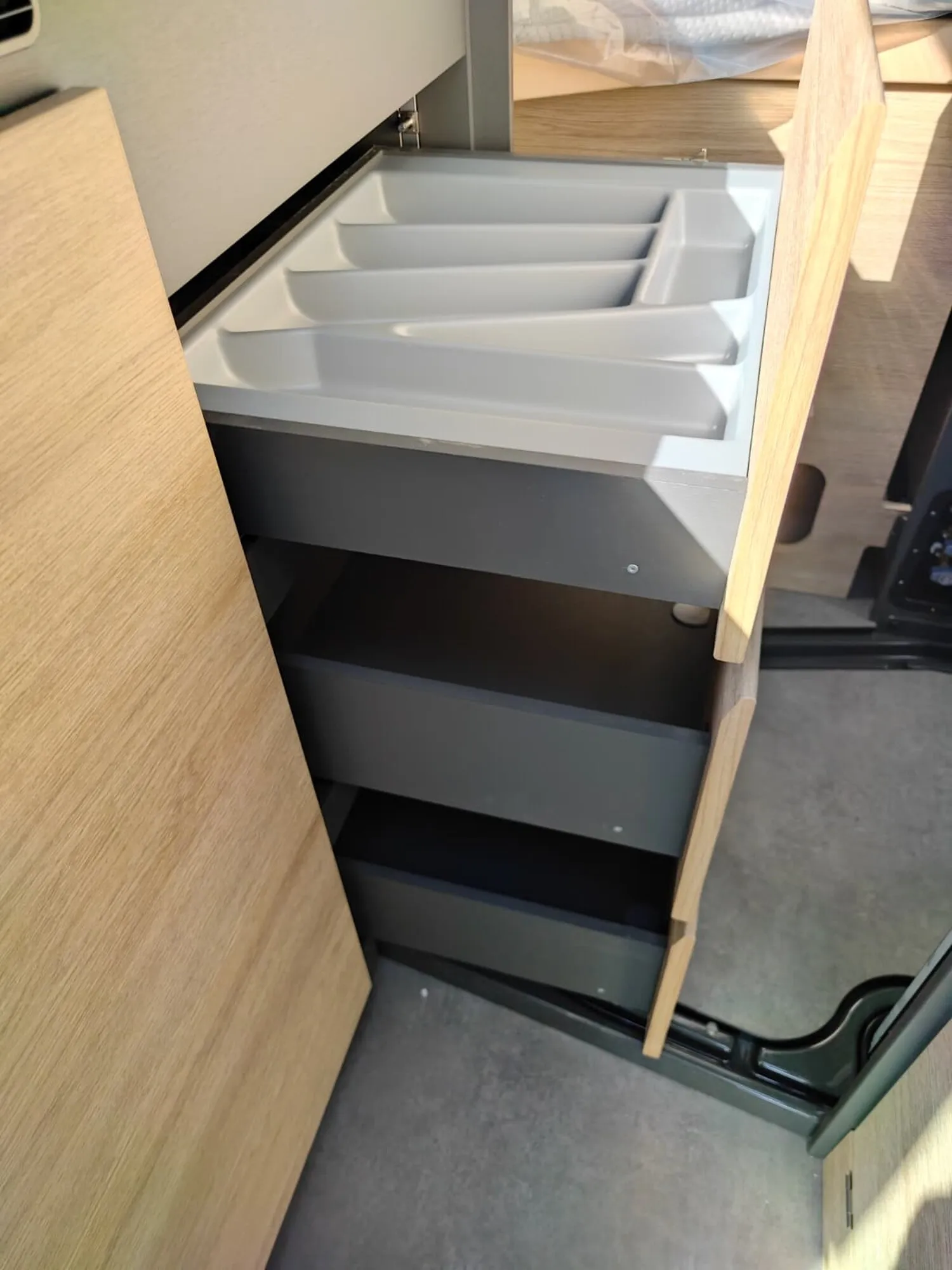 - Elektro Paket (Zusätzliche Doppel-USB-Steckdose im Bug links, 12-V-Steckdose im Heckbereich links unten, 230-V-Steckdose im Oberschrank Bug links (Sitzgruppe), Indirekte Beleuchtung, LED-Lichtröhre in der Küche, Vorbereitung Solarmodule)