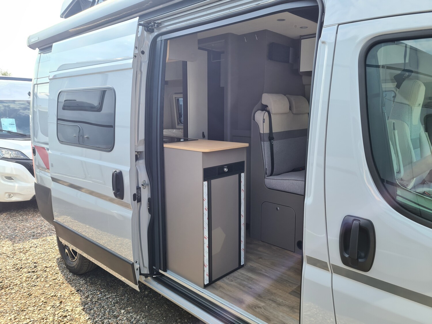 - Innovan Citroen Paket (Breite Einstiegsstufe, Aluminiumfelgen 16", Traktion Plus, Multifunktionslenkrad, Stoßfänger in Wagenfarbe, Markise, Rückfahrkamera in 3ter Bremsleuchte, Duschwanneneinlage aus Holz, Dachhaube Midi-Heki 700 x 500 mm über Sitzgruppe, Duschausstattung (Brausekopf ausziehbar, Duschvorhang, Führungsschiene, Brausehalter), Fenster im Bad, Faltrollosystem Fahrerhaus, Kleiderstange in der Nasszelle, Fliegenschutztür, Drehplatte für Tischerweiterung an der Sitzgruppe, Radiovorbereitung mit Lautsprechern und Dachantenne (DAB), Captain-Chair inkl. 2 Armlehnen, Lenkrad und Schaltknauf in Lederausführung, Abwassertank isoliert, Zusatzpolster für Notbett, TV-Vorbereitung, Abwassertank elektrisch beheizt)