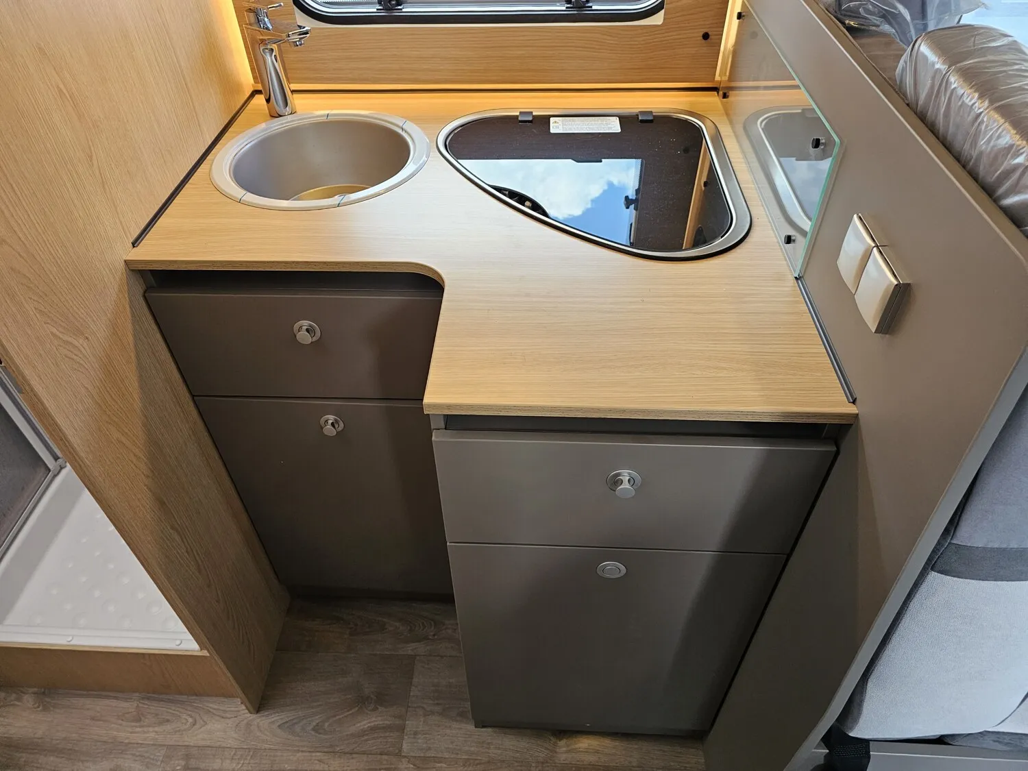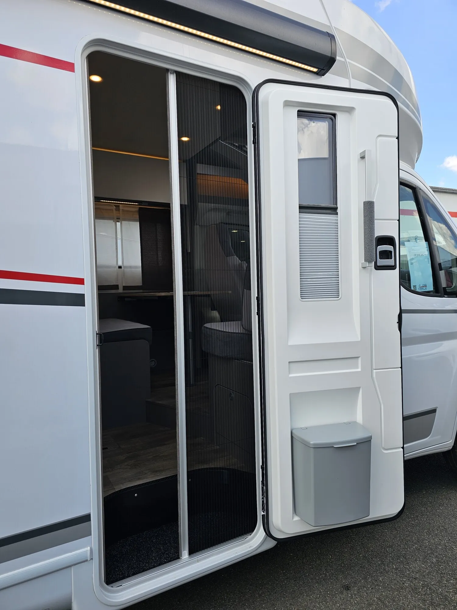 - Tourer Paket (Multifunktionslenkrad mit Bedienelement, Lenkrad und Schaltknauf in Lederausführung, Aluminiumfelgen 16", Fliegenschutztür, Vorbereitung SAT, Klimaanlage, inkl. Dachverstärkung, Vorbereitung Solar, Dachhaube 700 x 500 mm über Sitzgruppe (bei Lift-Modellen über Heckbett), Panoramafenster in T-Haube, Traktion Plus, Beleuchtungsspots im Bodenbereich, Indirekte Beleuchtung Küchenrückwand, Indirekte Beleuchtung oberhalb und unterhalb der Hängeschränke, LED-Leisten im Schlafbereich, Faltrollosystem Fahrerhaus, TV-Platz Vorbereitung (2x 12 V, 1x 230 V Steckdose 1x Cinch AV))