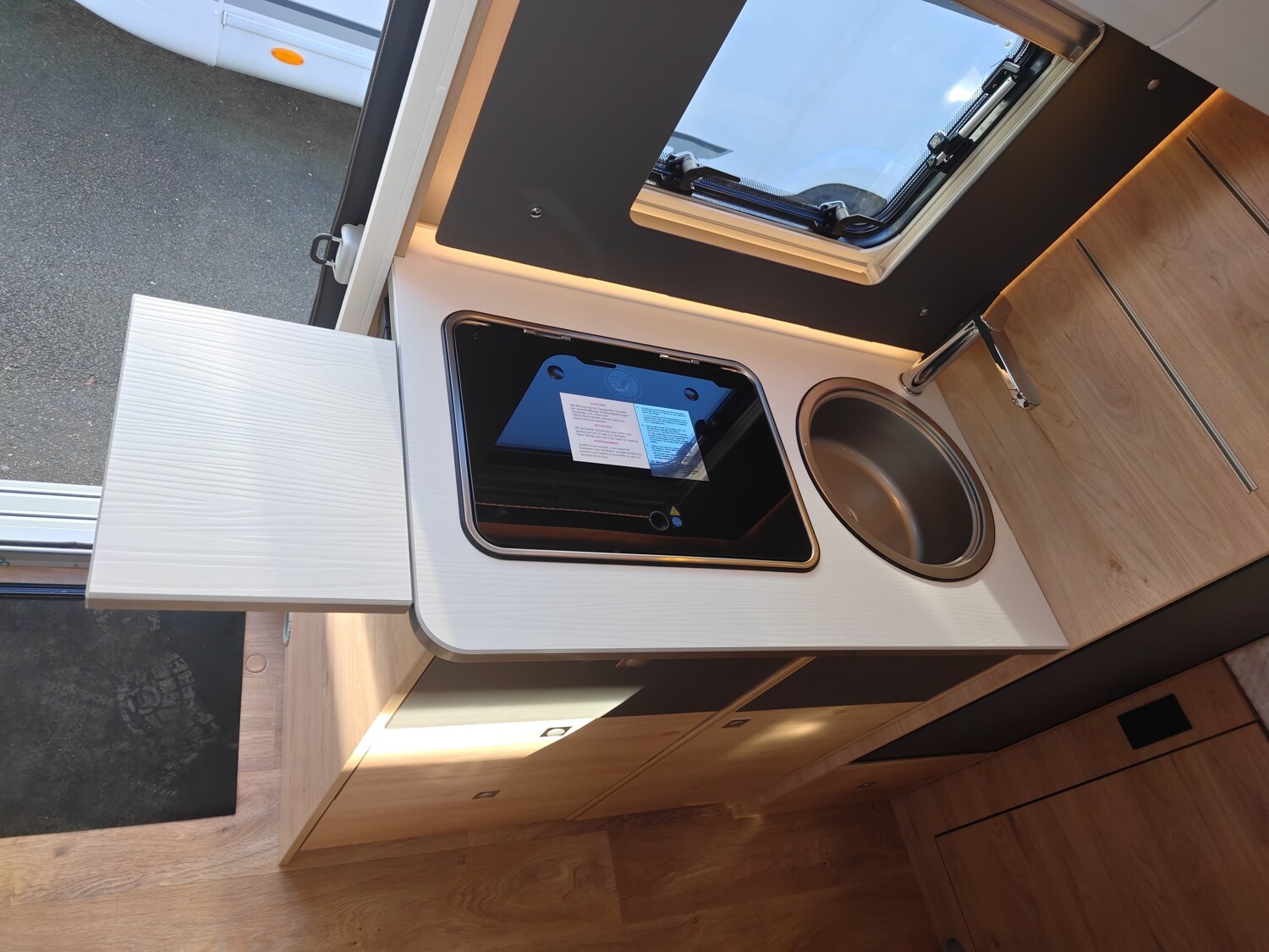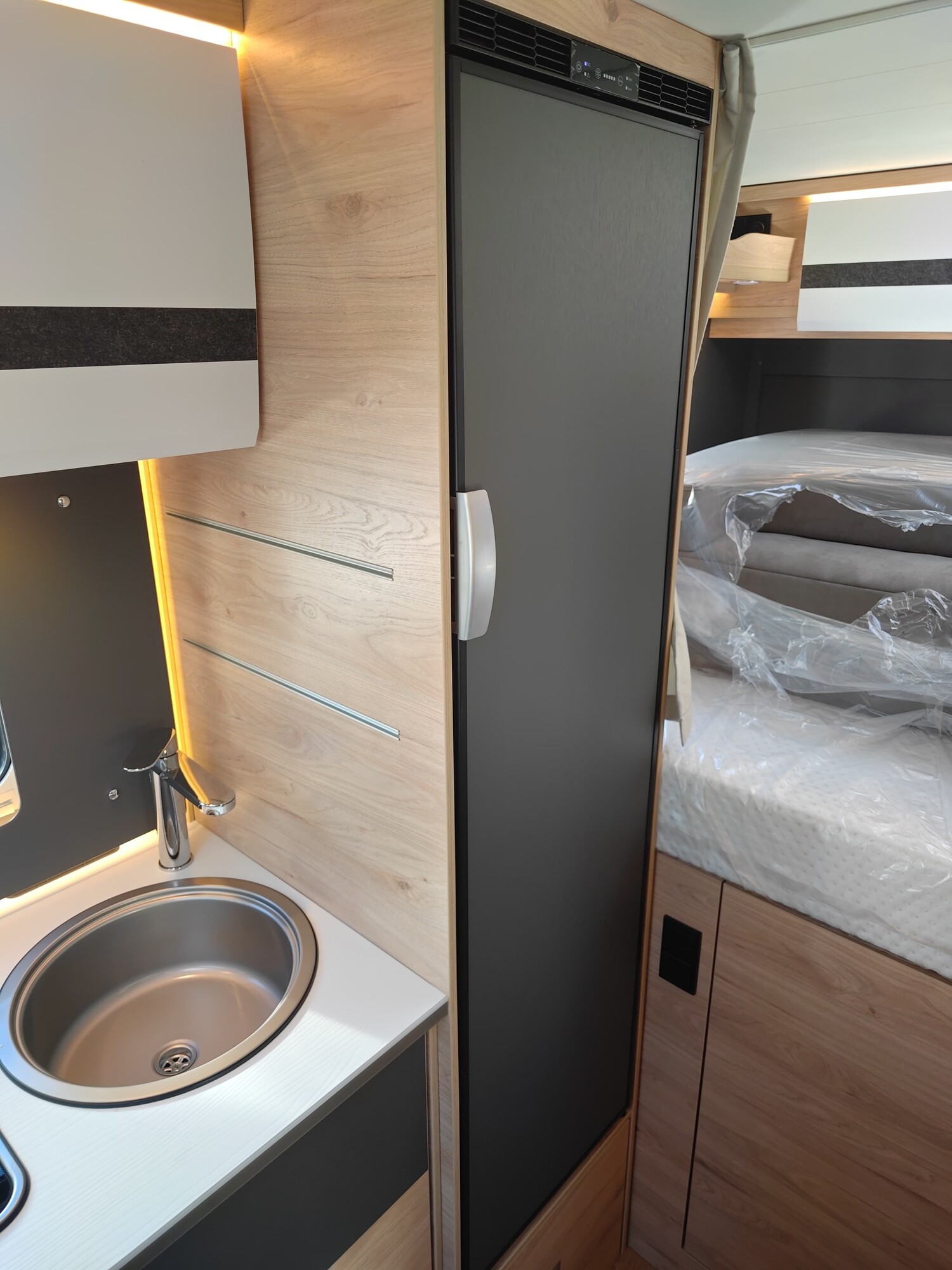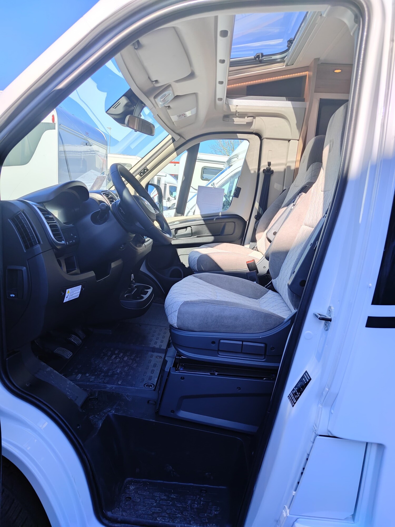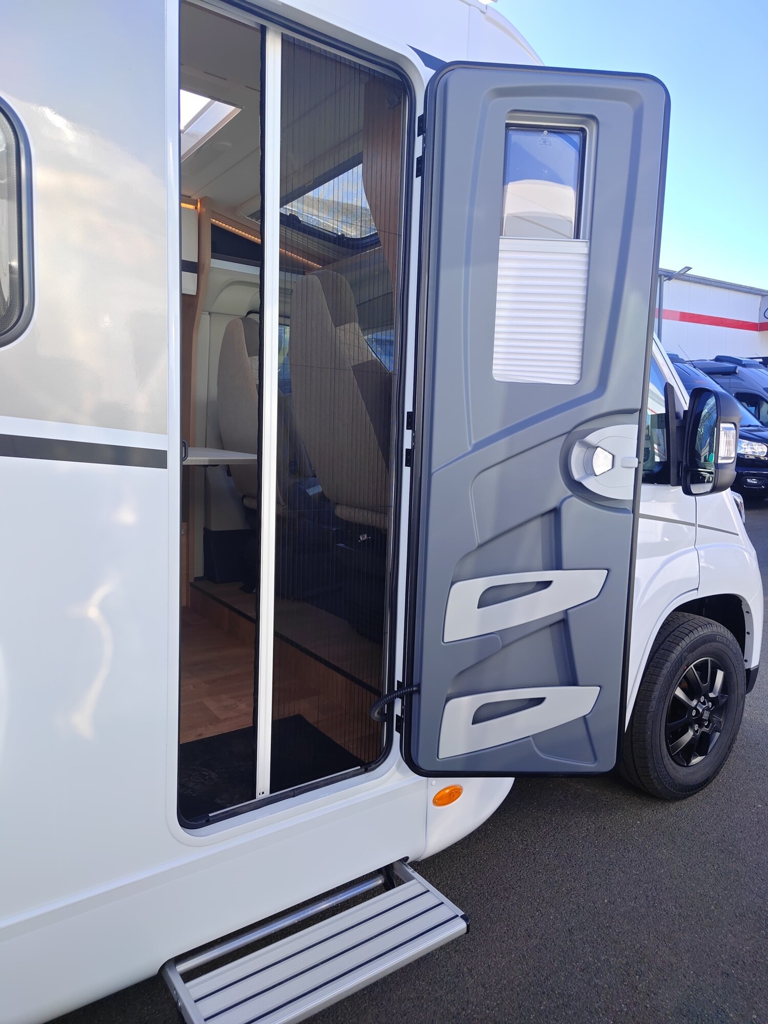 - Active-Paket T1 (Verdunklungsjalousien im Fahrerhaus, Wohnraumtür mit Fenster inkl. Verdunkelung und Zentralverriegelung (inkl. Fahrerhaustür), Panorama-Dachhaube 70 x 50 cm im Wohnraum, Küchenrückwand, Light Moments: Küchenrückwand beleuchtet, Light Moments: Fensterverkleidung im Wohnraum beleuchtet, Light Moments: Indirekte Ambientebeleuchtung über den Dachstauschränken, Light Moments: Indirekte Wandflächen-Ambientebeleuchtung, Fahrerhaus Klimaanlage automatisch, Digitaler Tacho mit 7"-Kombiinstrument und Wireless Phone Charger in der Mittelkonsole, Voll LED Frontscheinwerfer, Elektrische Feststellbremse, Rückfahrkamera (Einfachkamera), Dethleffs Naviceiver inkl. DAB+, Truck Navigation, Wireless Apple CarPlay und Android Auto, Doppelverglaste Rahmenfenster mit Verdunklung & Mückenschutz, Raumhoher Kompressor Kühlschrank mit separatem Frosterfach (131 l), Duschrost, Digitales Bedienelement für Warmluftheizung, Vorbereitung Solar, Vorbereitung Dach-Klimaanlage, Vorbereitung zweite Rückfahrkamera, Vorbereitung SAT-Anlage, Wohnwelt Jupiter, Active Außendesign (Heckleuchtenträger mit schwarzem Diffusor, erweiterte Beklebung, Skidplate "rot"), Sitzgruppe mit Gurtbank inkl. zwei 3-Punkt-Gurten und einhängbarem und erweiterbarem Tisch, Stauraum-Türe links, Dachmarkise Omnistor 3.25 m (manuell), Abwassertank isoliert)