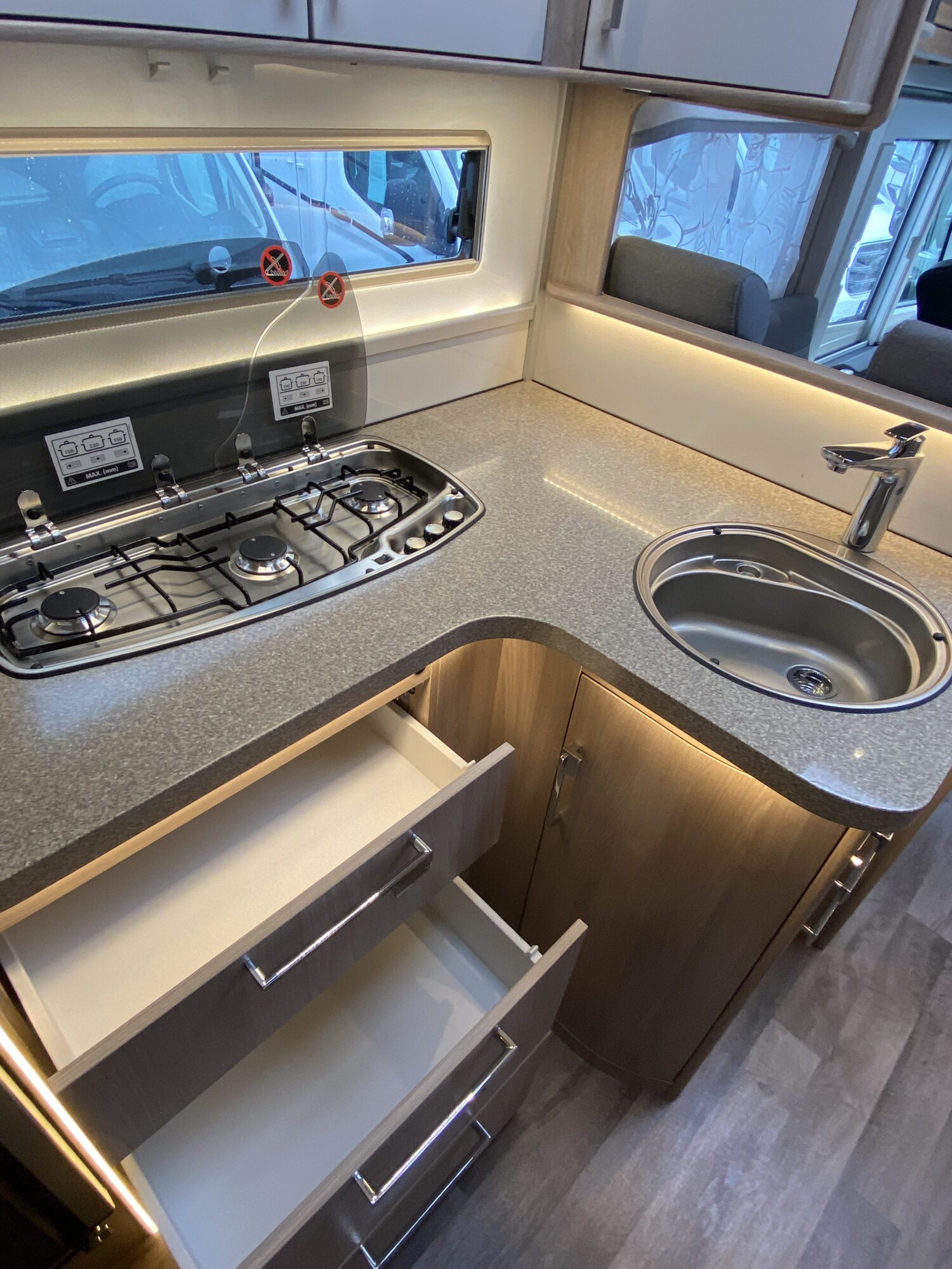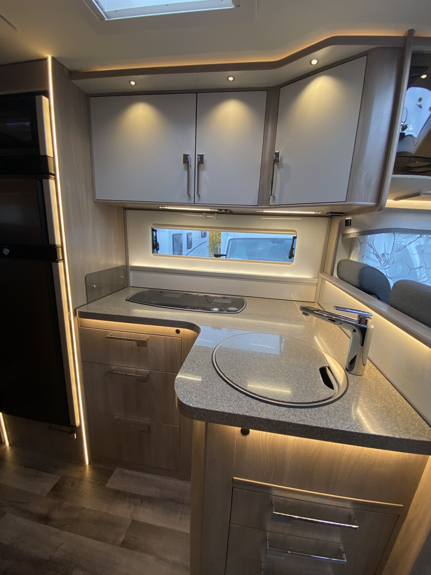 - Highlights Serienausstattung Kabe Imperial 2023 (9-Gang-Automatikgetriebe - 9G-tronic, Mercedes-Benz Motor 170 PS (Frontantrieb), Fahrwerk: AL-KO 5500 kg, Lederlenkrad und Schalthebel mit Lederknauf, Leichtmetallfelgen 16", Nebelscheinwerfer, Norden-Spezifikation (gr. Batterie und Generator, zusätzl. Heizgeräte), Tempmatic Fahrerhaus, Tempomat, Alde Compact 3030 Zentralheizung, Automatische Fußbodenheizung AGS II Pro, Fußboden-Heizschlingen im Fahrerhaus, Klimaanlage im Wohnbereich, Motorheizung, Thermovorhang im Fußbereich, Duschanschluss in der Garage, Ecoprim-Isolierung in Wänden, Fußboden und Dach, Ferngesteuerte Zentralverriegelung, auch für die Aufbautür, Zentralverriegelung aller äußeren Klappen, Hydraulische Stützen - HY4, Beheizter Grauwassertank - 90 Liter, Dunstabzug, Einbau-Backofen, Elektro-Paket (Solarzellen, Wechselrichter, 2 Batterien), Service-Center mit Bedientafel zur Steuerung aller Funktionen - Smart D, MBUX (einschl. Rückfahrkamera), Premium Sound System mit DAB+, Crash-Sensor für das Gassystem, Einbruchalarm mit Umgebungsschutz - Defa, Elektrische Verriegelung der Küchenschublade, KABE Smart Level (Anzeige für Gasfüllstand, Reifendruck und Fahrzeugneigung) und noch vieles mehr!))