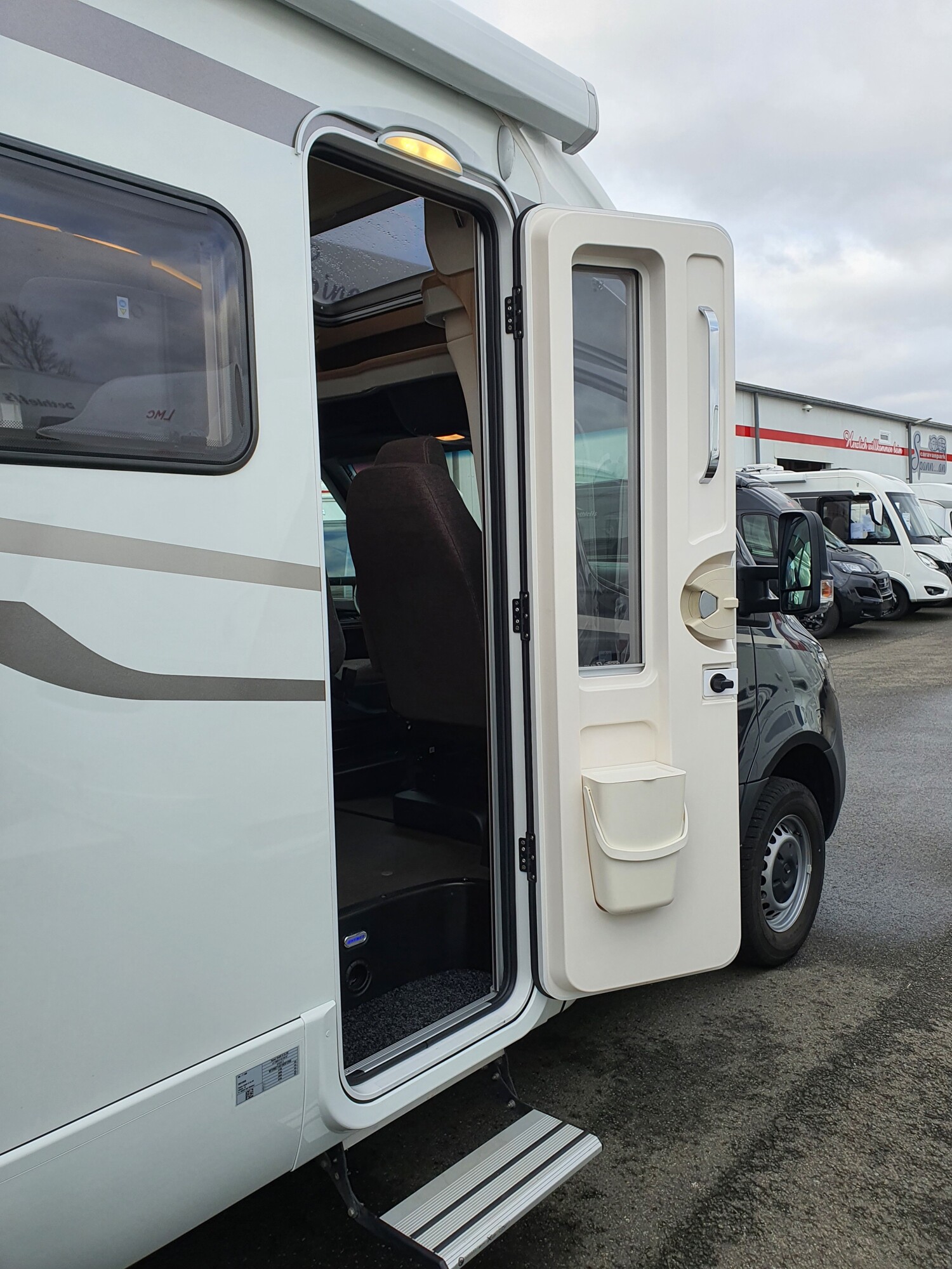 - Aufbautür inkl. Sicherheitsschloss mit einer elektrischen Trittstufe, einer Fliegenschutztür, einem Fenster inkl. Verdunkelungsplissee, einem Mülleimer und einer Außenleuchte