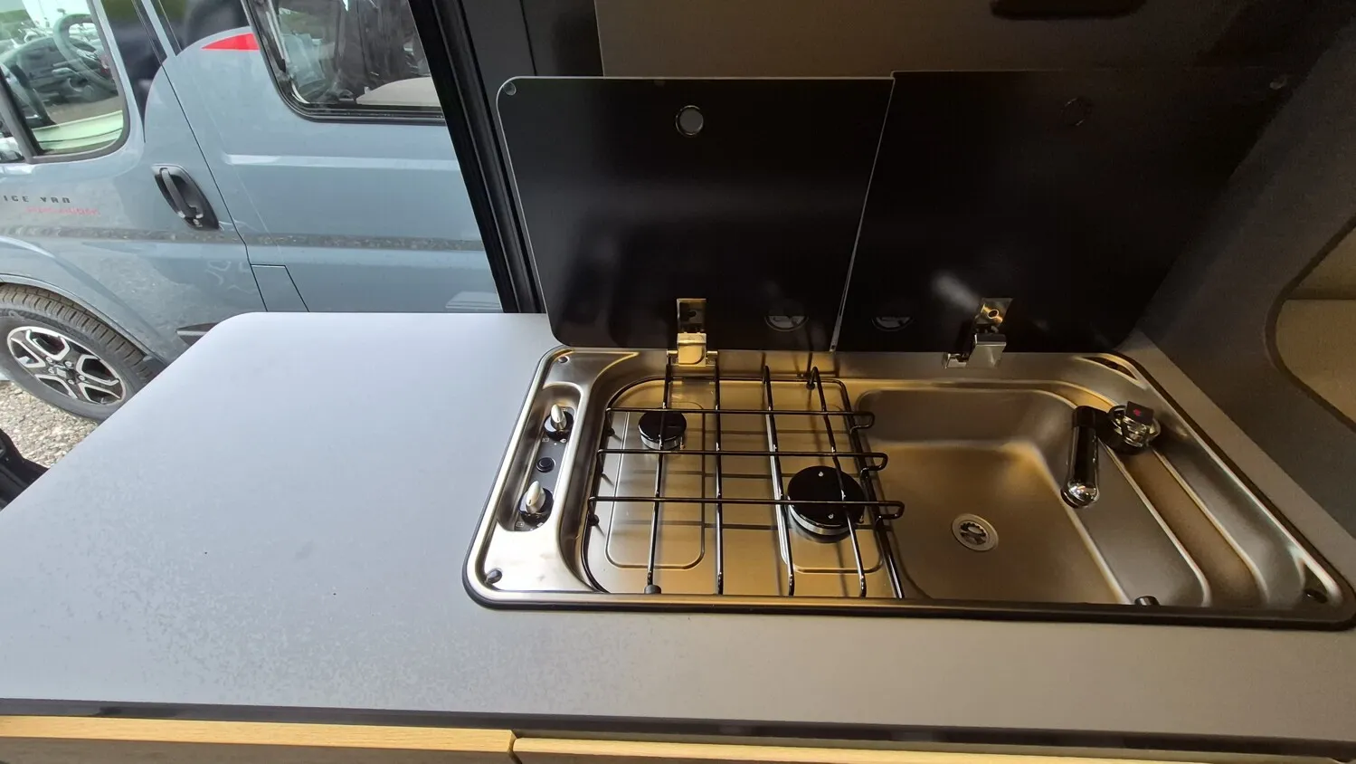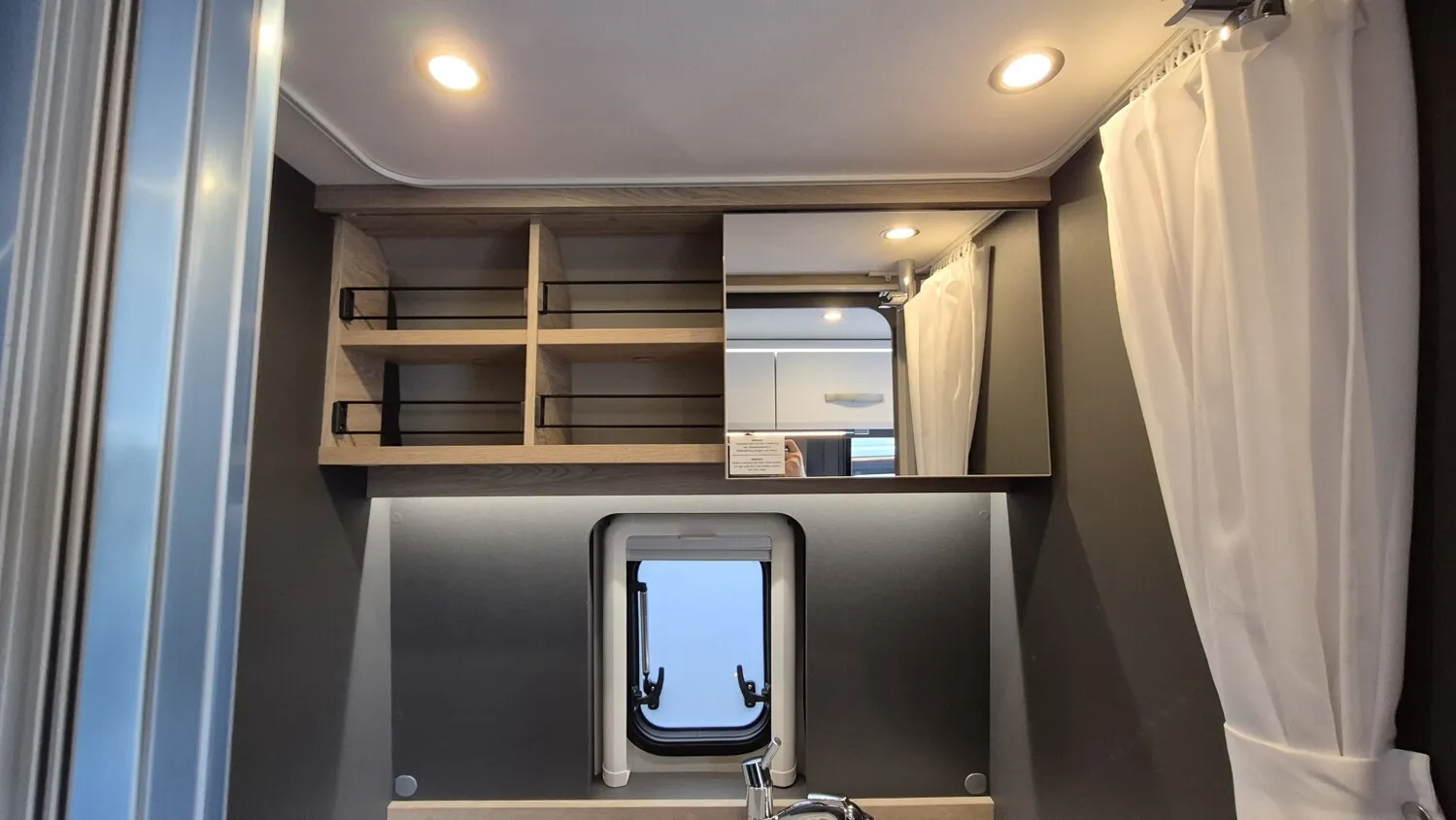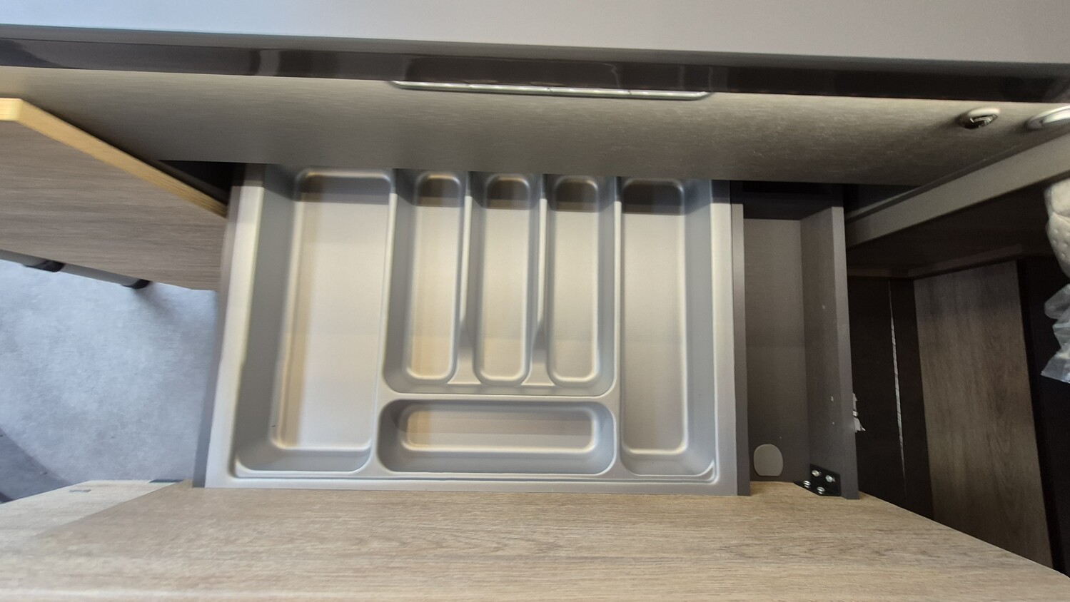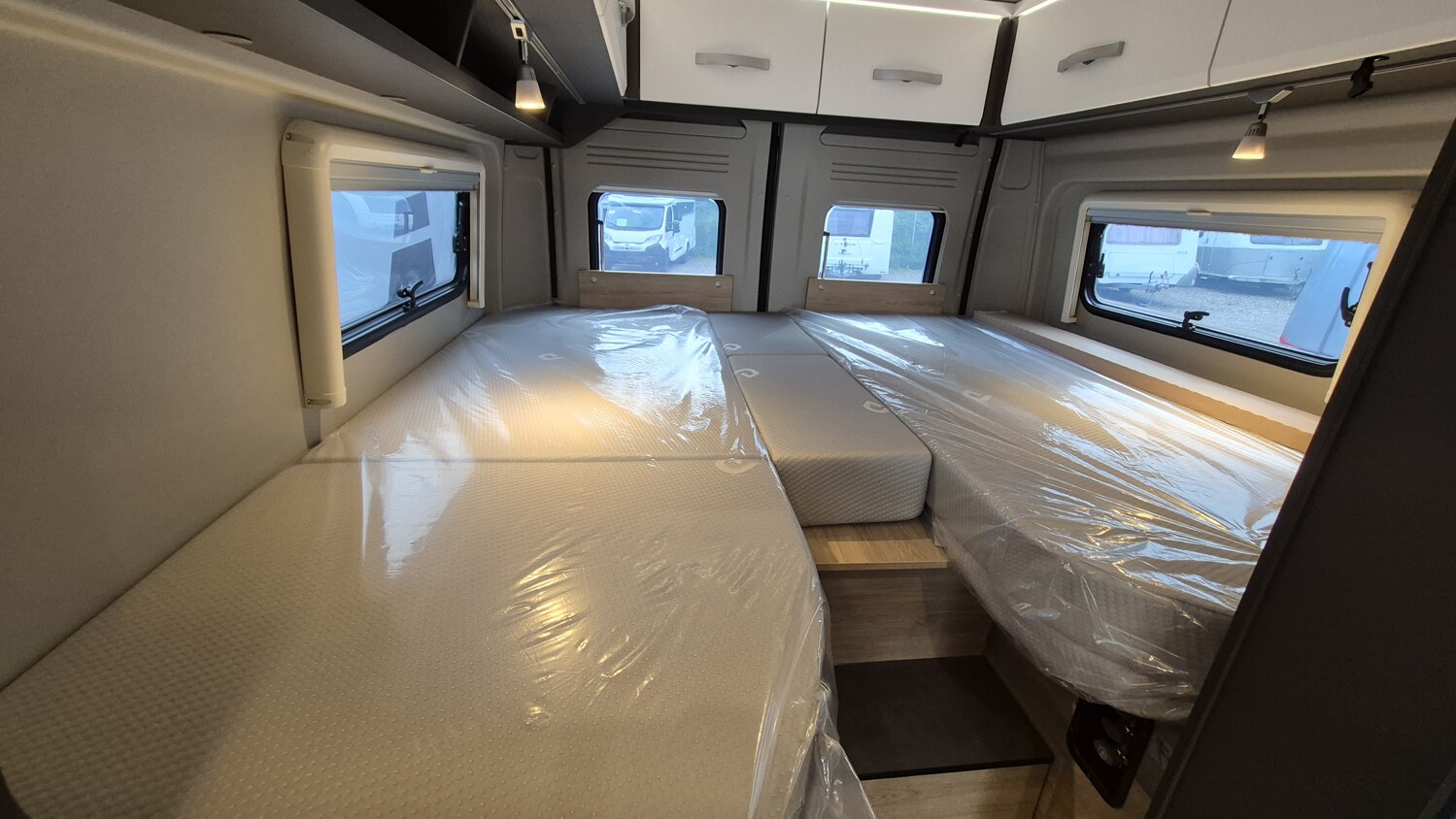 - Elektro Paket (Zusätzliche Doppel-USB-Steckdose im Bug links, 12-V-Steckdose im Heckbereich links unten, 230-V-Steckdose im Oberschrank Bug links (Sitzgruppe), Indirekte Beleuchtung, LED-Lichtröhre in der Küche, Vorbereitung Solarmodule)