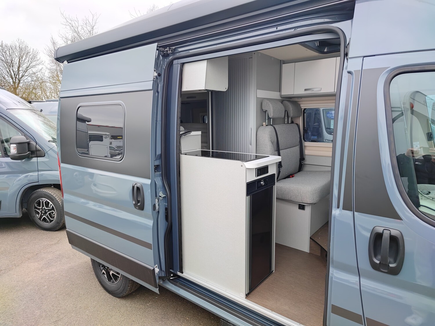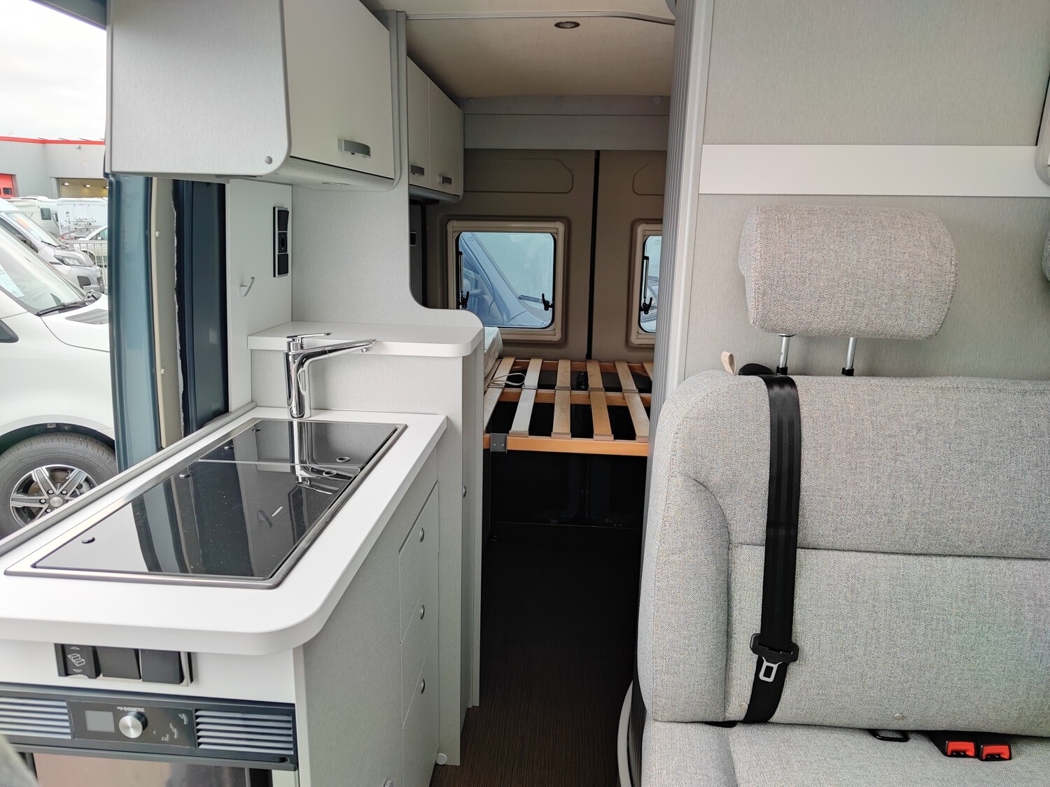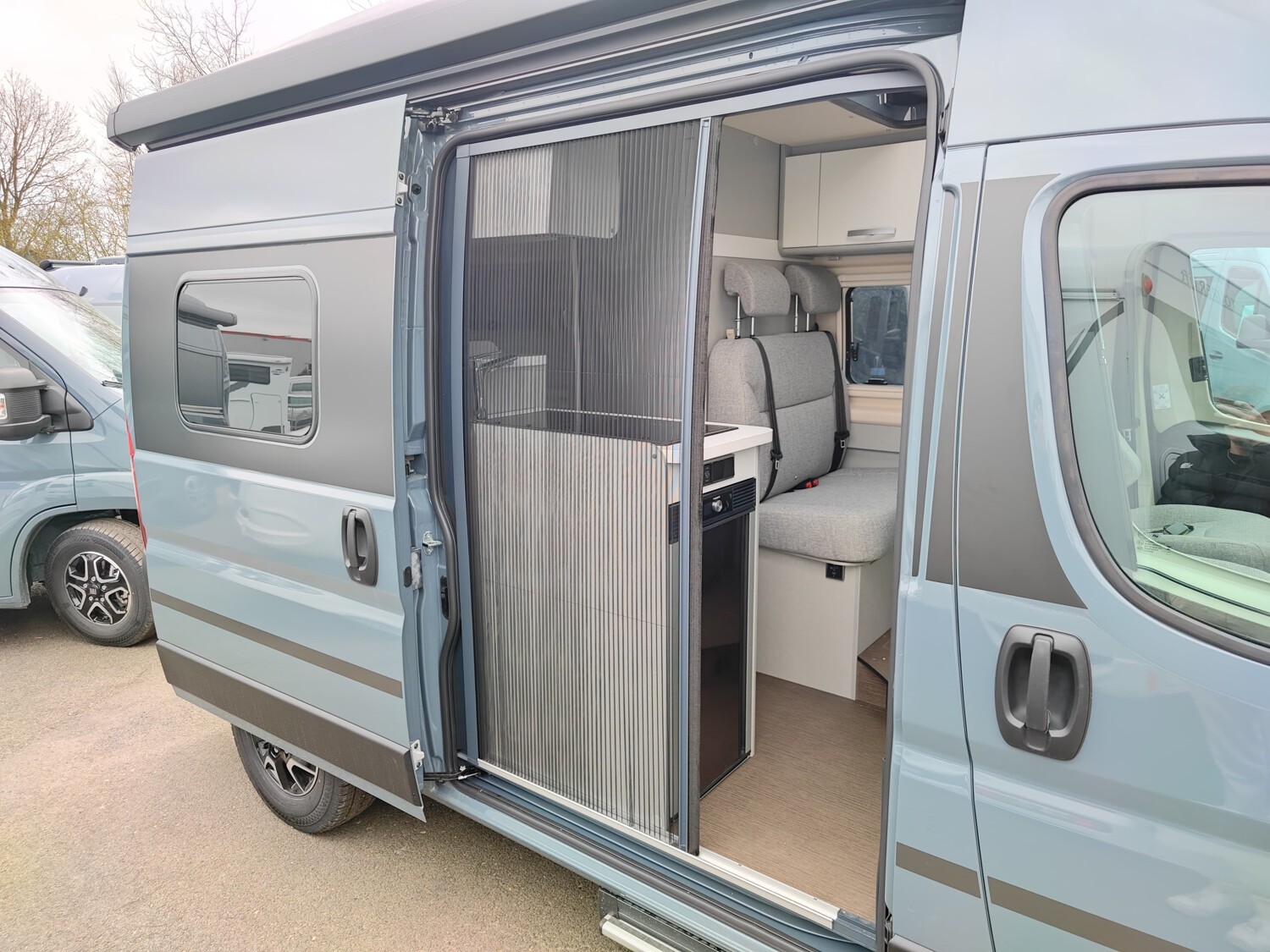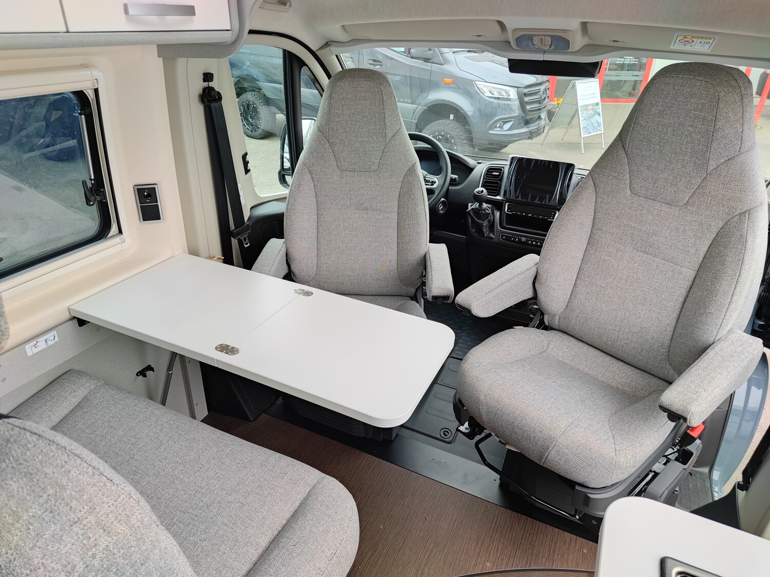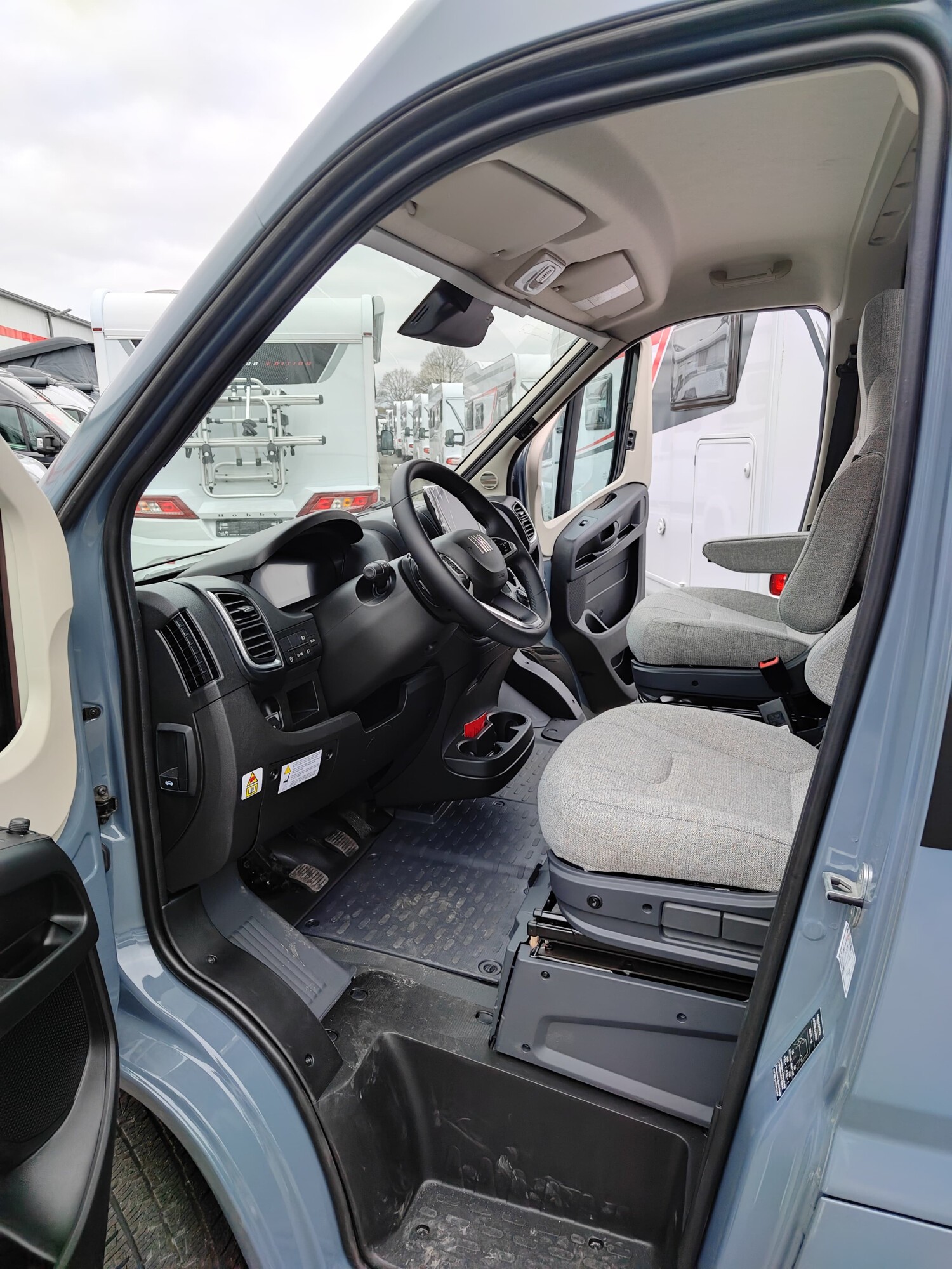 - Campus Edition 540 2025 (Pastell Lanzarote Grau, Elektrische Parkbremse, Nebelscheinwerfer inkl. Abbiegelicht, SKID-PLATE Schwarz Glanz, Stoßfänger in Wagenfarbe lackiert, Automatische Klimaanlage mit Pollenfilter, Volldigitales Cockpit mit integriertem 7" Display, Fiat Infotainmentsystem mit 10" Touchscreen, integriertem Navigationssystem, DAB+, Apple Car Play, Google Android Auto inkl. Rückfahrkamera und Multifunktionslenkrad, Lenkrad und Schaltknauf in Leder, Armaturentafel mit alufarbenen Applikationen, DAB Radio- und Audiovorbereitung inkl. Hecklautsprecher, Aufstelldach in Wagenfarbe Maxi-Doppelbett mit Dachhaube und elektrischer Verriegelung, Markise mit Spezialadapter für das Aufstelldach, Gehäuse anthrazit, 315 x 250 cm, Ausstellfenster im Heck in Fahrtrichtung links inkl. Verdunkelungsrollo und Mückenschutz, Designbeklebung Fenster Füllung Schwarz matt vollflächige Folierung im Bereich der Fenster Seitenwand links und rechts, ISOFIX - Kindersitzbefestigung für Wohnraumsitzbank, Faltverdunkelung für Fahrerhaus)