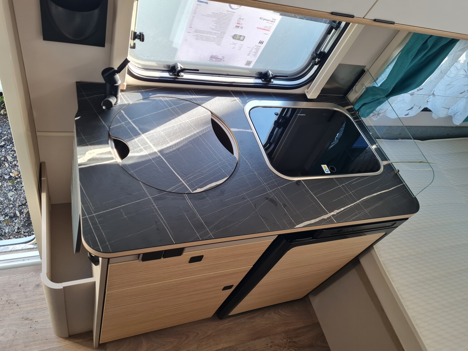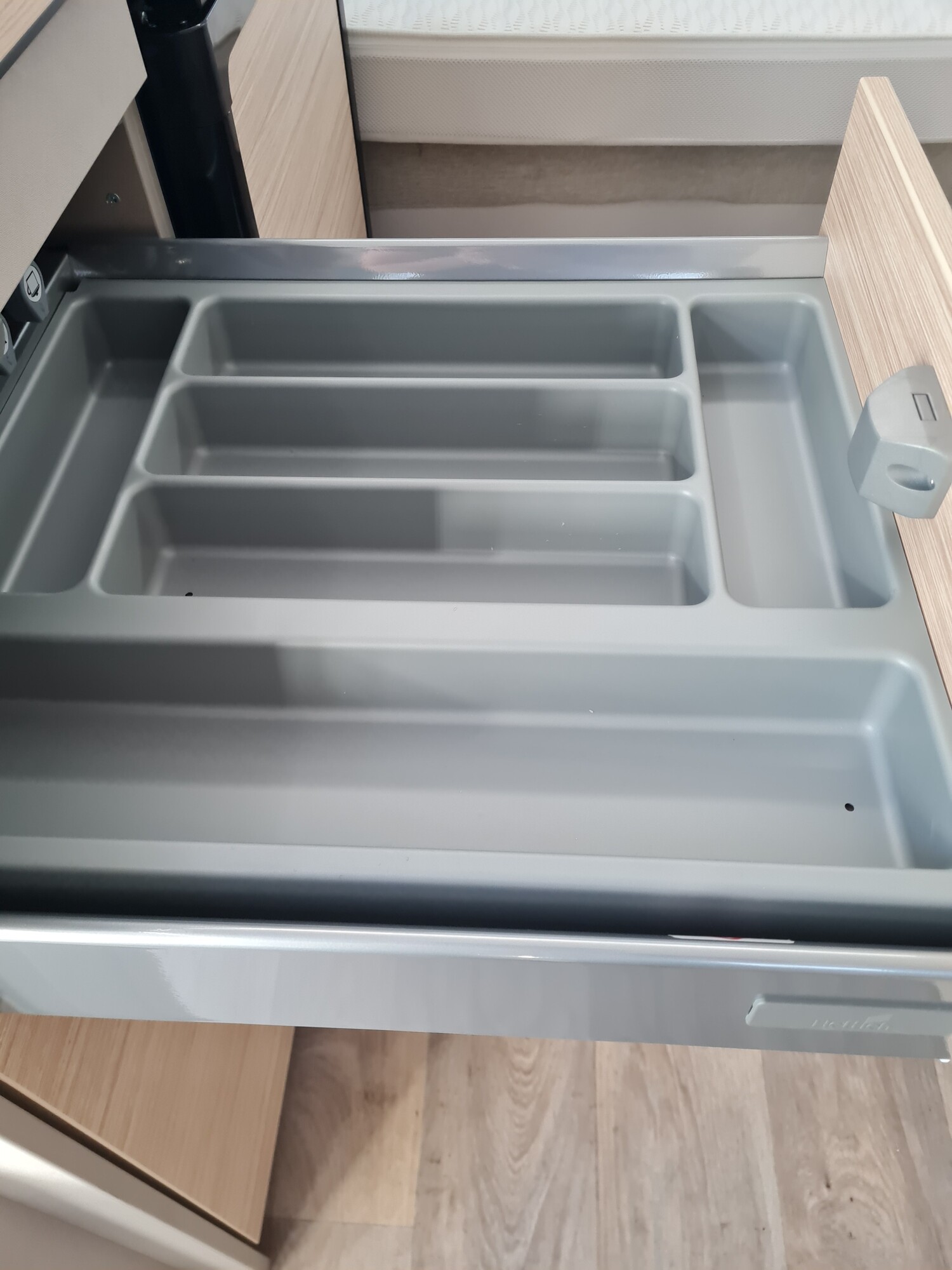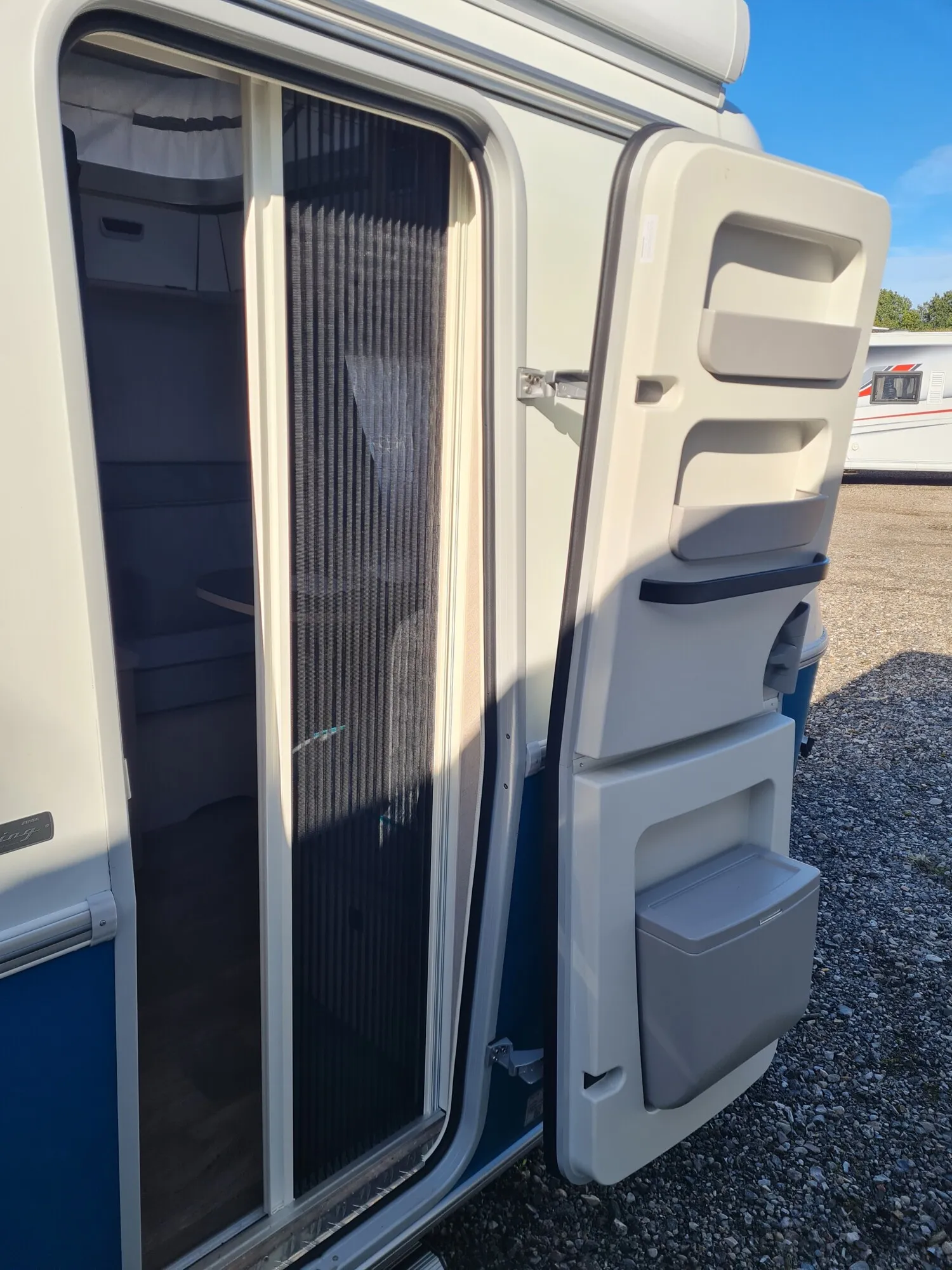 - Komfort-Paket (Fliegenschutz-Rolltür (gesamte Türhöhe), bedienfreundlich durch seitliche Führung, Komfort-Plissee-Rollos, Steckdosenpaket (2 x 230 V Steckdosen und 1 x USB-Doppelsteckdose), Abfalleimer in Eingangstür integriert, Spülenabdeckung mit Schneidebrett für Edelstahlspüle, Zusätzlicher Vergrößerungsspiegel mit Magnethalterung)