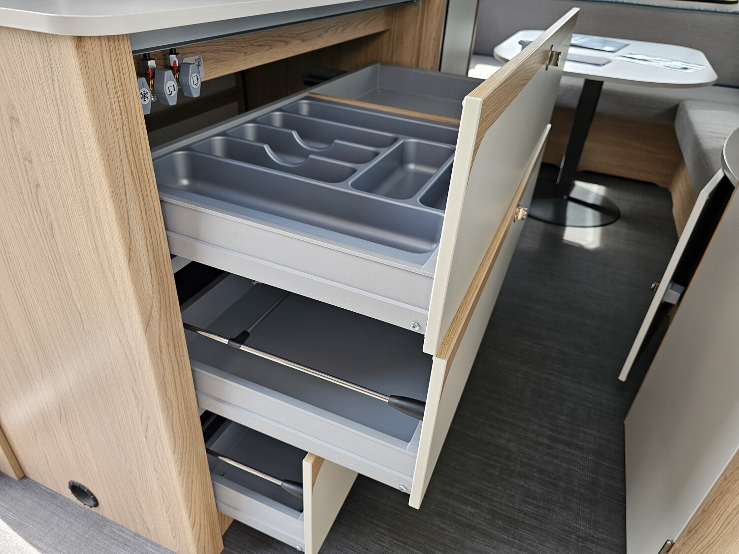 - Styling-Paket weiß (Außenblech in Glattblech weiß, 17" Alufelgen im Dethleffs-Design (Einachser), Deichselabdeckung, Stabilformstützen inkl. großflächige Abstützfüße, Vollgummi-Stützrad mit Stützlastanzeige)