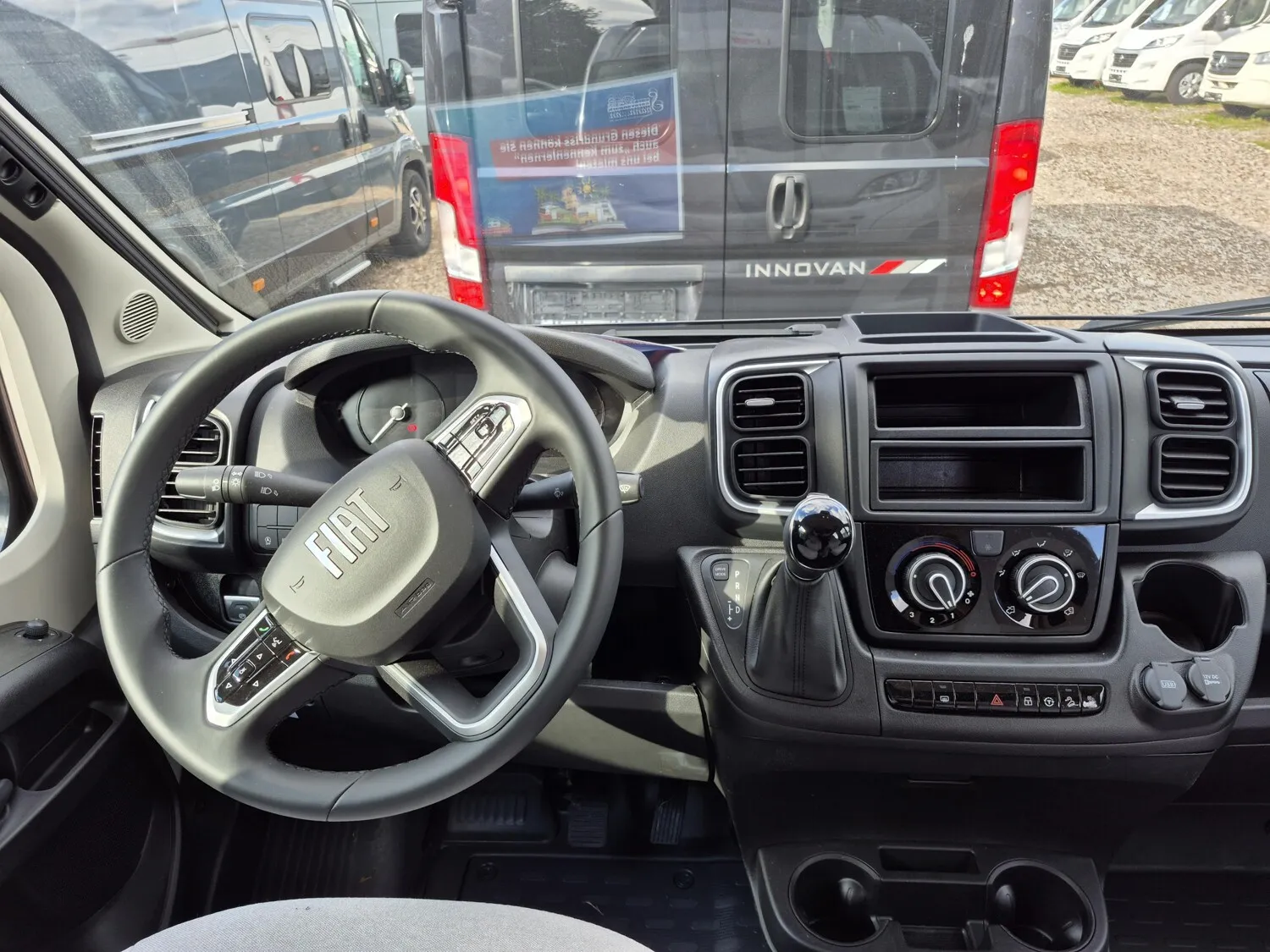 - Innovan Fiat Paket (Breite Einstiegsstufe (Elektrisch), Markise Anthrazit, Rückfahrkamera in 3ter Bremsleuchte, Duschwanneneinlage aus Holz, Dachhaube Klarglas 700x5000mm inkl. Verdunklungsrollo und Insektenschutz über der Sitzgruppe, Duschausstattung (Brausekopf ausziehbar, Duschvorhang, Führungsschiene, Brausehalter, Duschwanne), Fahrerhausverdunklung (Plissees), Insektenschutztür, Drehplatte für Tischerweiterung, TV-Vorbereitung, Mittelsitzgruppe umbaubar zum Bett mit Zusatzpolster, Klappbare Wäschestange im Toilettenraum/Dusche, Abwassertank isoliert und manuell elektrisch beheizt, Ausstellfenster Bad (Milchglas) inkl. Verdunklungsrollo und Insektenschutz)