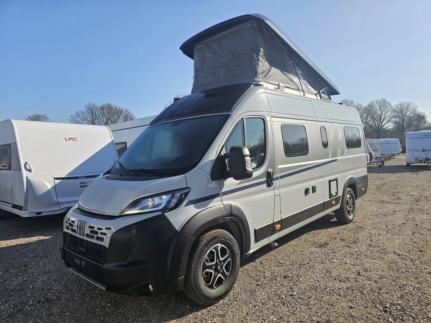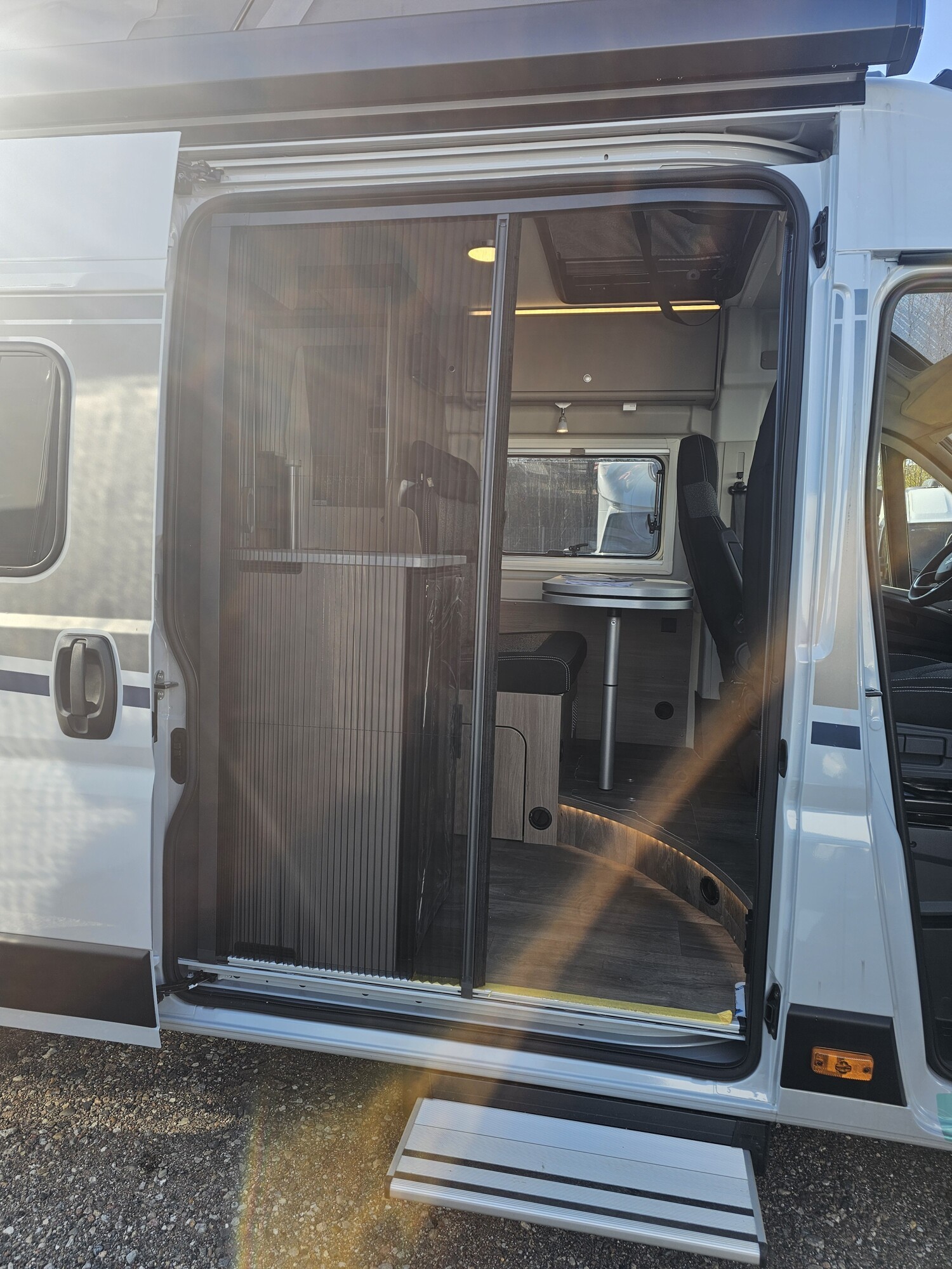 - pro+ Paket CV640+ Modell 2025 (Optik Paket 1 (Stoßfänger lackiert, Skid-plate glänzend Schwarz, Nebelscheinwerfer) // Optik Paket 2 (Lenkrad & Schaltknauf in Lederausführung, Armaturentafel mit Applikationen (Techno-Trim), 16" Alufelgen Bi-Color)// Dieseltank 90 l // Basic Paket (Dachhaube Midi- Heki 70 x 50 cm über Sitzgruppe, Duschausstattung (Brausekopf ausziehbar, Duschvorhang, Führungsschiene, Brausehalter), Fenster im Bad, Kleiderstange in der Nasszelle, Breite Einstiegsstufe, Drehplatte für Tischerweiterung an der Sitzgruppe) // Faltverdunkelung Fahrerhaus // Rahmenfenster // Markise 4 m (schwarz) // Beklebung pro+ // LED-Beleuchtung integriert über den Dachschränken // Panoramafenster über Fahrer- und Beifahrersitz // Heckdachstauschrank umlaufend)
