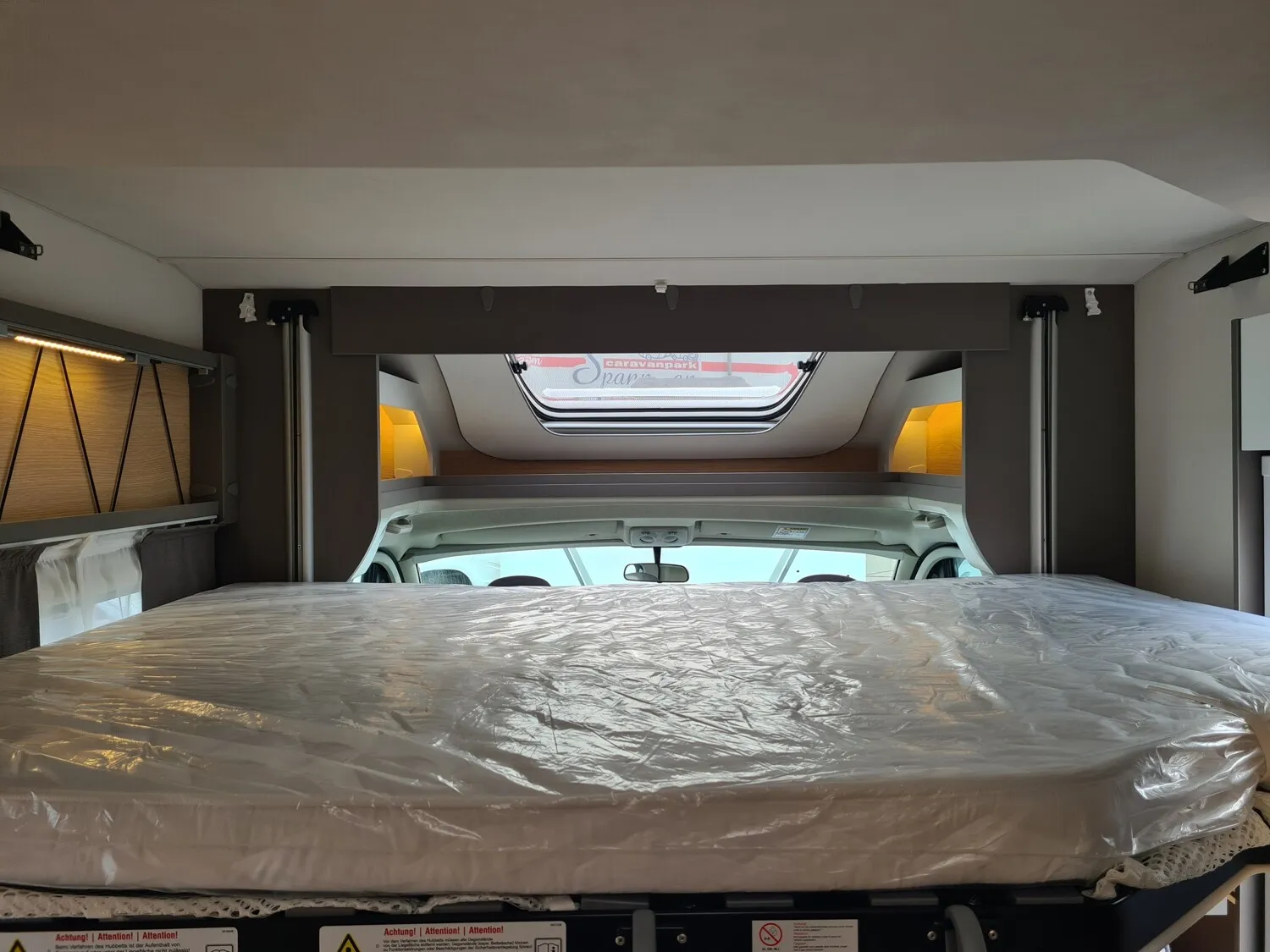 - Tourer Paket (Multifunktionslenkrad mit Bedienelement, Lenkrad und Schaltknauf in Lederausführung, Aluminiumfelgen 16", Fliegenschutztür, Vorbereitung SAT, Klimaanlage, inkl. Dachverstärkung, Vorbereitung Solar, Dachhaube 700 x 500 mm über Sitzgruppe (bei Lift-Modellen über Heckbett), Panoramafenster in T-Haube, Traktion Plus, Beleuchtungsspots im Bodenbereich, Indirekte Beleuchtung Küchenrückwand, Indirekte Beleuchtung oberhalb und unterhalb der Hängeschränke, LED-Leisten im Schlafbereich, Faltrollosystem Fahrerhaus, TV-Platz Vorbereitung (2x 12 V, 1x 230 V Steckdose 1x Cinch AV))