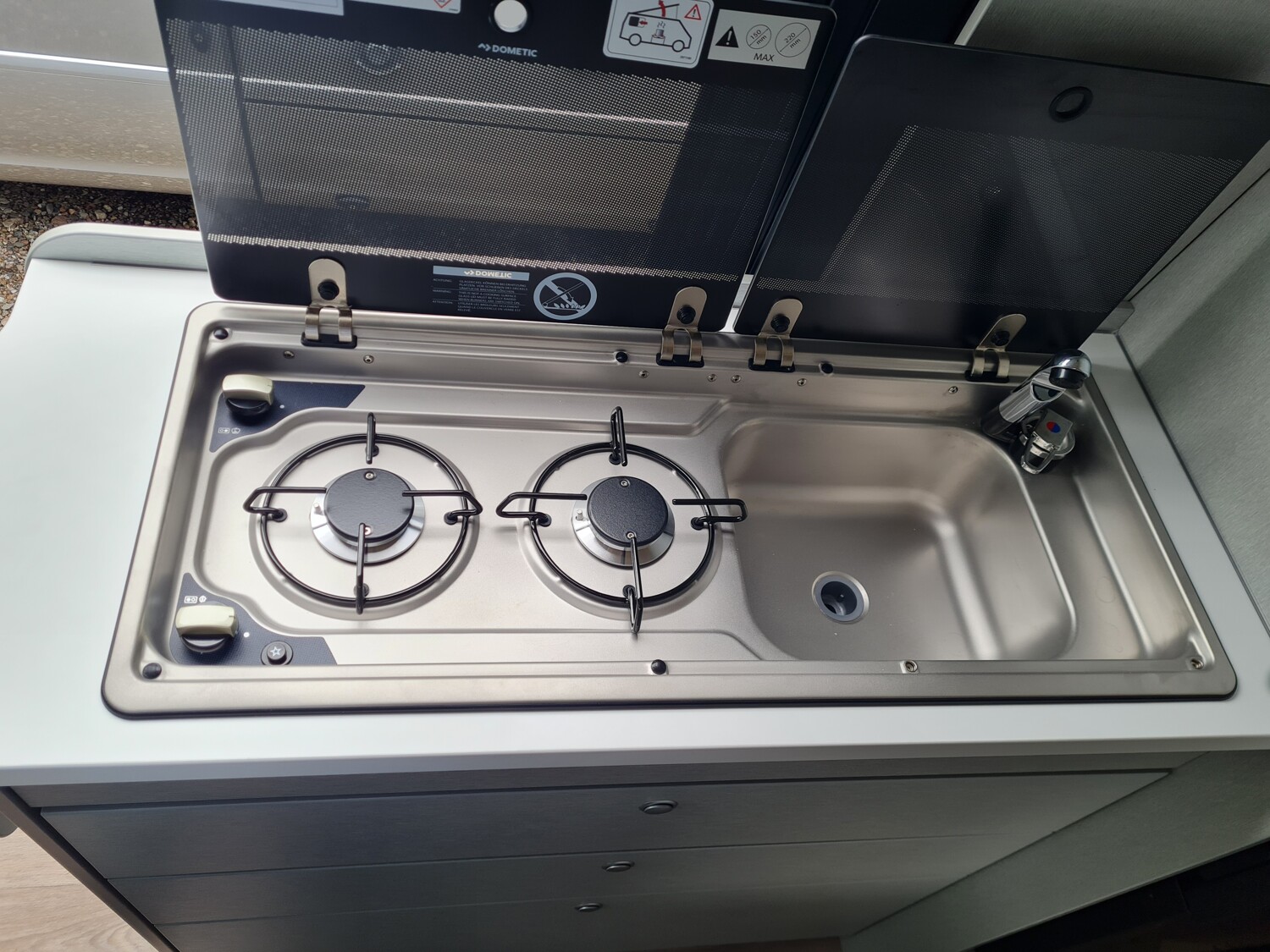 - Ausstellfenster im Heck in Fahrtrichtung links inkl. Verdunkelungsrollo und Mückenschutz