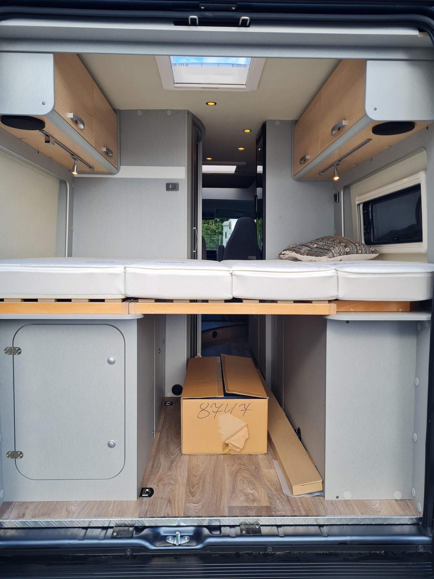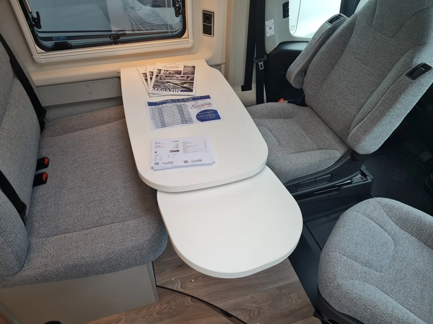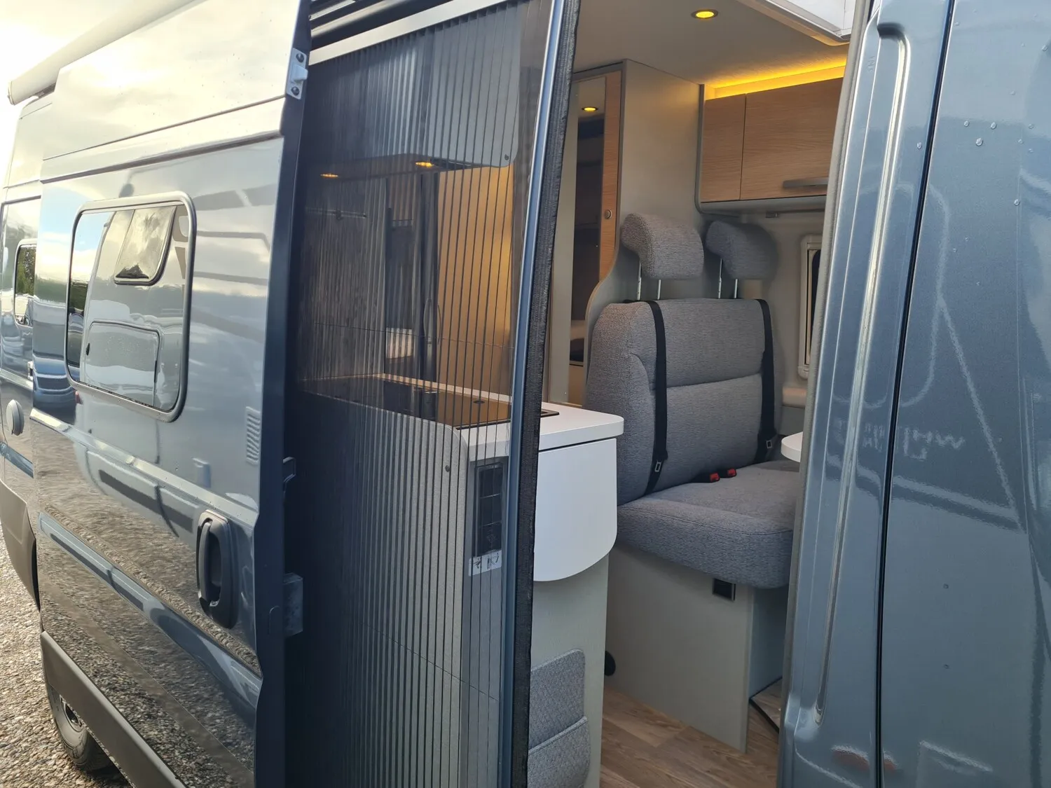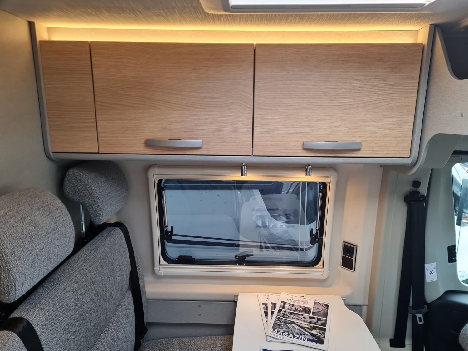 - Ausstellfenster im Heck in Fahrtrichtung rechts inkl. Vedunkelungsrollo und Mückenschutz