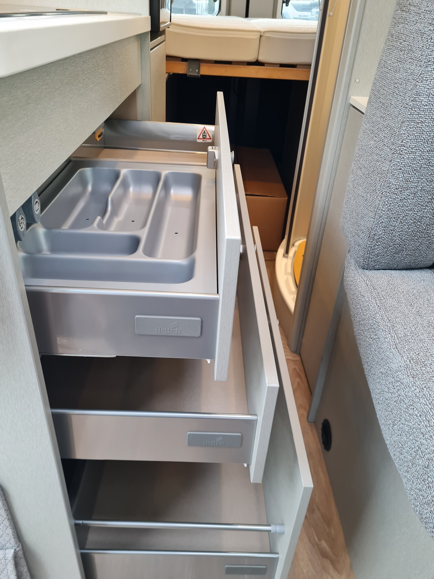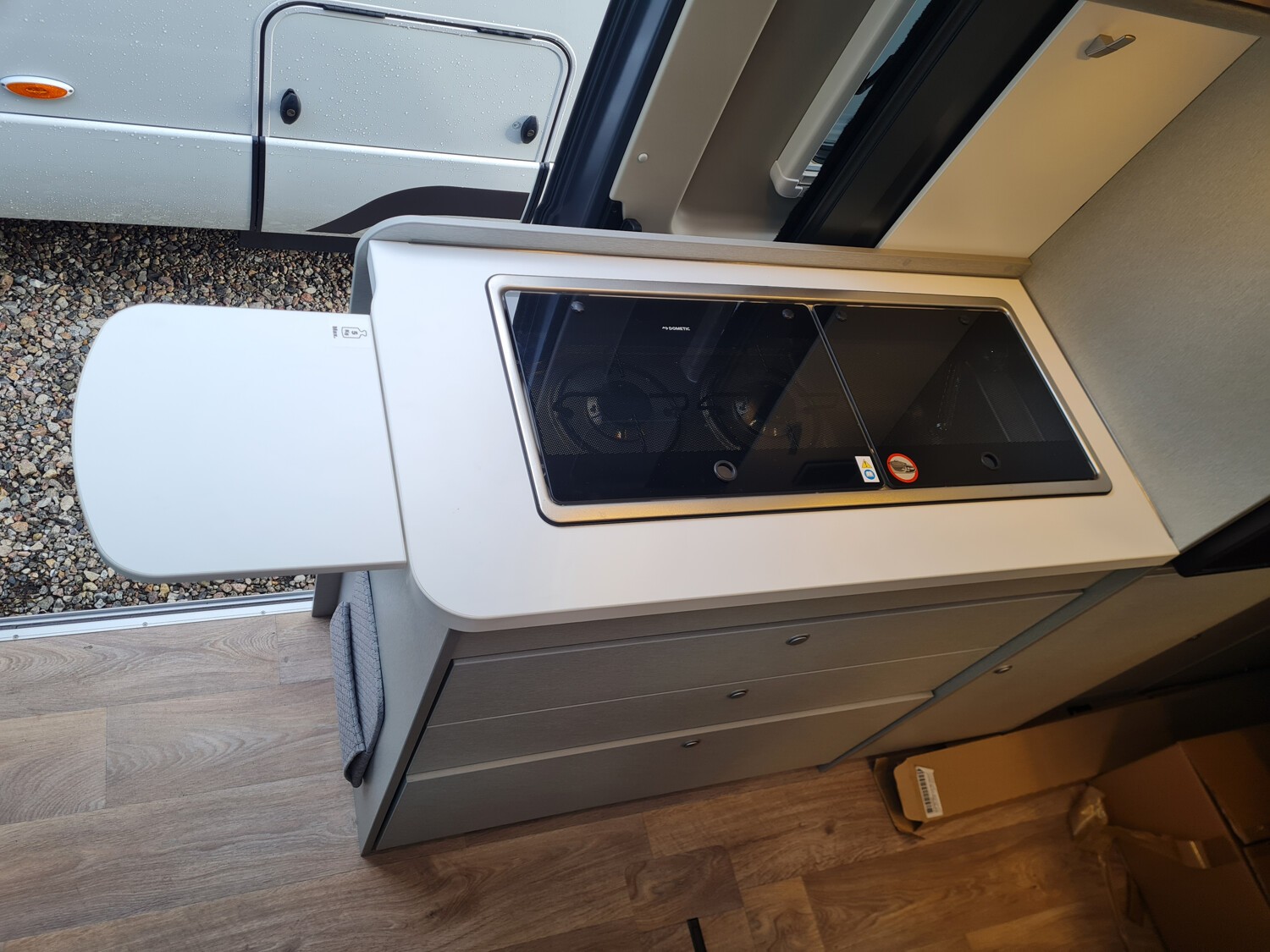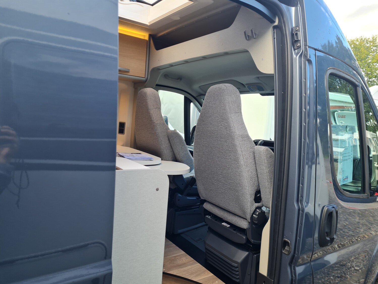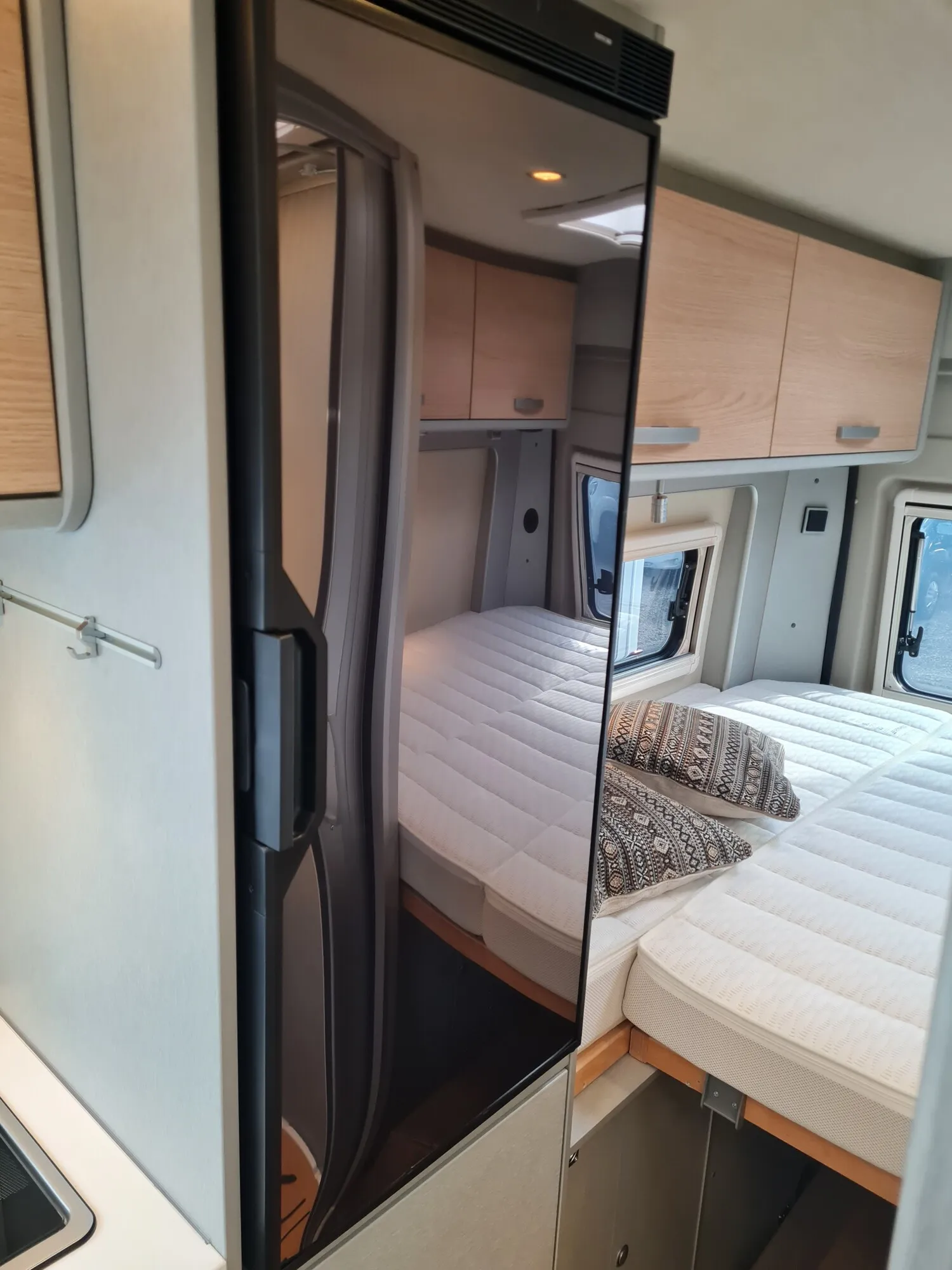 - Ausstellfenster im Heck in Fahrtrichtung rechts inkl. Vedunkelungsrollo und Mückenschutz