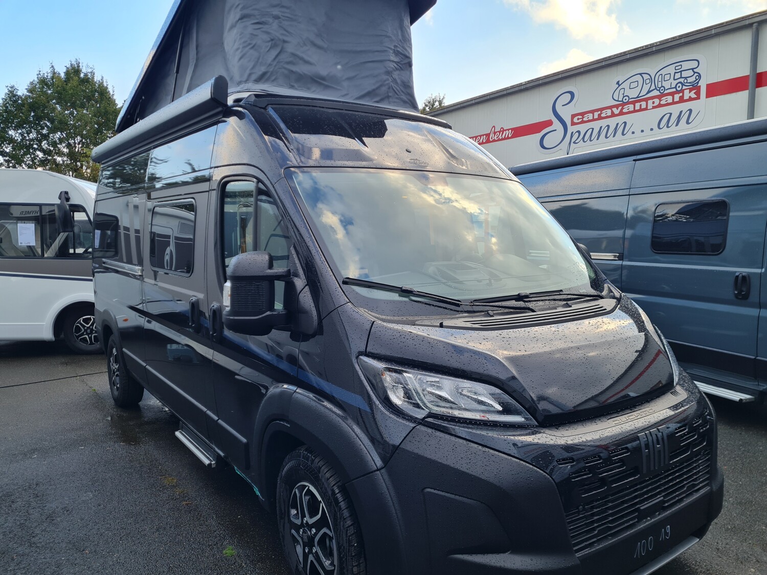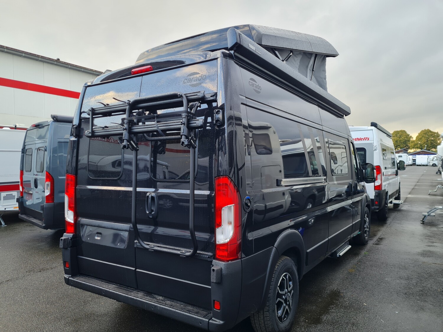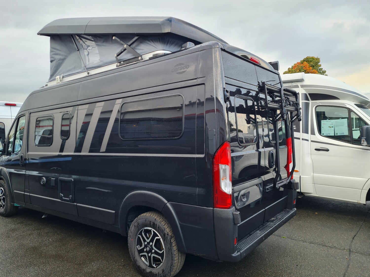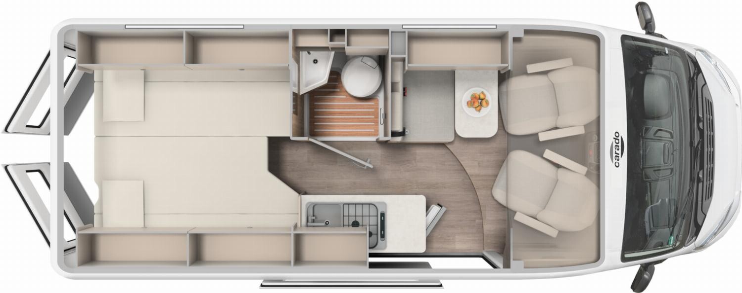 - Carado 2025 Ausstattungshighlights des pro Paket CV600 & CV601 & CV602 (Fiat Ducato 3.500 kg - 2.2 Multijet - 103 kW / 140 PS Euro 6 // Optik Paket 1: Stoßfänger lackiert, Skid-plate glänzend Schwarz, Nebelscheinwerfer // Optik Paket 2: Lenkrad & Schaltknauf in Lederausführung, Armaturentafel mit Applikationen (Techno-Trim), 16" Alufelgen Bi-Color // Dieseltank 90 l // Basic Paket: Dachhaube Midi- Heki 70 x 50 cm über Sitzgruppe, Duschausstattung (Brausekopf ausziehbar, Duschvorhang, Führungsschiene, Brausehalter), Fenster im Bad, Kleiderstange in der Nasszelle, Breite Einstiegsstufe, Drehplatte für Tischerweiterung an der Sitzgruppe // Faltverdunkelung Fahrerhaus // Markise 3,75 m (schwarz) // Beklebung pro)
