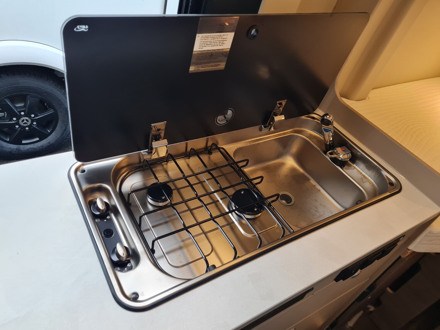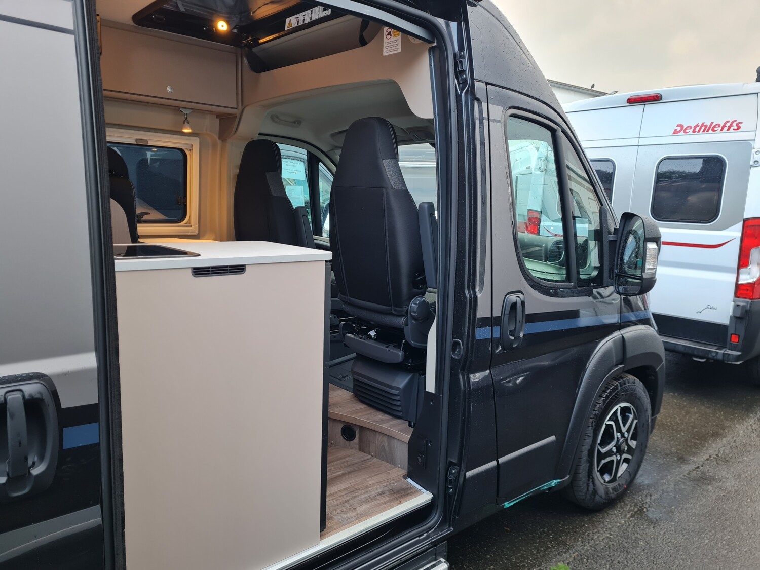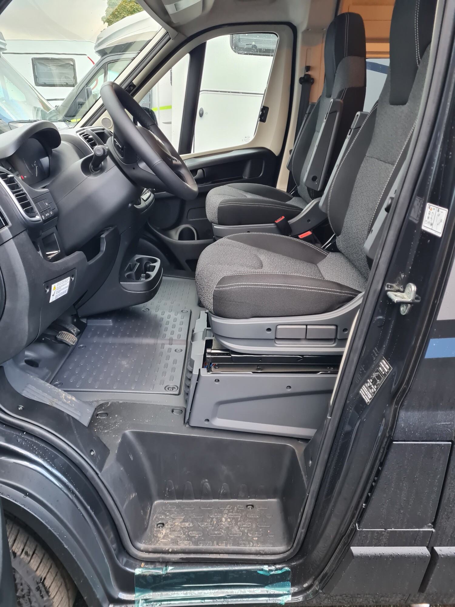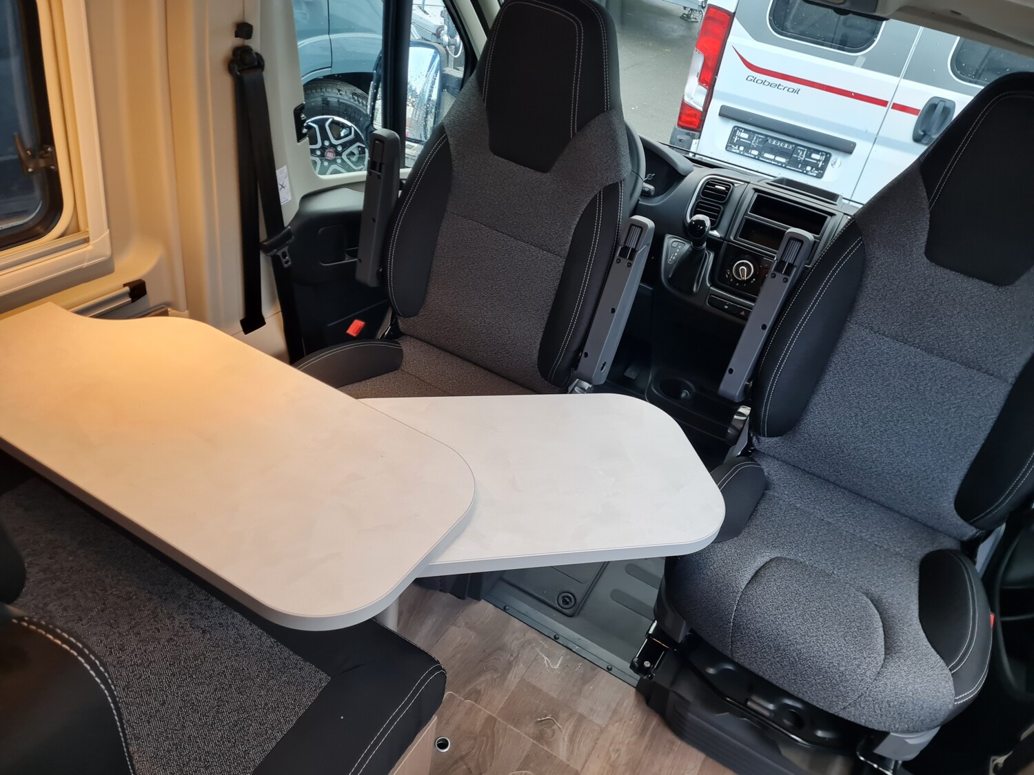 - Carado 2025 Ausstattungshighlights des pro Paket CV600 & CV601 & CV602 (Fiat Ducato 3.500 kg - 2.2 Multijet - 103 kW / 140 PS Euro 6 // Optik Paket 1: Stoßfänger lackiert, Skid-plate glänzend Schwarz, Nebelscheinwerfer // Optik Paket 2: Lenkrad & Schaltknauf in Lederausführung, Armaturentafel mit Applikationen (Techno-Trim), 16" Alufelgen Bi-Color // Dieseltank 90 l // Basic Paket: Dachhaube Midi- Heki 70 x 50 cm über Sitzgruppe, Duschausstattung (Brausekopf ausziehbar, Duschvorhang, Führungsschiene, Brausehalter), Fenster im Bad, Kleiderstange in der Nasszelle, Breite Einstiegsstufe, Drehplatte für Tischerweiterung an der Sitzgruppe // Faltverdunkelung Fahrerhaus // Markise 3,75 m (schwarz) // Beklebung pro)