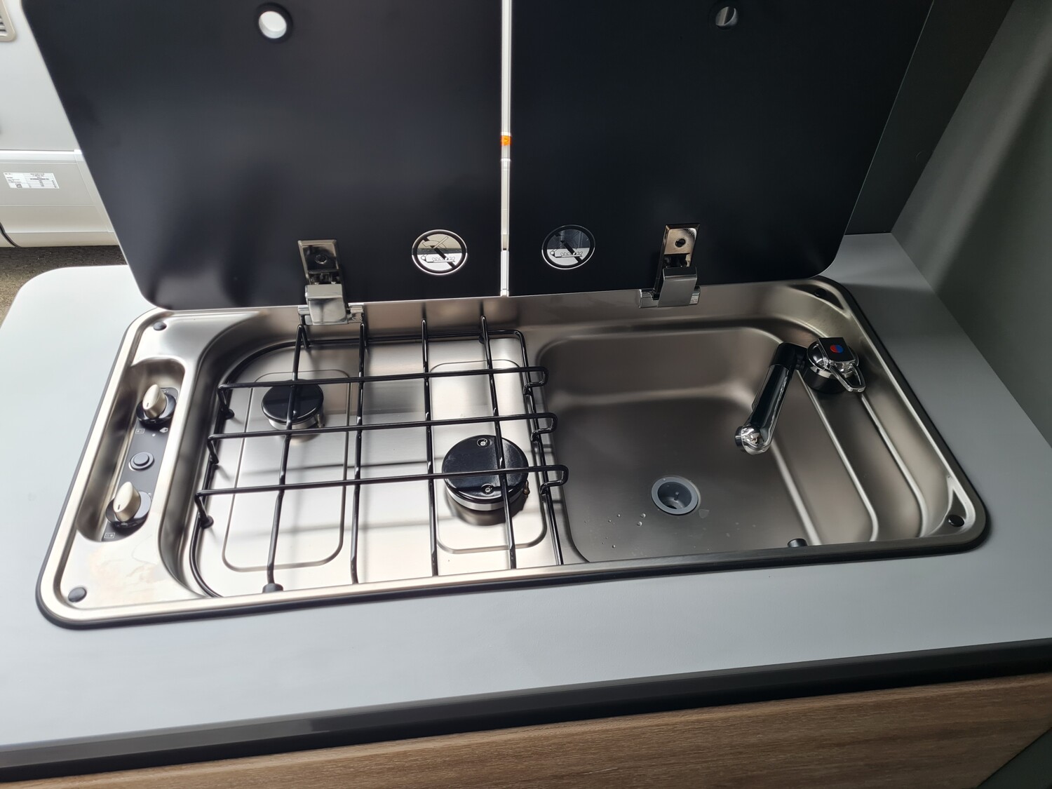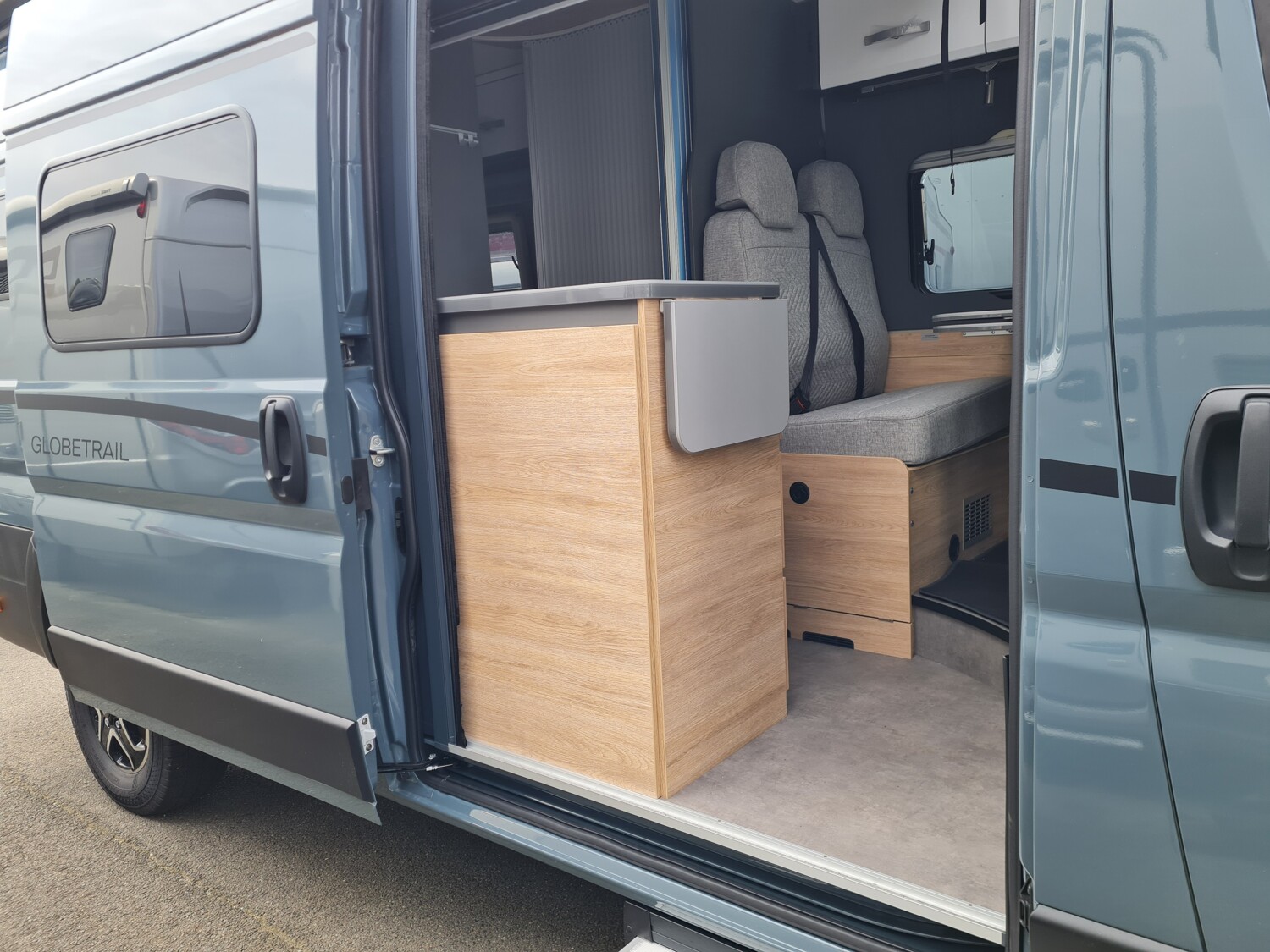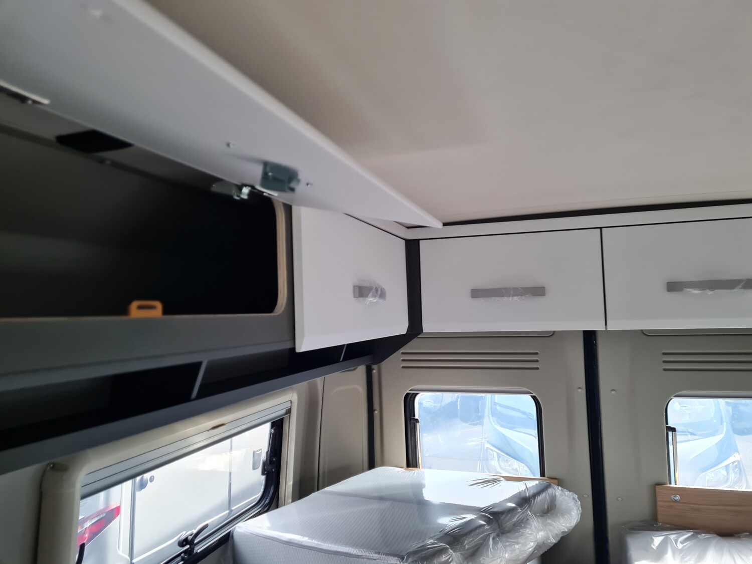 - Elektro Paket (Zusätzliche Doppel-USB-Steckdose im Bug links, 12-V-Steckdose im Heckbereich links unten, 230-V-Steckdose im Oberschrank Bug links (Sitzgruppe), Indirekte Beleuchtung, LED-Lichtröhre in der Küche, Vorbereitung Solarmodule)