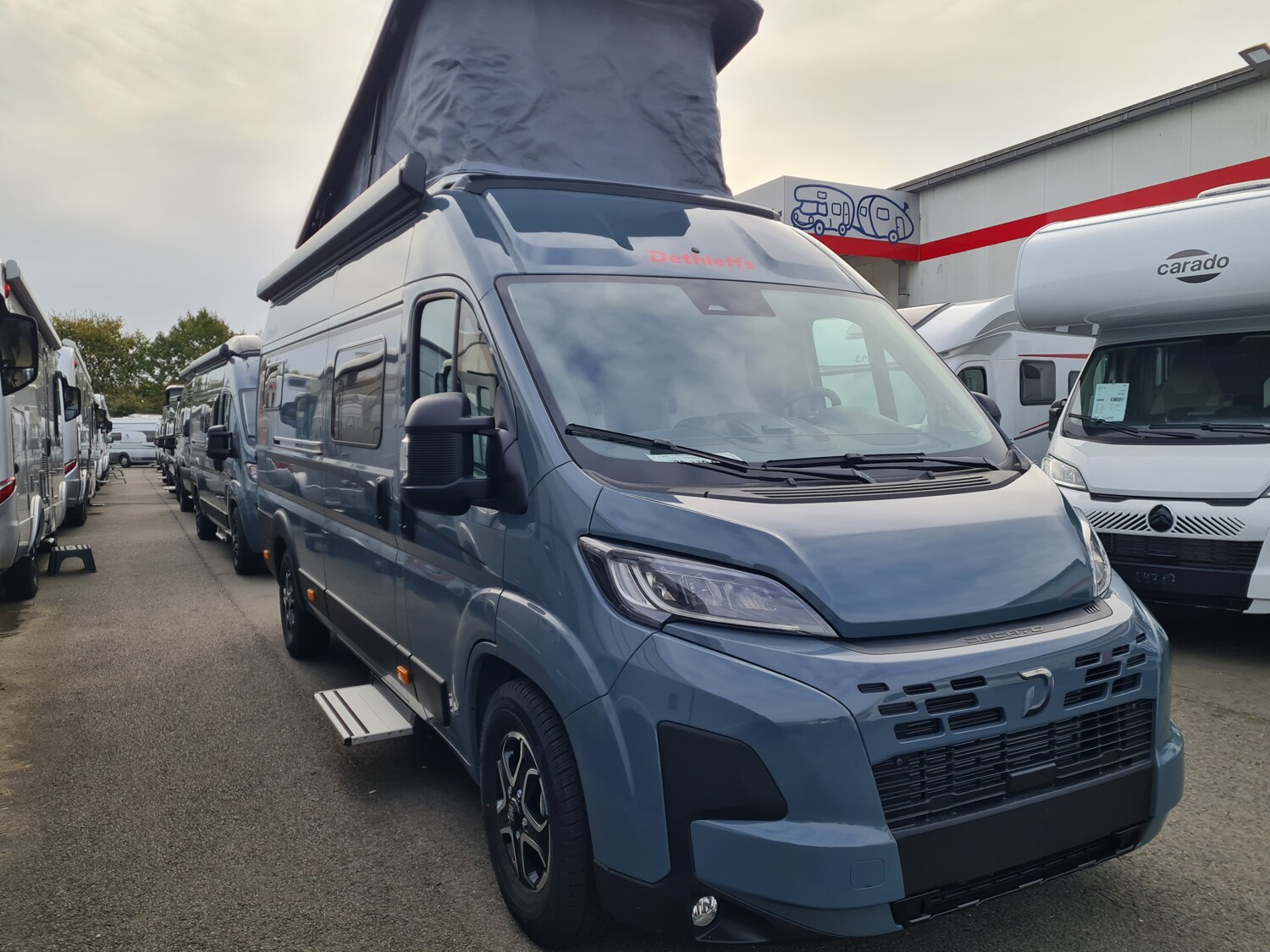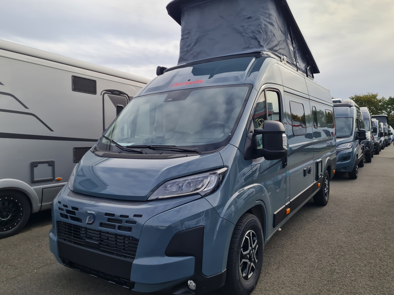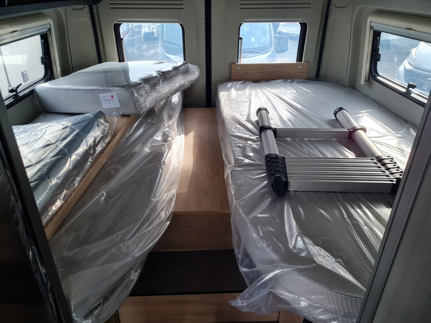 - Aufstelldach schwarz, vorne komplett zu öffnen inkl. elektrischem Schließassistenten, Fliegengitter, Schwanenhalsleuchte und USB-Steckdose, mit hochwertiger Matratze