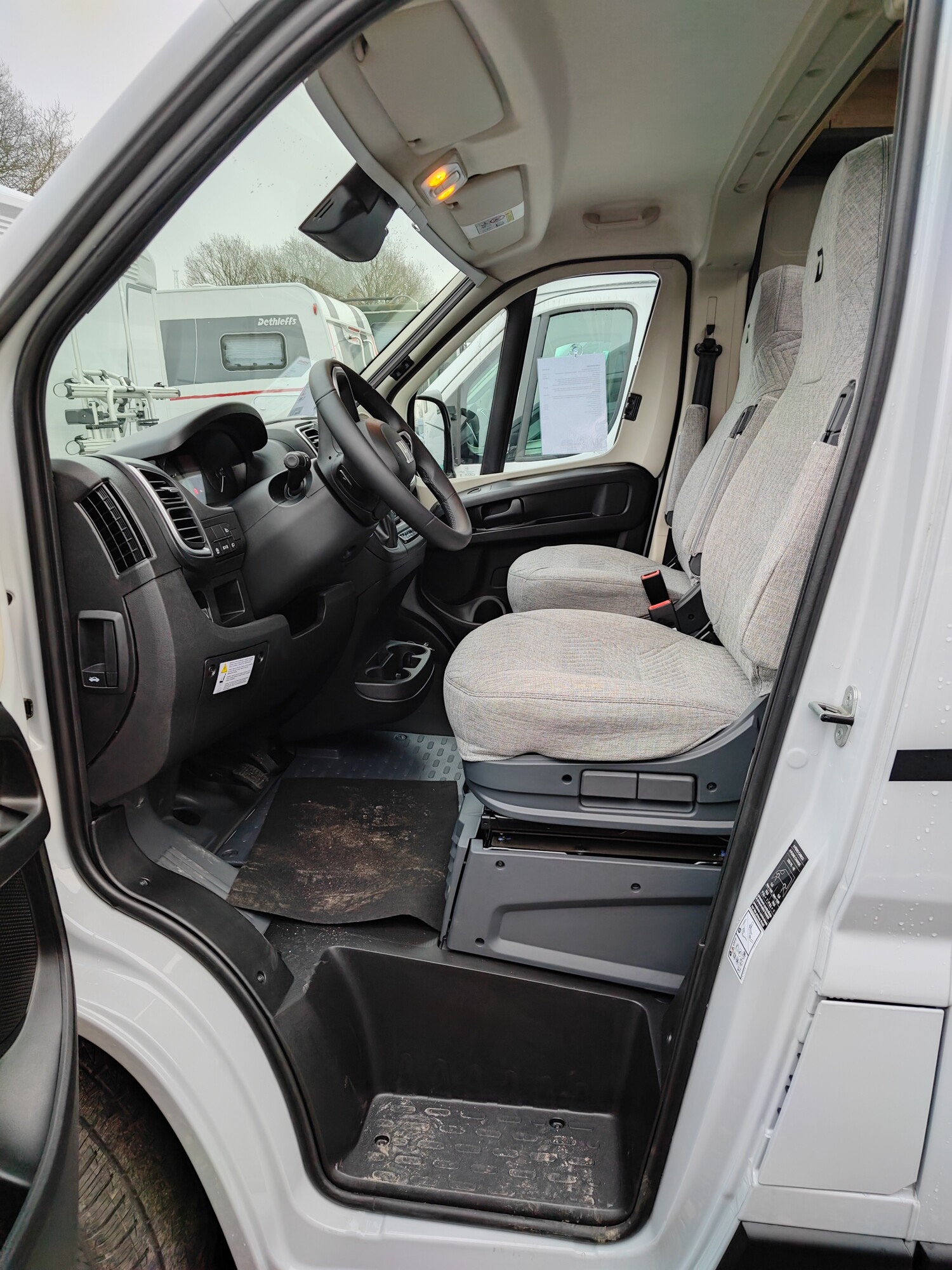 - Komfort Paket (600 DK / DS / DR) (Rahmenfenster, Fenster mit Fliegenschutz und Verdunklungsrollo im Heck links, Markise 3,75 m (600), Innovativer Auszug unter dem Heckbett, Teppich auf Podest (gekettelt, lose verlegt), Vorzeltleuchte, Drehplatte für Tischerweiterung)