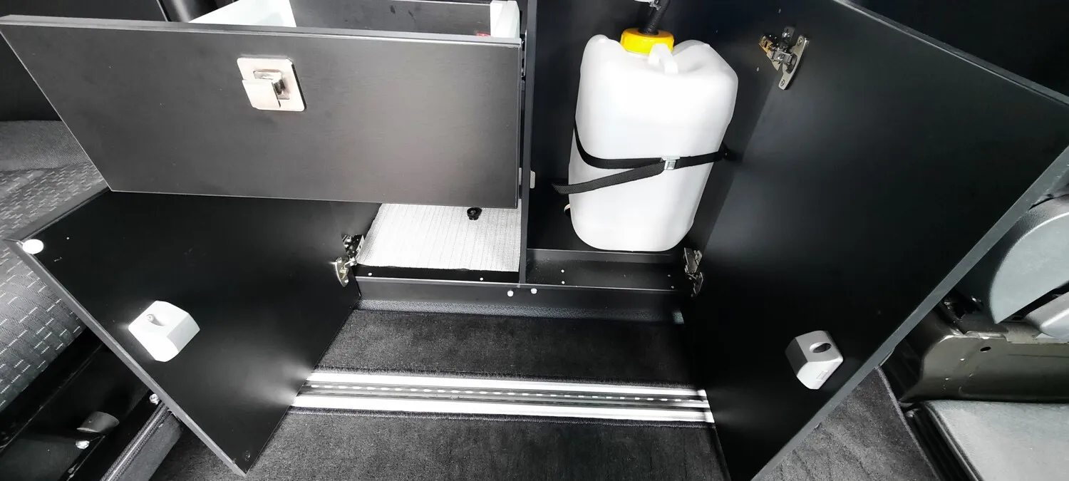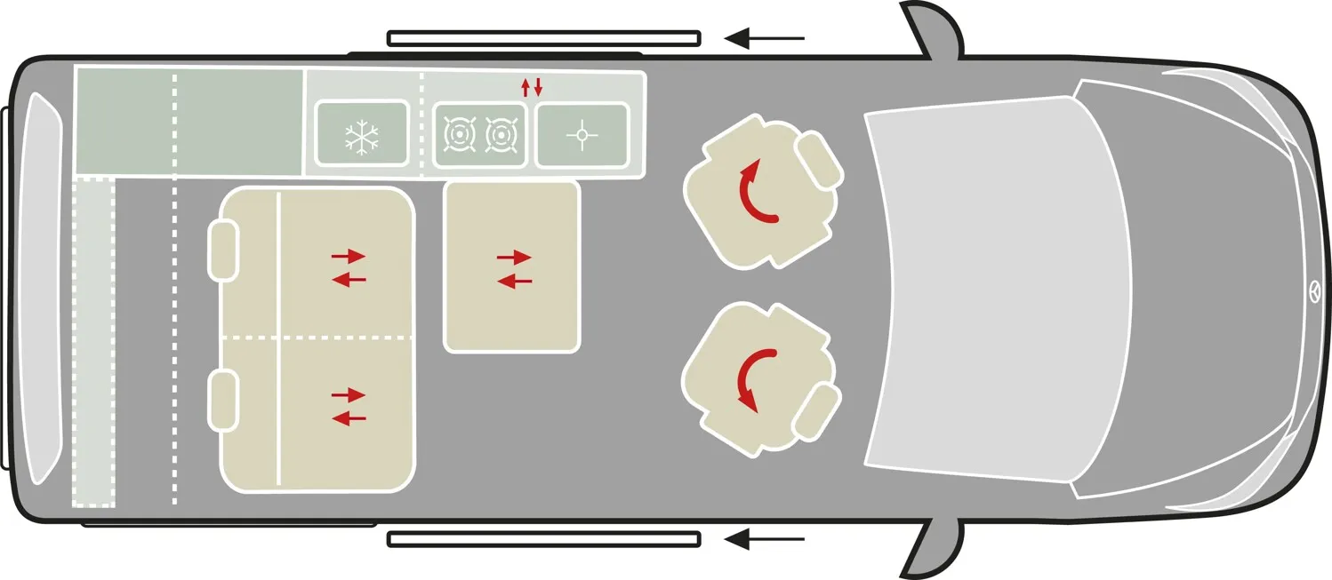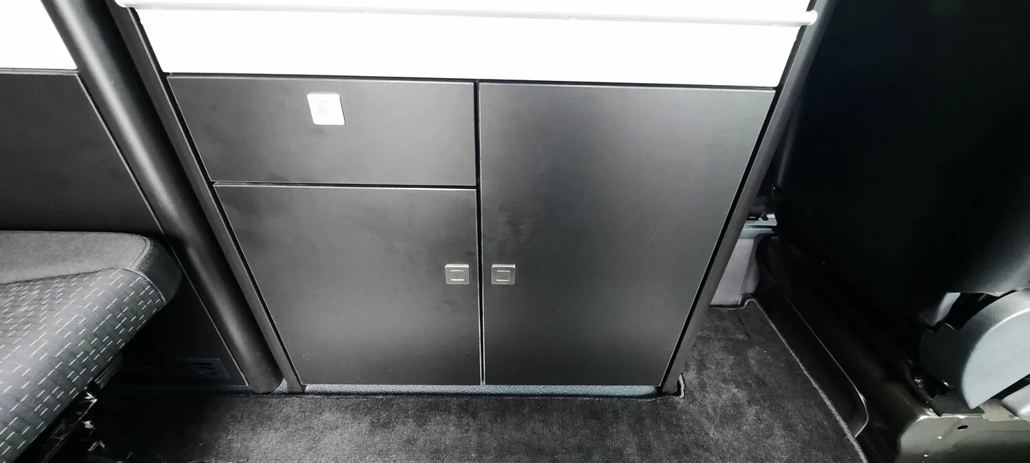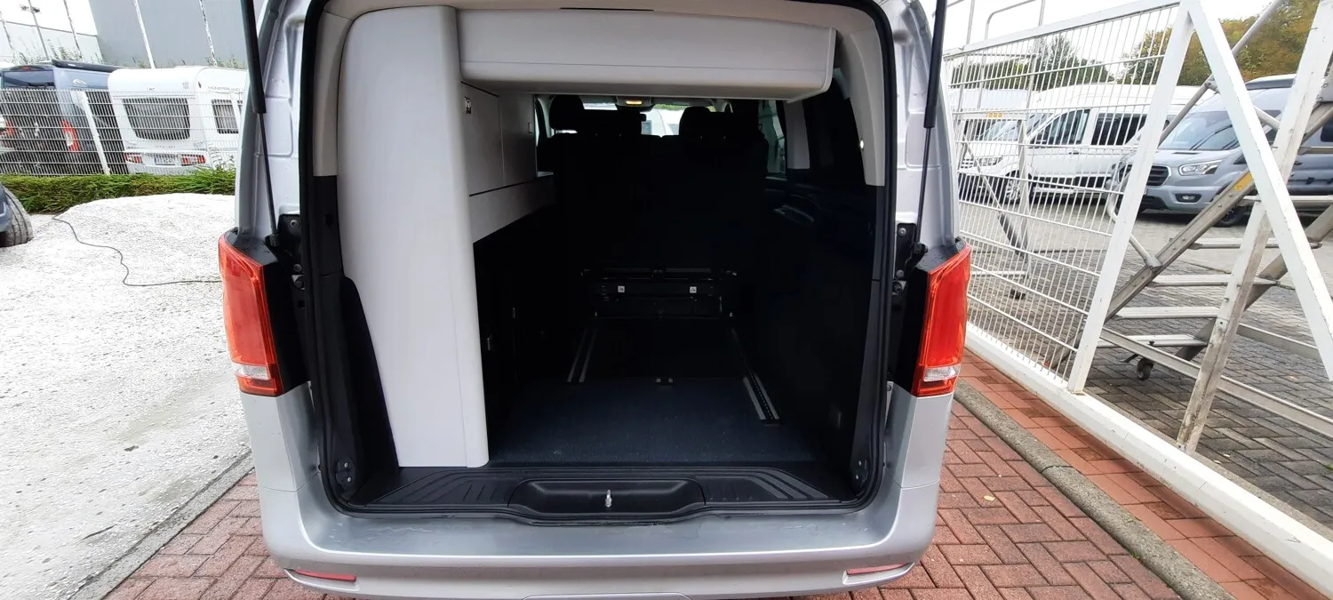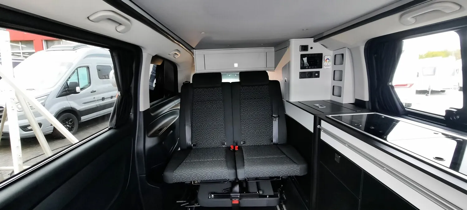 Audio-Navigationssystem Audio 40 (DAB+, Bluetooth, USB), Außenspiegel elektr. verstell-, heiz- und anklappbar, Batterie zusätzlich (verstärkt), Chrom-Paket, DAB-Tuner (Radioempfang digital), Einschaltautomatik für Fahrlicht, Fahrassistenz-Paket, Fenster im Lade-/FG-Raum: - schiebbar, vorn links, Generator 250 A, Getränkehalter vorn (doppelt), Intelligent Light System LED, Kraftstofftank: vergrößert, Kühlergrill verchromt, LM-Felgen 8x19 (10-Speichen, schwarz, glanzgedreht), Metallic-Lackierung, Rückfahrkamera, Scheibenwischer mit Regensensor, Schiebetür Lade-/Fahrgastraum links, Sitzausstattung Schnellverriegelung für Sitzschienen-System, Sitzheizung vorn, Komfortsitze vorn drehbar mit Armlehen, Tempomat mit Abstandsregelung / Distronic Plus, Trennrelais bei Batterie zusätzlich, Verglasung hinten abgedunkelt / Schwarzglas, Wärmeschutzverglasung, Zweiwege Lautsprecher vorn