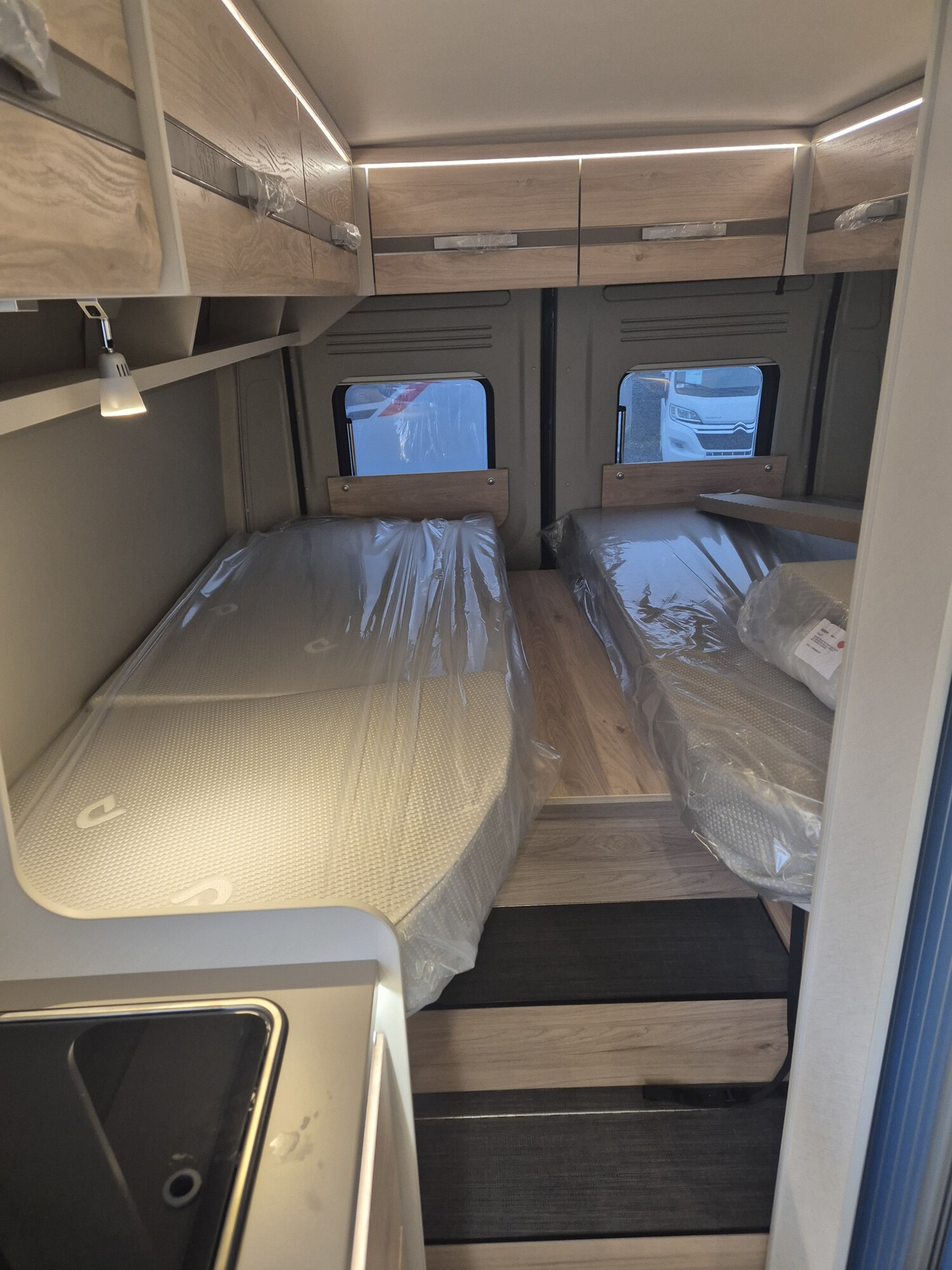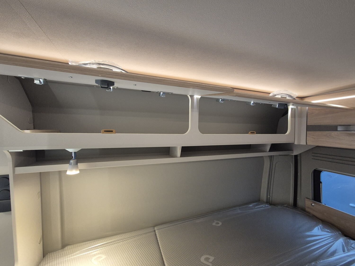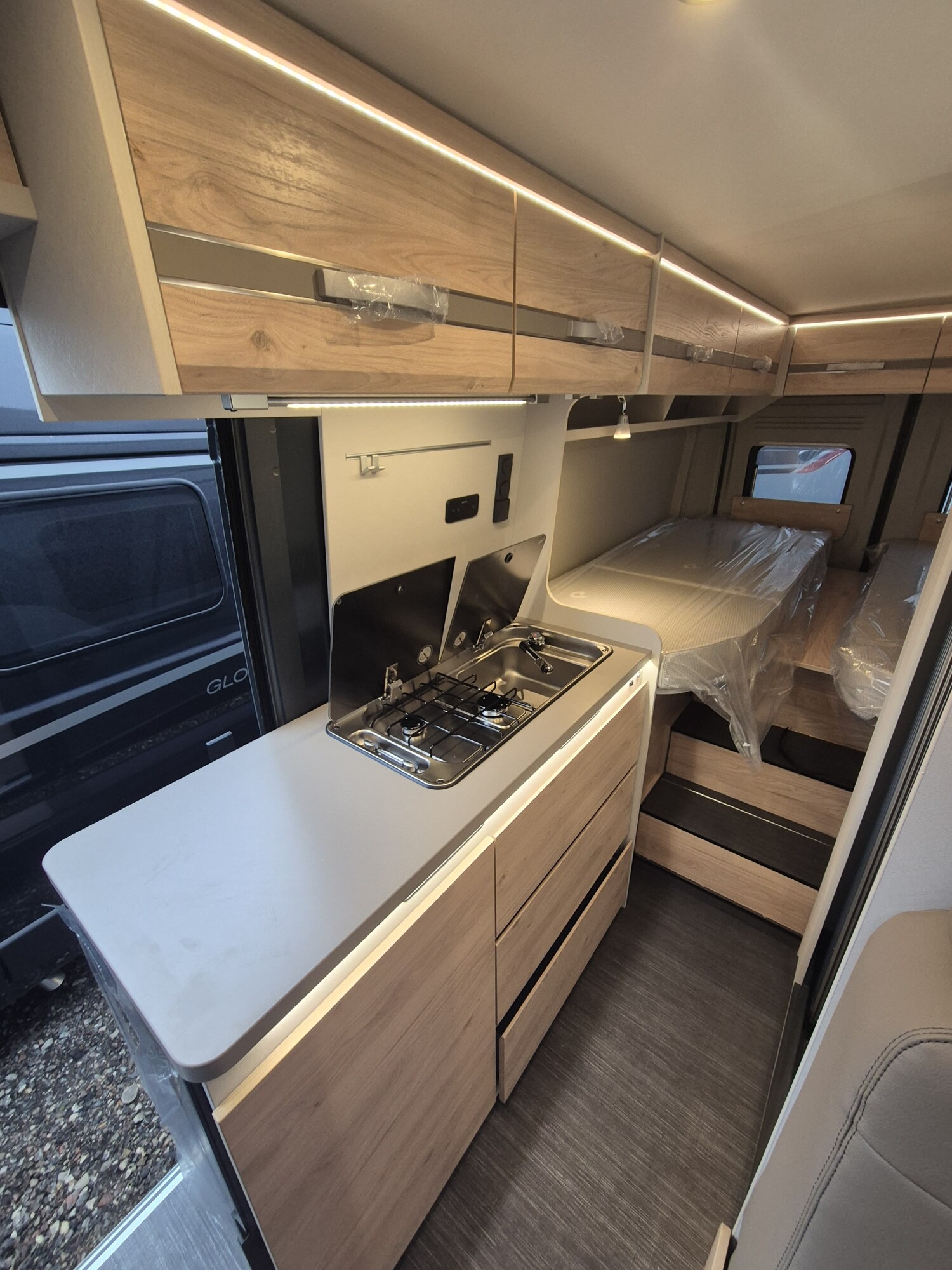 - Elektro Paket (Zusätzliche Doppel-USB-Steckdose im Bug links, 12-V-Steckdose im Heckbereich links unten, 230-V-Steckdose im Oberschrank Bug links (Sitzgruppe), Indirekte Beleuchtung, LED-Lichtröhre in der Küche, Vorbereitung Solarmodule)