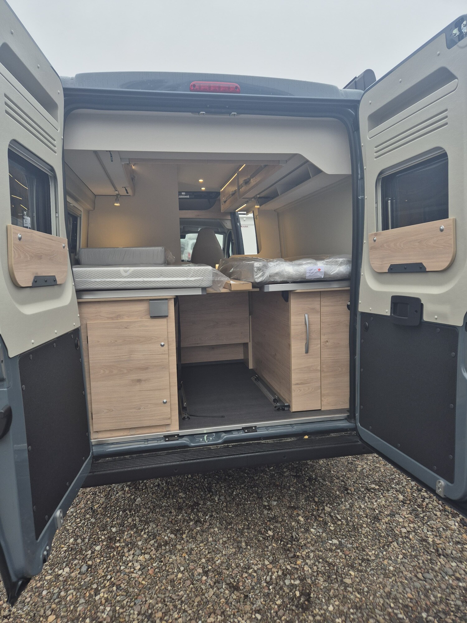 - Aufstelldach schwarz, vorne komplett zu öffnen inkl. elektrischem Schließassistenten, Fliegengitter, Schwanenhalsleuchte und USB-Steckdose, mit hochwertiger Matratze