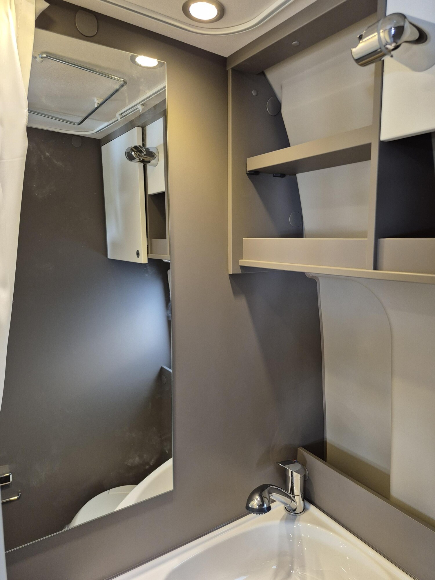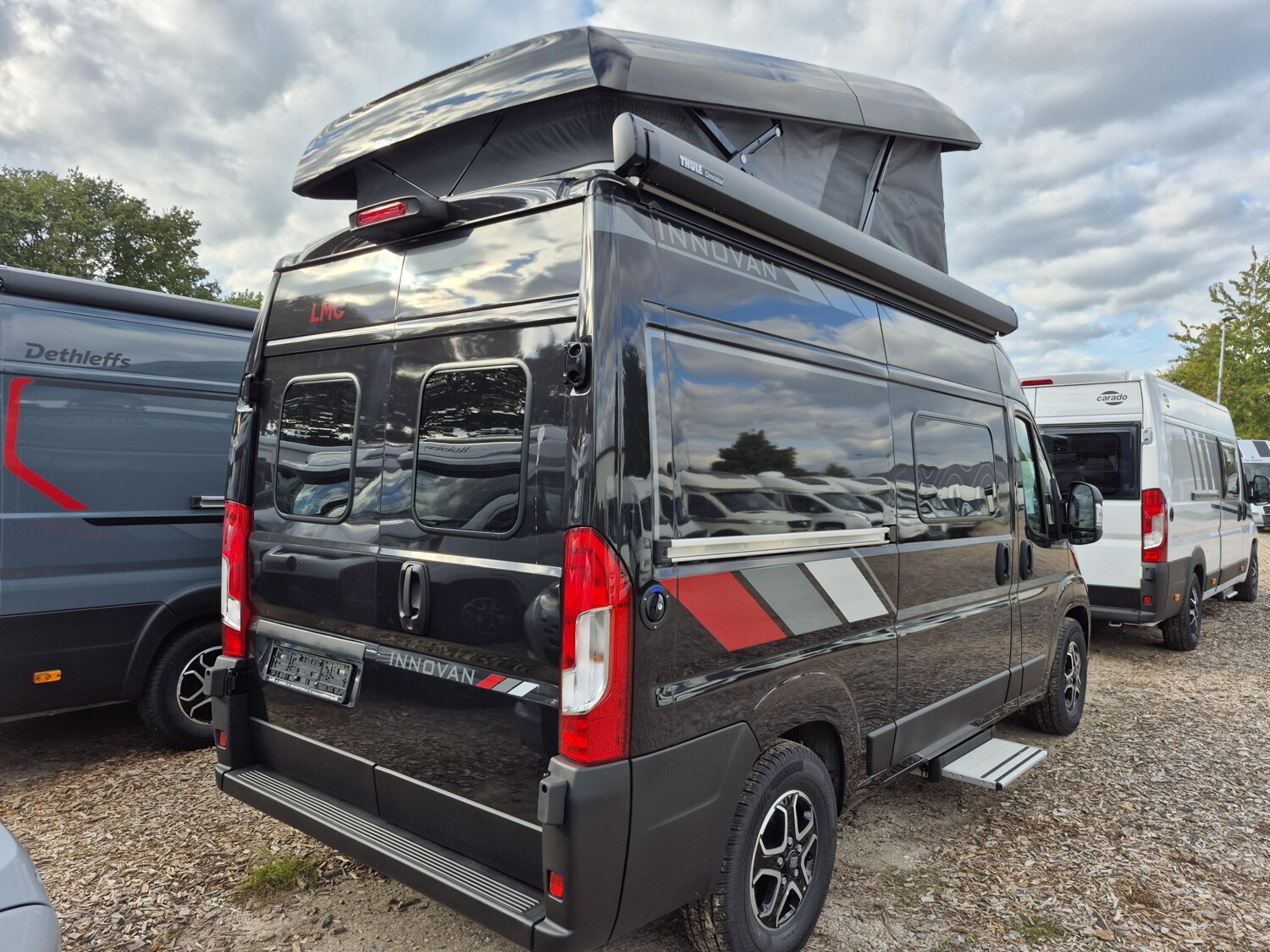 - Innovan Fiat Paket (Breite Einstiegsstufe (Elektrisch), Markise Anthrazit, Rückfahrkamera in 3ter Bremsleuchte, Duschwanneneinlage aus Holz, Dachhaube Klarglas 700x500mm inkl. Verdunklungsrollo und Insektenschutz über der Sitzgruppe, Duschausstattung (Brausekopf ausziehbar, Duschvorhang, Führungsschiene, Brausehalter, Duschwanne), Fahrerhausverdunklung (Plissees), Insektenschutztür, Drehplatte für Tischerweiterung, TV-Vorbereitung, Mittelsitzgruppe umbaubar zum Bett mit Zusatzpolster, Klappbare Wäschestange im Toilettenraum/Dusche, Abwassertank isoliert und manuell elektrisch beheizt, Ausstellfenster Bad (Milchglas) inkl. Verdunklungsrollo und Insektenschutz)