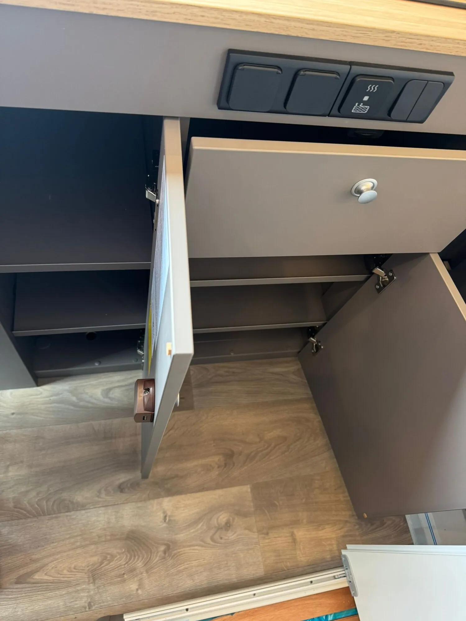 - Innovan Fiat Paket (Breite Einstiegsstufe (Elektrisch), Markise Anthrazit, Rückfahrkamera in 3ter Bremsleuchte, Duschwanneneinlage aus Holz, Dachhaube Klarglas 700x500mm inkl. Verdunklungsrollo und Insektenschutz über der Sitzgruppe, Duschausstattung (Brausekopf ausziehbar, Duschvorhang, Führungsschiene, Brausehalter, Duschwanne), Fahrerhausverdunklung (Plissees), Insektenschutztür, Drehplatte für Tischerweiterung, TV-Vorbereitung, Mittelsitzgruppe umbaubar zum Bett mit Zusatzpolster, Klappbare Wäschestange im Toilettenraum/Dusche, Abwassertank isoliert und manuell elektrisch beheizt, Ausstellfenster Bad (Milchglas) inkl. Verdunklungsrollo und Insektenschutz)