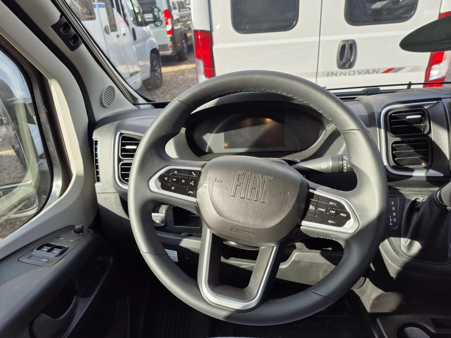 - Innovan Fiat Paket (Breite Einstiegsstufe (Elektrisch), Markise Anthrazit, Rückfahrkamera in 3ter Bremsleuchte, Duschwanneneinlage aus Holz, Dachhaube Klarglas 700x500mm inkl. Verdunklungsrollo und Insektenschutz über der Sitzgruppe, Duschausstattung (Brausekopf ausziehbar, Duschvorhang, Führungsschiene, Brausehalter, Duschwanne), Fahrerhausverdunklung (Plissees), Insektenschutztür, Drehplatte für Tischerweiterung, TV-Vorbereitung, Mittelsitzgruppe umbaubar zum Bett mit Zusatzpolster, Klappbare Wäschestange im Toilettenraum/Dusche, Abwassertank isoliert und manuell elektrisch beheizt, Ausstellfenster Bad (Milchglas) inkl. Verdunklungsrollo und Insektenschutz)