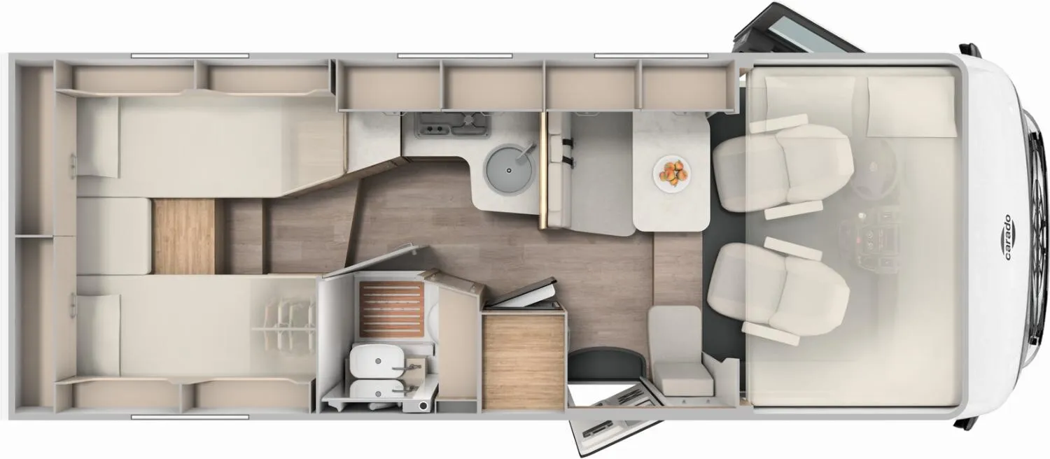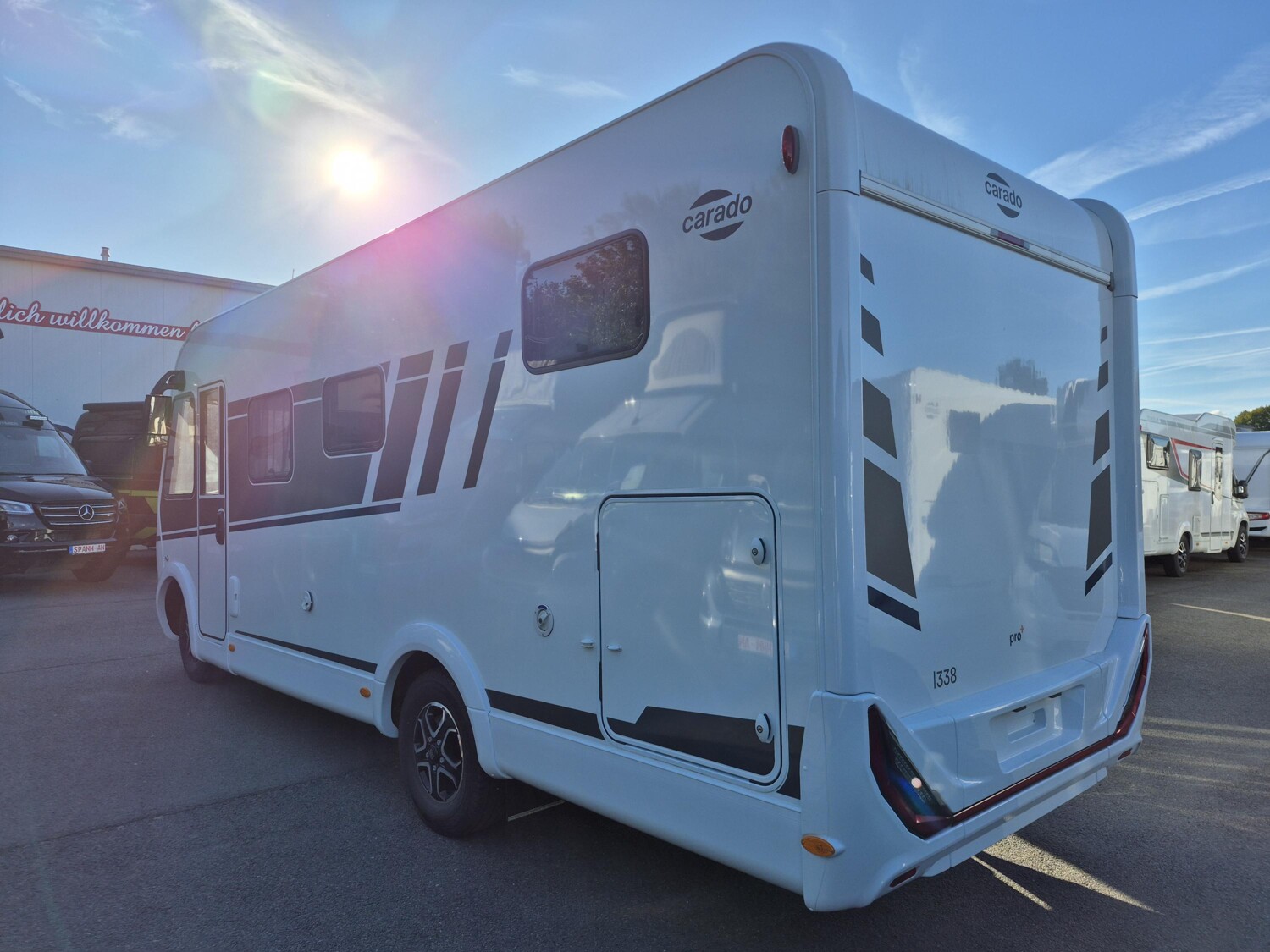 - Carado 2025 Ausstattungshighlights des pro+ Paket I338 (Fiat Ducato 3.500 kg - 2.2 Multijet - 103 kW / 140 PS Euro 6 - 6-Gang-Schaltgetriebe // Optik Paket 2: Lenkrad & Schaltknauf in Lederausführung, Armaturentafel mit Applikationen (Techno-Trim), 16" Alufelgen Bi-Color // Basic Paket: Panoramadachhaube 70 x 50 cm, Klarglasdachhaube 40 x 40 cm, Fliegengittertür (einteilig), Komfort-Eingangstür mit Fenster und Verdunkelung, Bridge Light // Großer Kühlschrank 156 l mit separatem Frosterfach 29 l // Abwassertank isoliert // Rahmenfenster // Markise 4,5 m // TV Paket (22" Smart-TV & Halter, Satantenne Flatsat Classic 65) // Design Applikation Heck // Zweite Außenstauraumklappe (Größe modellabhängig) // Beklebung pro+)