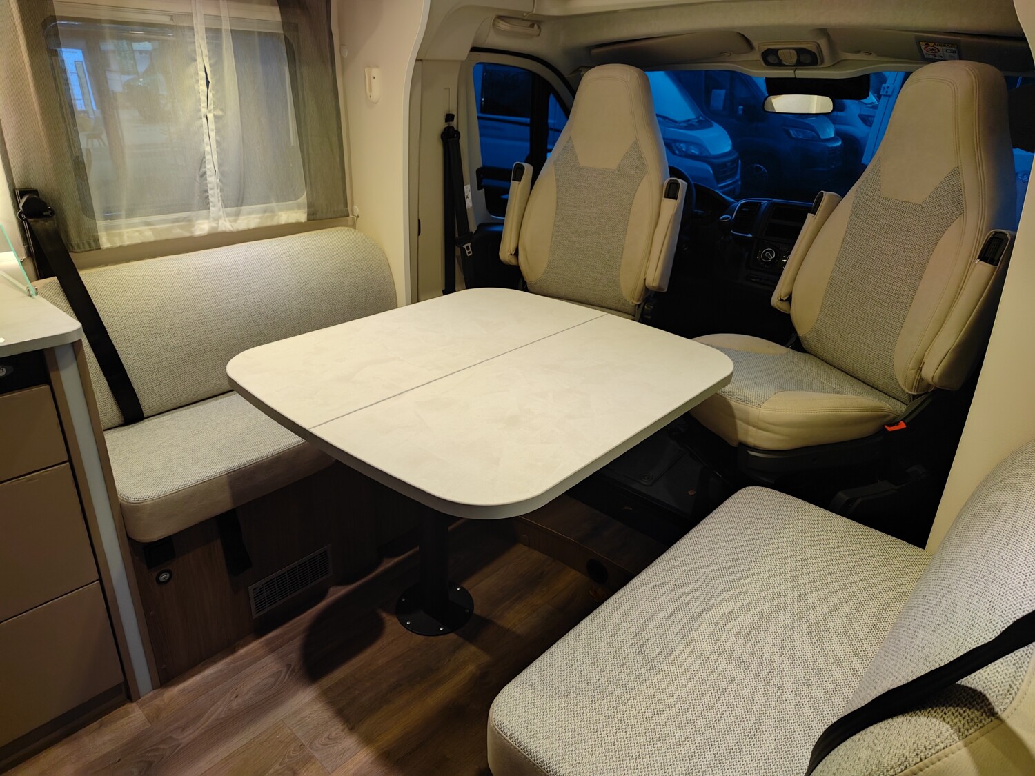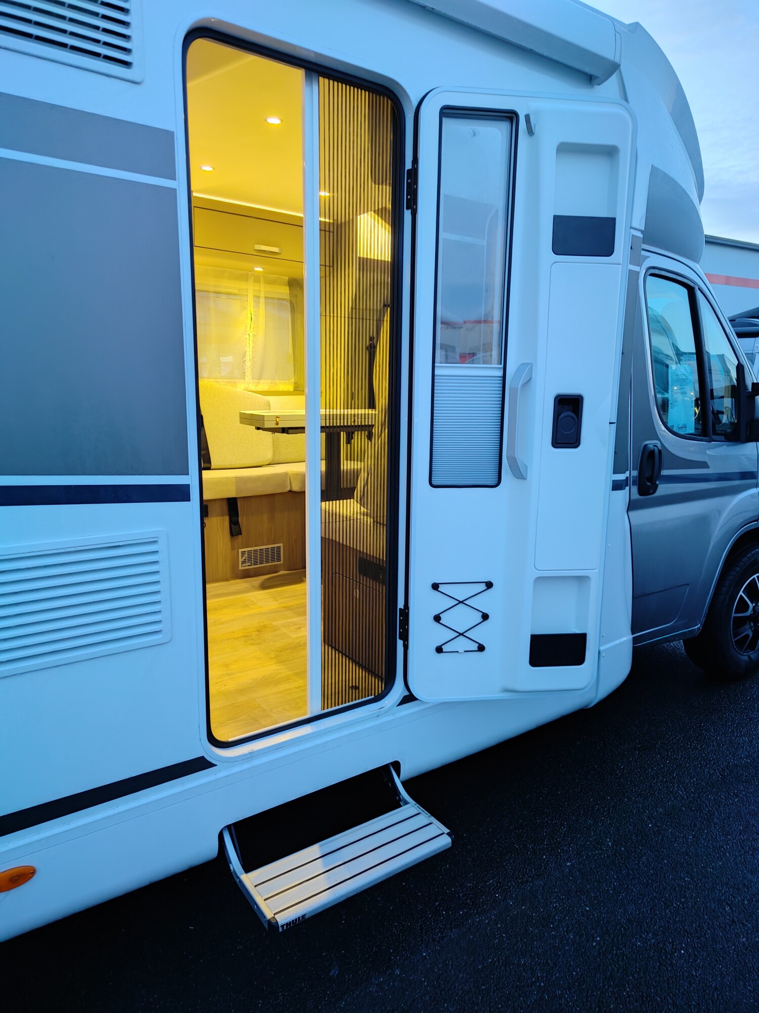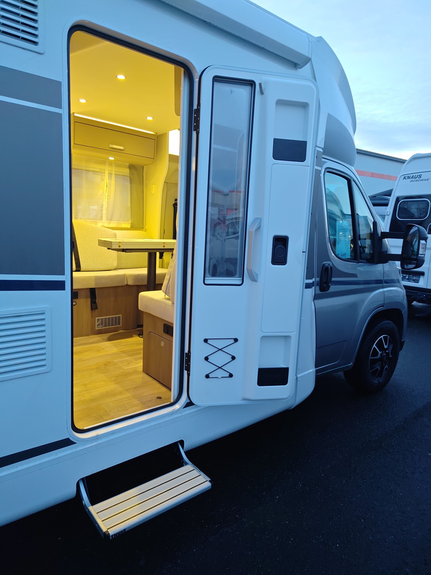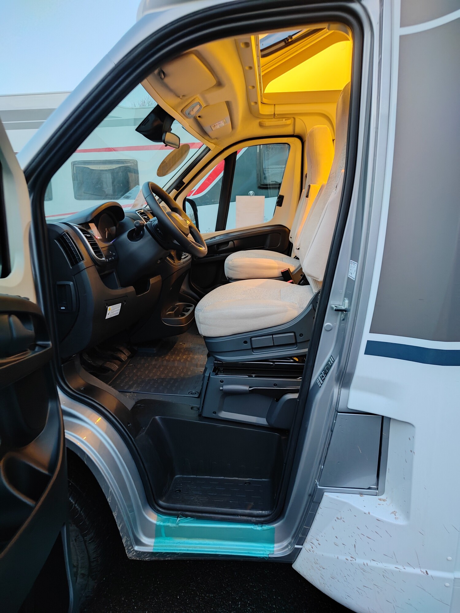 - Carado 2025 Ausstattungshighlights des pro+ Paket T447 & T448 & T457 (Fiat Ducato 3.500 kg - 2.2 Multijet - 103 kW / 140 PS Euro 6 - 6-Gang-Schaltgetriebe // Optik Paket 1: Stoßfänger lackiert, Skid-plate glänzend Schwarz, Nebelscheinwerfer // Optik Paket 2: Lenkrad & Schaltknauf in Lederausführung, Armaturentafel mit Applikationen (Techno-Trim), 16" Alufelgen Bi-Color // Chassisfarbe Artense Grau Metallic // Basic Paket: Panoramadachhaube 70 x 50 cm, Klarglasdachhaube 40 x 40 cm, Fliegengittertür (einteilig), Komfort-Eingangstür mit Fenster und Verdunkelung, Bridge Light // Faltverdunkelung Fahrerhaus // Fenster in Fronthaube // Großer Kühlschrank 156 l mit separatem Frosterfach 29 l // Abwassertank isoliert // Markise 4,5 m // TV Paket (22" Smart-TV & Halter, Satantenne Flatsat Classic 65) // Rahmenfenster // Design Applikation Heck // Zweite Außenstauraumklappe (Größe modellabhängig) // Beklebung pro+)