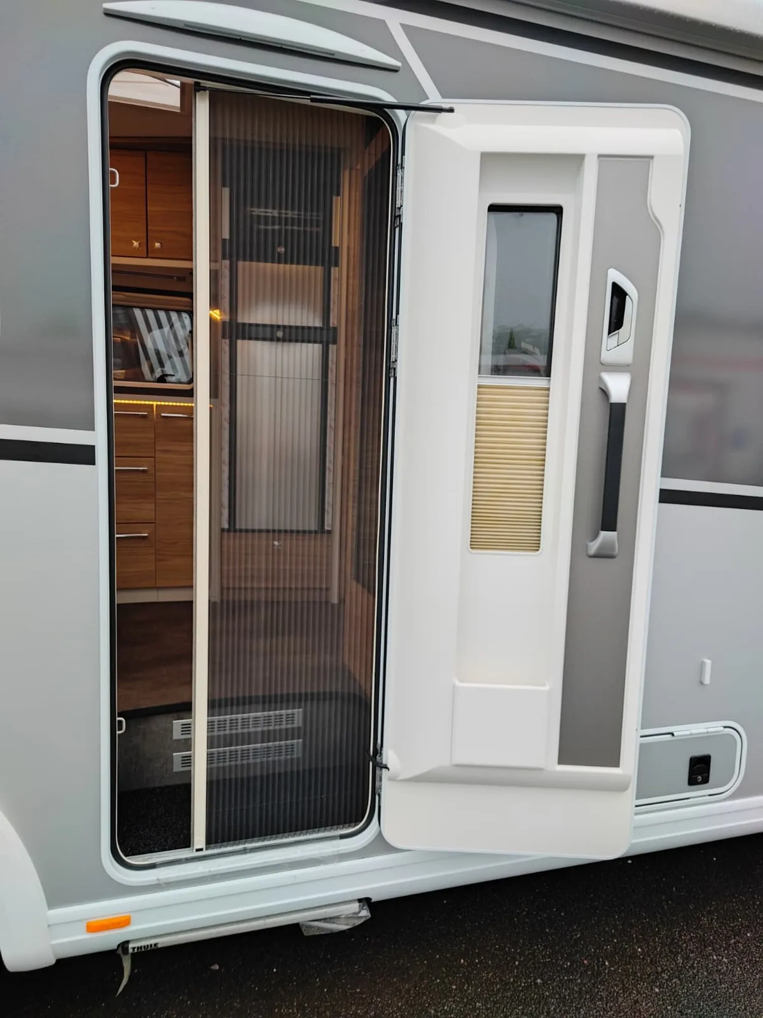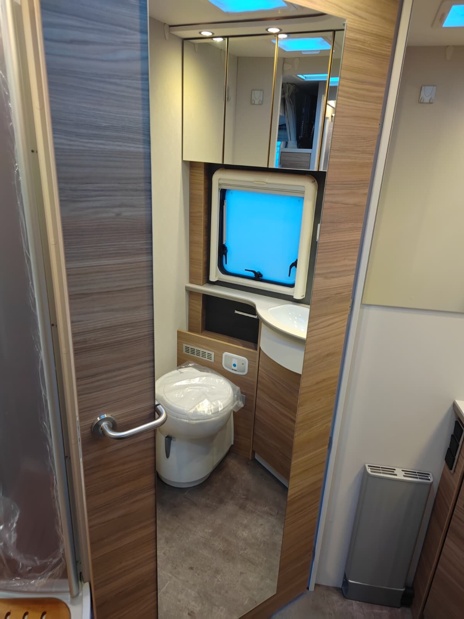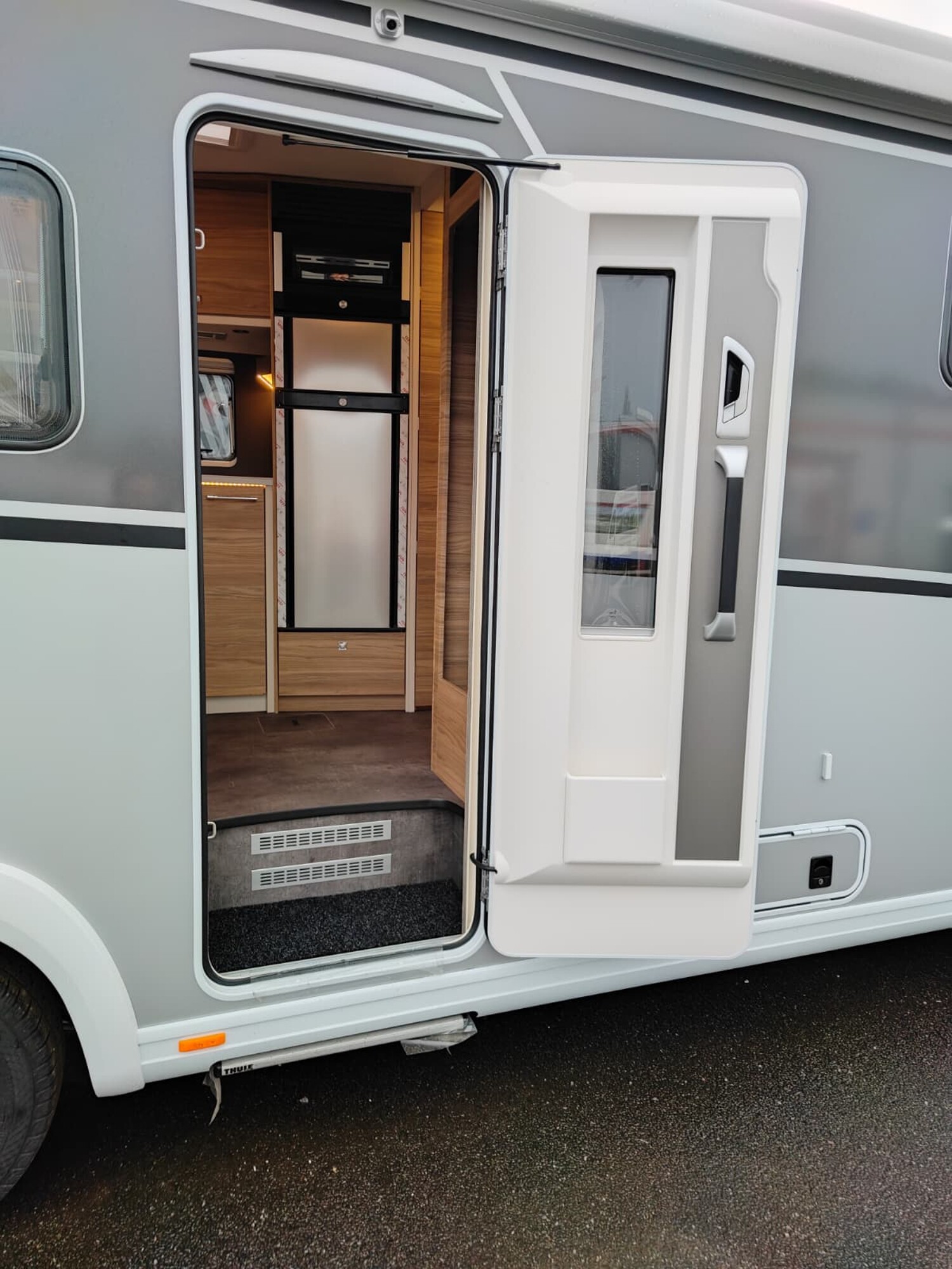 - Travel-Paket I 7820-2 (Vorbereitung für Radiosystem inkl. Soundpaket im Fahrerhaus, Light Moments: Indirekte Ambientebeleuchtung über den Dachstauschränken, Dunstabzugshaube (Abluft) mit Zugluft-Stopper, Stützen (2 Stk.) für Anbau hinten, Radioantenne DAB+ auf dem Dach montiert, Automatische Gasflaschenumschaltung inkl. Crash Sensor, EisEx und Gasfilter, Rückfahrkamera (Einfachkamera), Panoramafenster (zweite Panoramadachhaube 75x105 cm längs über Sitzgruppe Heck) inkl. Baldachin und Raumleuchte, Zentralverriegelung für Fahrerhaus-, Wohnraumtüre und Garagentüren)