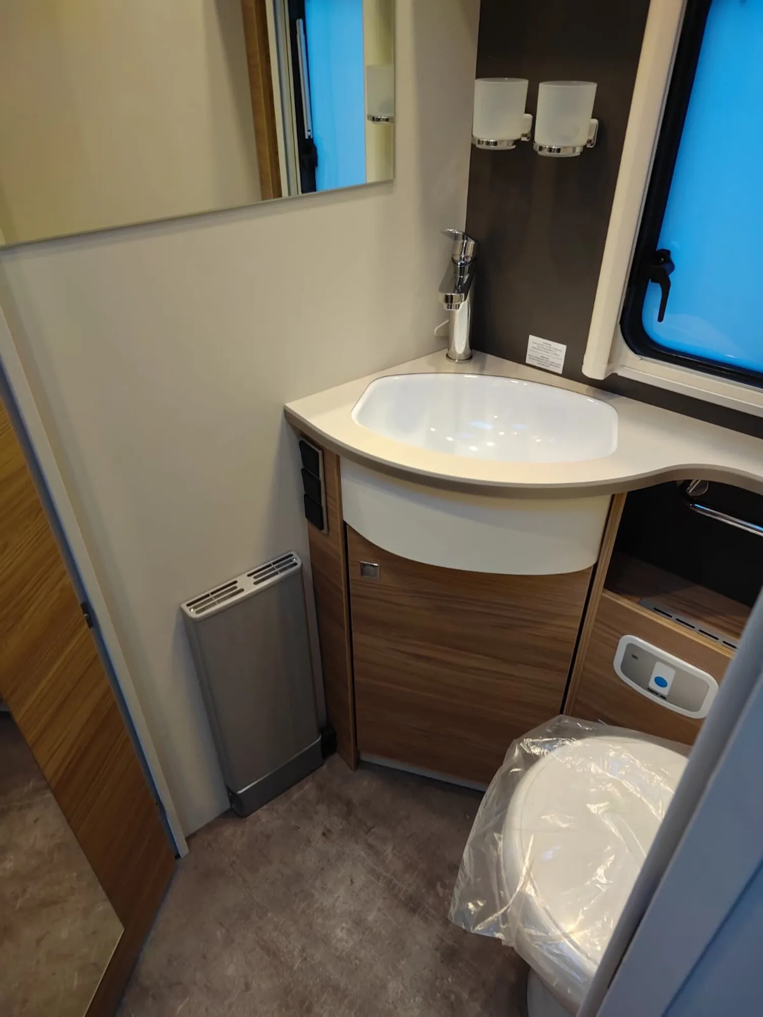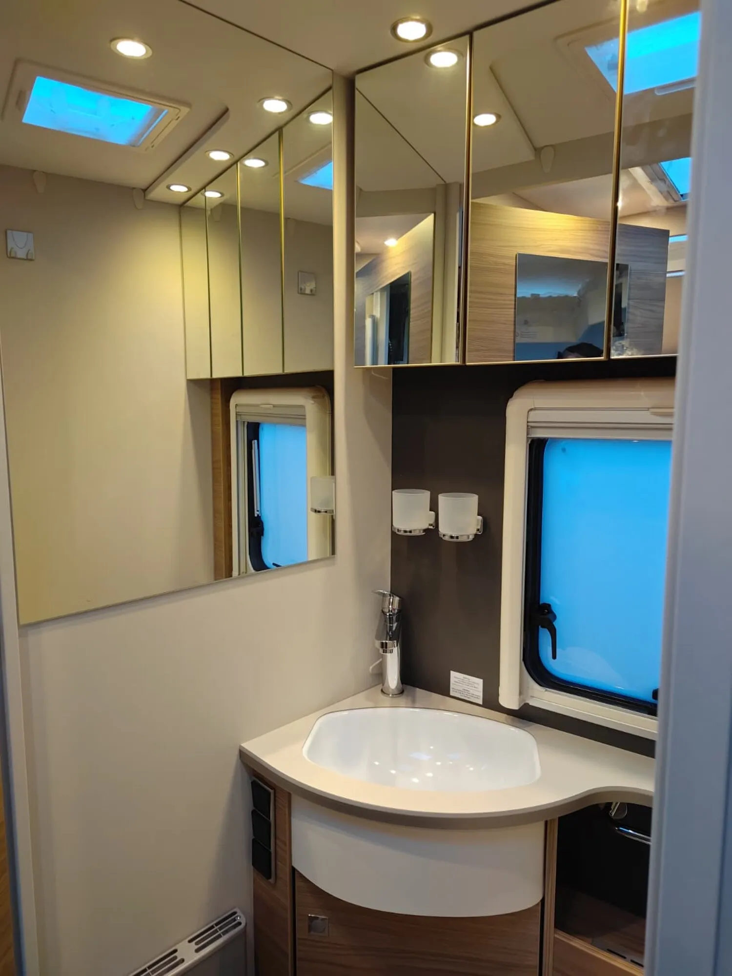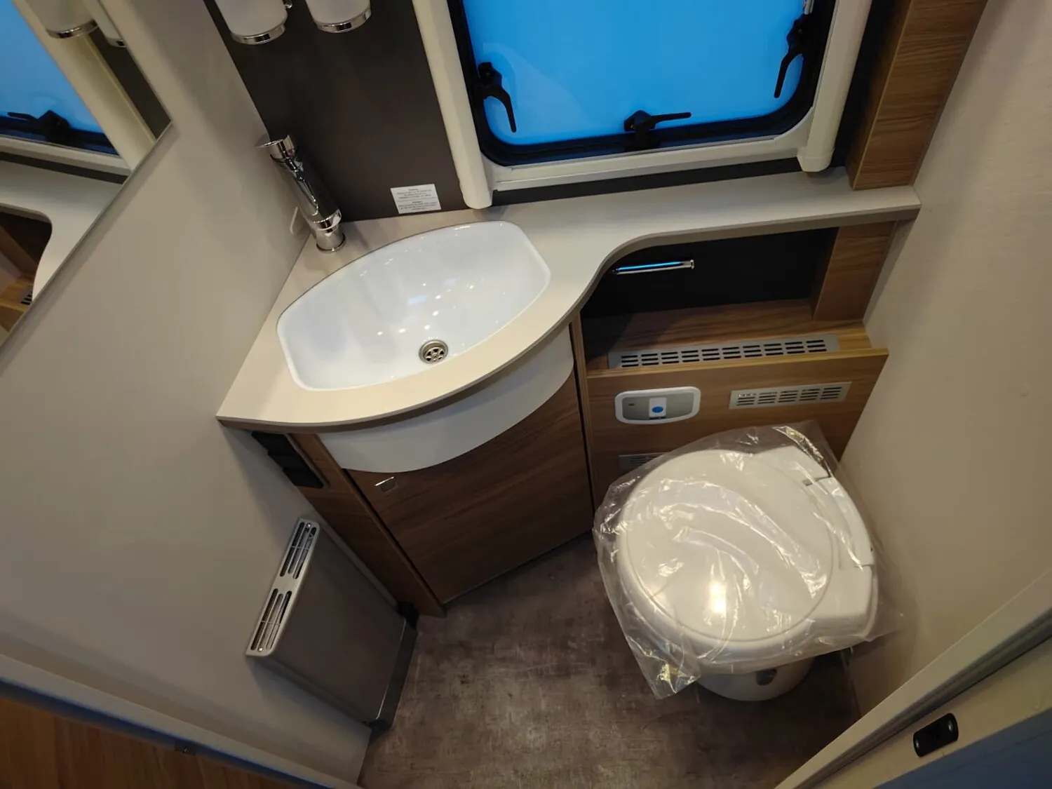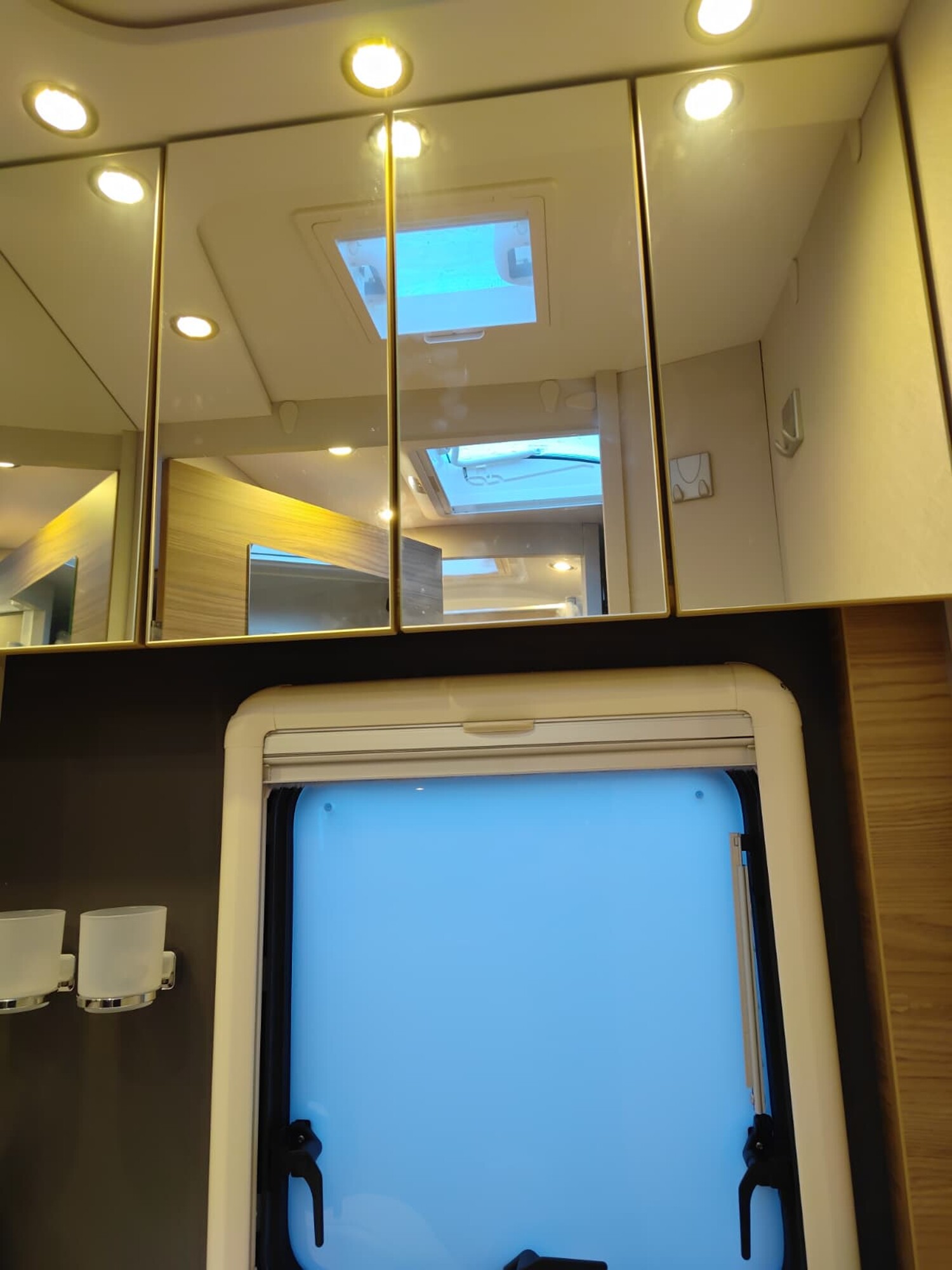 - Travel-Paket I 7820-2 (Vorbereitung für Radiosystem inkl. Soundpaket im Fahrerhaus, Light Moments: Indirekte Ambientebeleuchtung über den Dachstauschränken, Dunstabzugshaube (Abluft) mit Zugluft-Stopper, Stützen (2 Stk.) für Anbau hinten, Radioantenne DAB+ auf dem Dach montiert, Automatische Gasflaschenumschaltung inkl. Crash Sensor, EisEx und Gasfilter, Rückfahrkamera (Einfachkamera), Panoramafenster (zweite Panoramadachhaube 75x105 cm längs über Sitzgruppe Heck) inkl. Baldachin und Raumleuchte, Zentralverriegelung für Fahrerhaus-, Wohnraumtüre und Garagentüren)