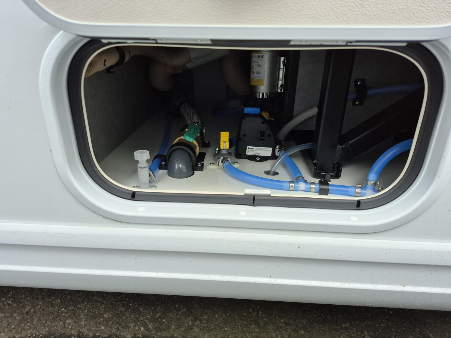 - Außendusche in Heckgarage installiert (Warm-/ Kaltwasser)