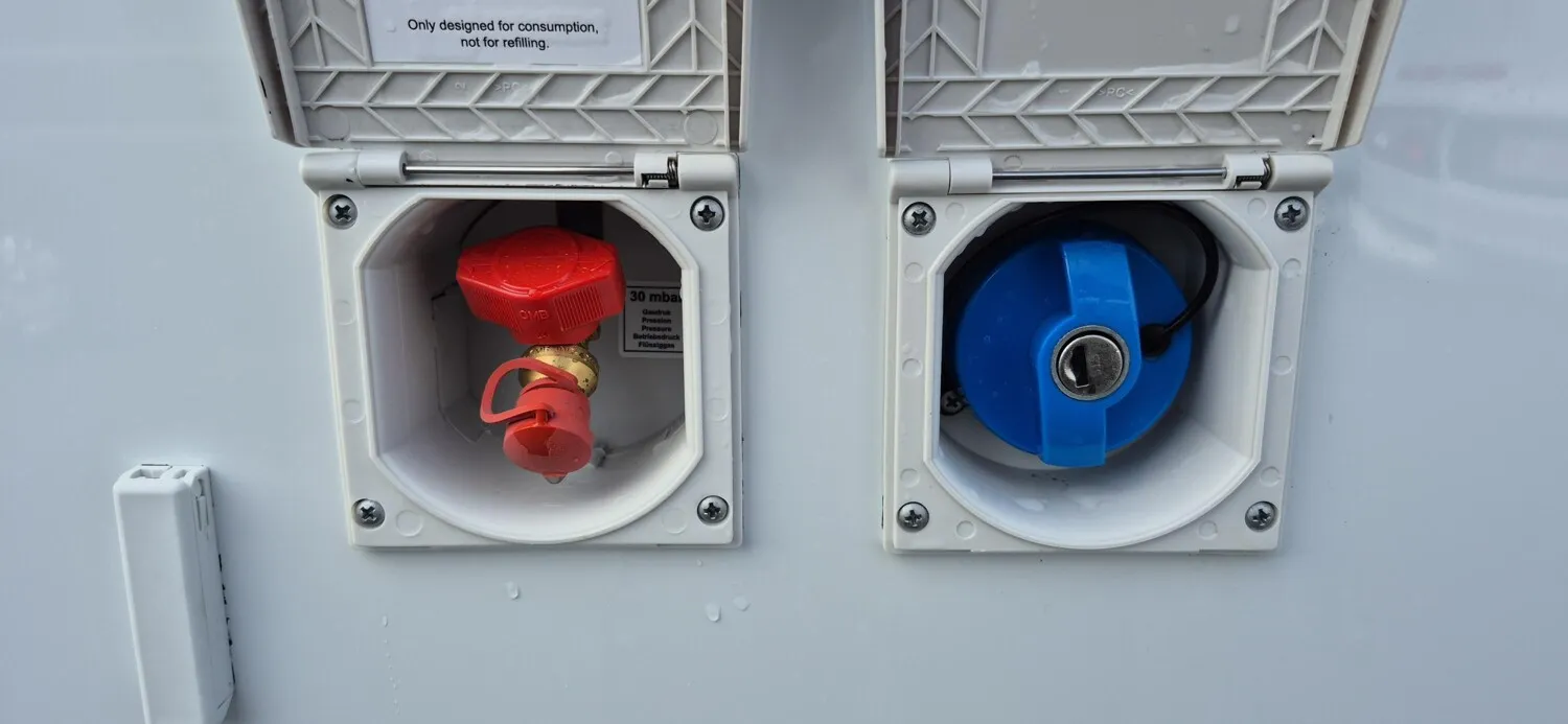 - Warmwasserheizung mit Warmwasserboiler, automatischem Ablassventil, Absperrventil für den Schlafraum und digitalem Bedienelement