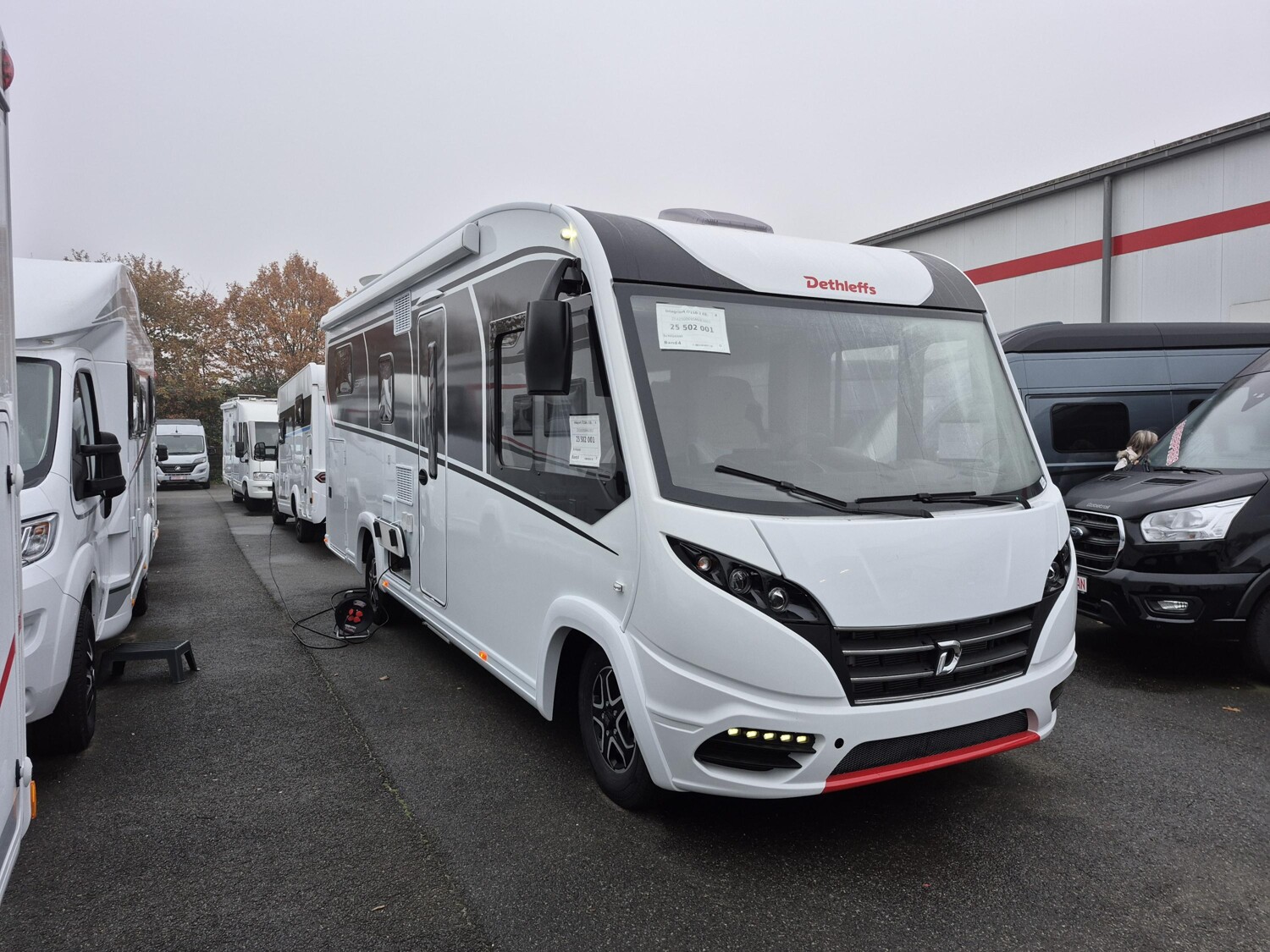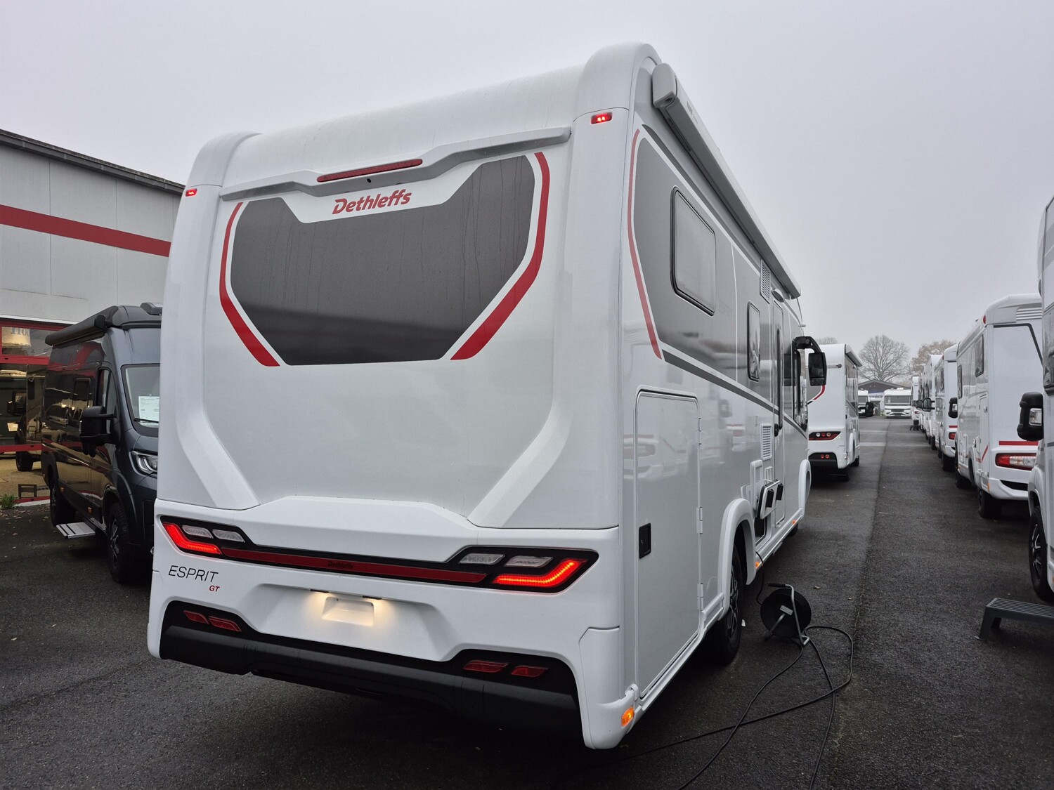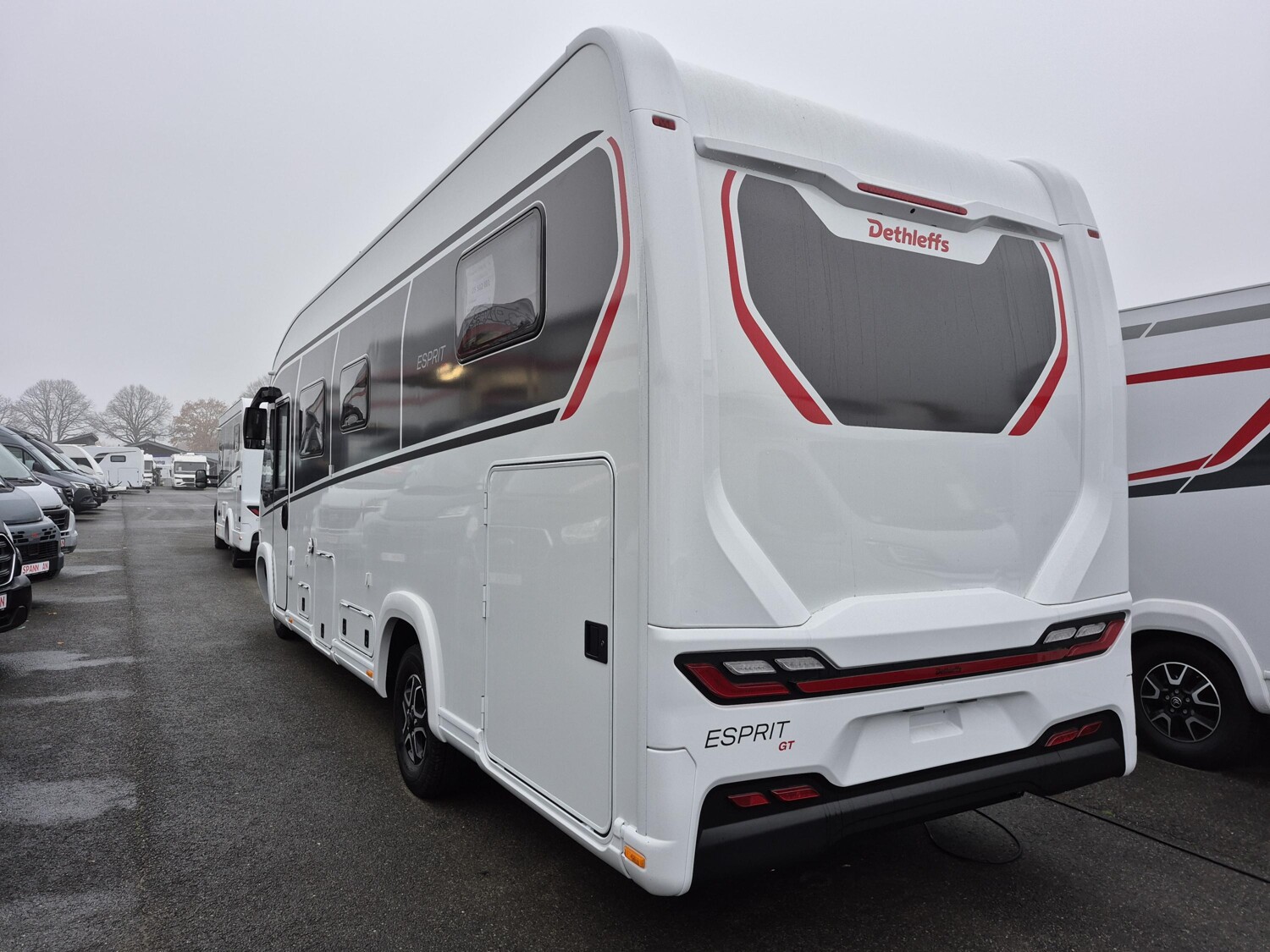 - Esprit GT Paket (LED-Abblendlicht, Sonnenblenden seitlich, als Rollo für Fahrer und Beifahrer, Panorama-Dachhaube 70 x 50 cm im Schlafraum, Innendesign GT inkl. erweiterter Küchenrückwand, Außendesign GT Advance (Heckleuchtenträger mit schwarzem Diffusor, lackierung I-Front teilweise schwarz, Kühlergrill mit Chromkeder, Skidplate "rot"), Hoher charakteristischer Dethleffs Exklusiv Heckleuchtenträger mit ShapeLine LED Rückleuchten, in Heckspoiler integrierter 3. Bremsleuchte und eingezogener Heckwand)