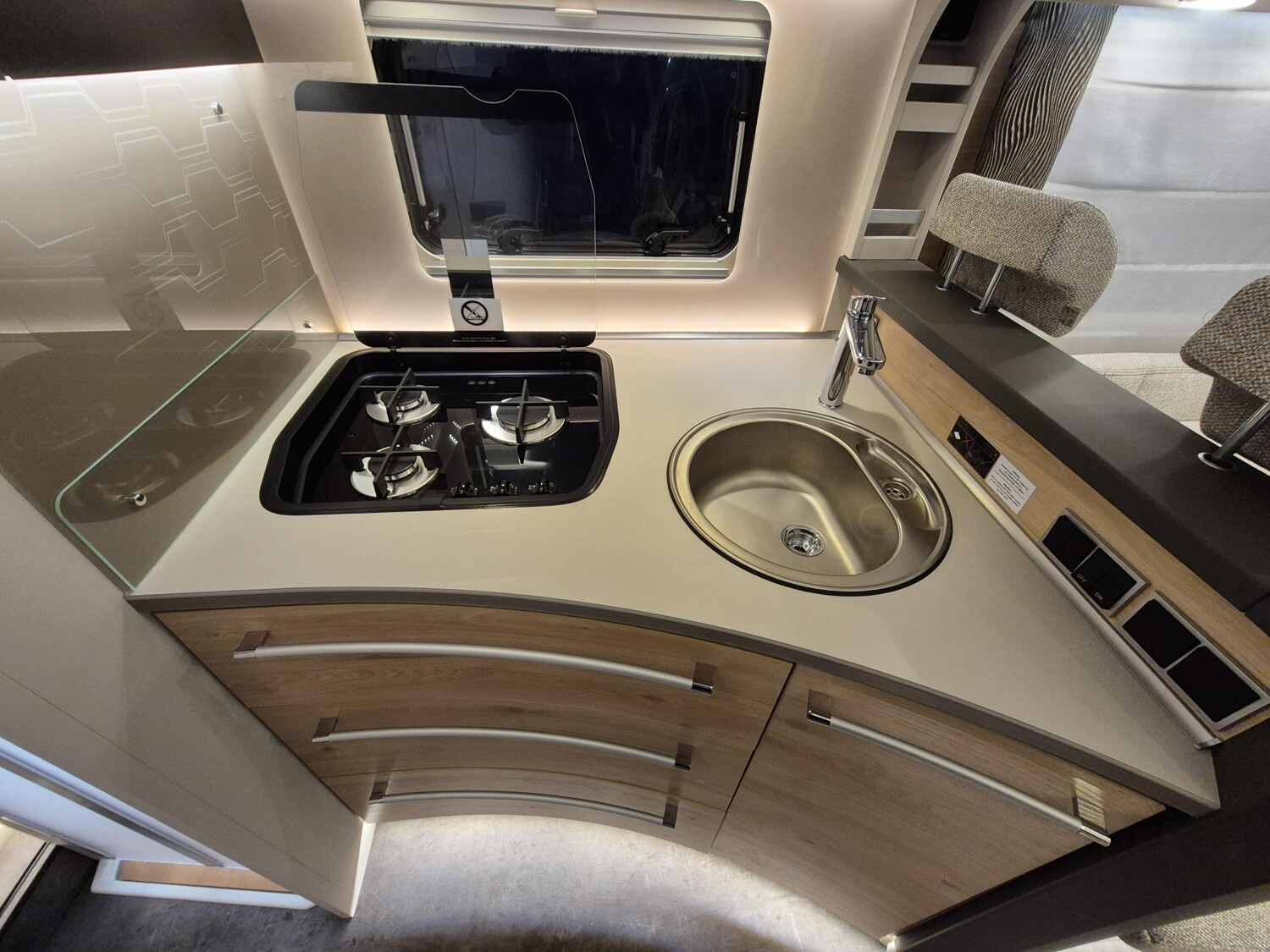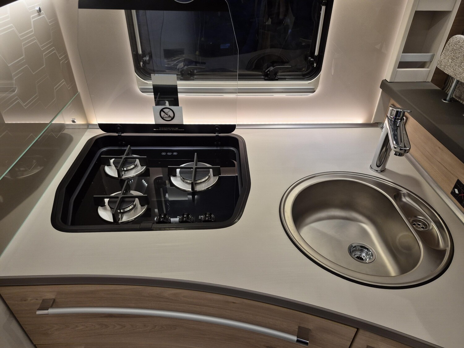 - Light Moments (Light Moments: Beleuchteter Einstiegsgriff, Light Moments: Indirekte Beleuchtung im Badezimmer mit beleuchteter Duschkonsole, Light Moments: Sockelbeleuchtung im gesamten Fahrzeug, Light Moments: Durchgehender Baldachin mit indirekter Beleuchtung, Light Moments: Küchenrückwand beleuchtet, Light Moments: Indirekte dimmbare Wandflächen-Ambientebeleuchtung)